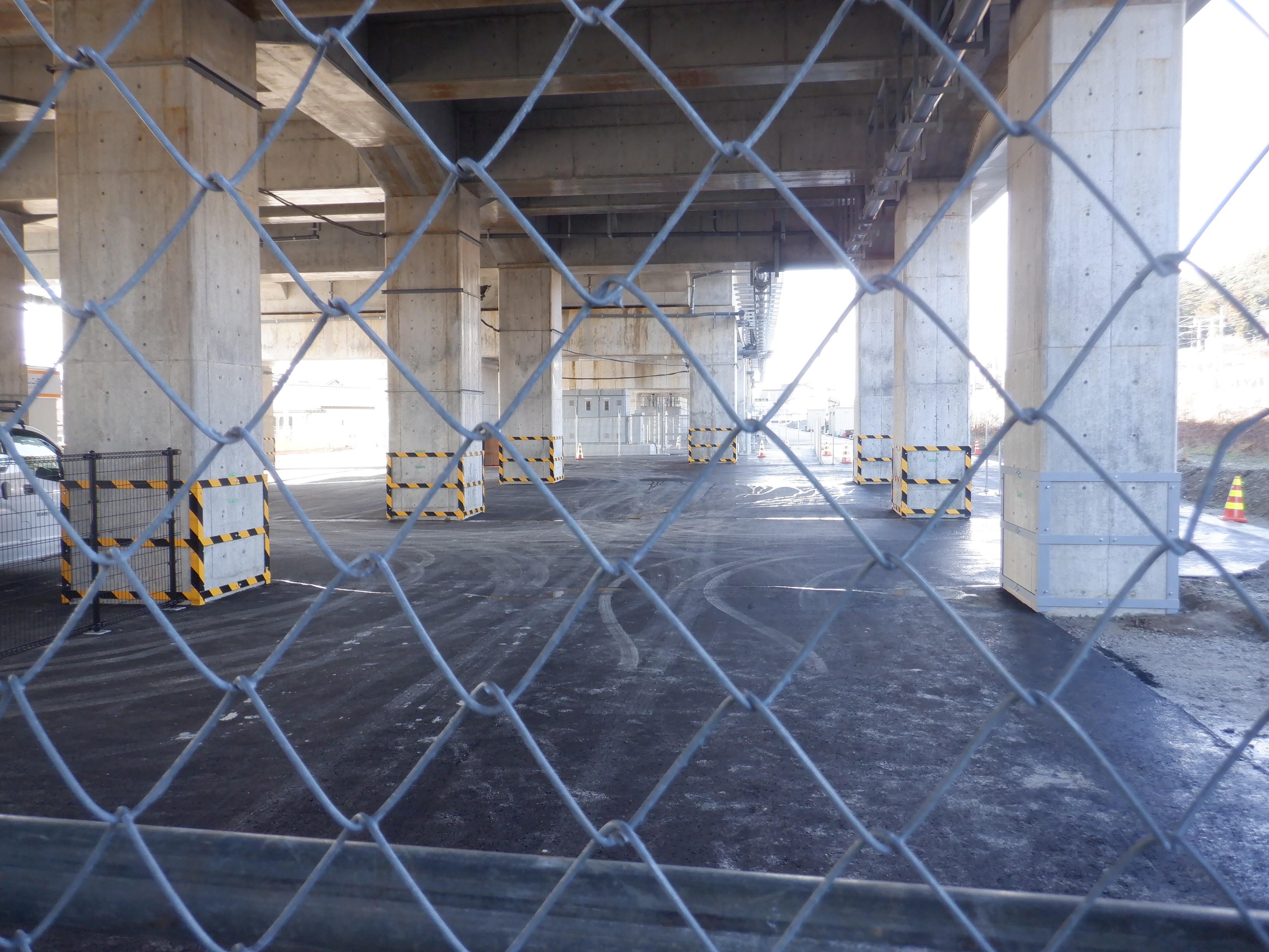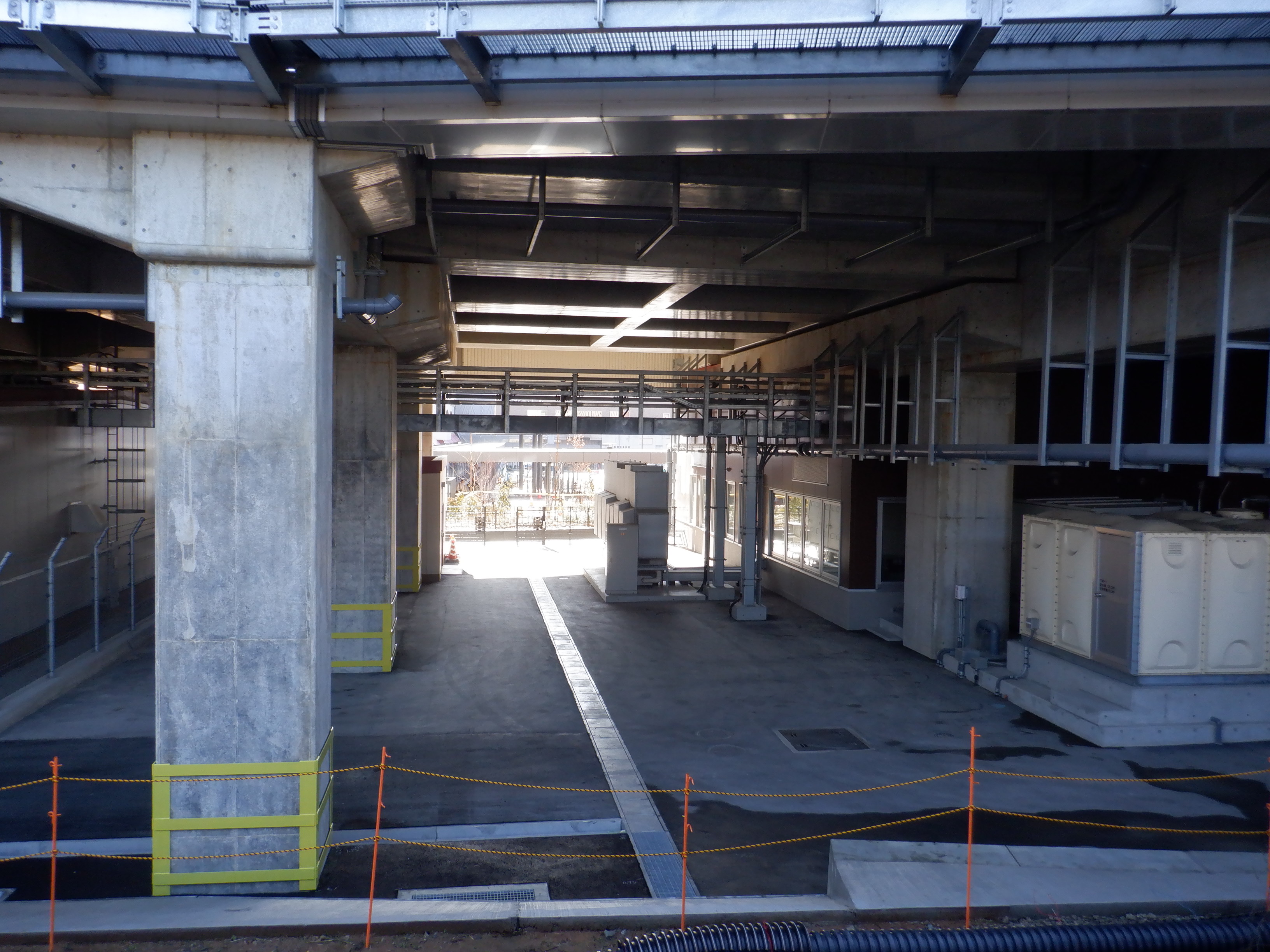 1・2番のりばから見た高架下部都市施設(コンビニ・待合室等)建設中の様子。