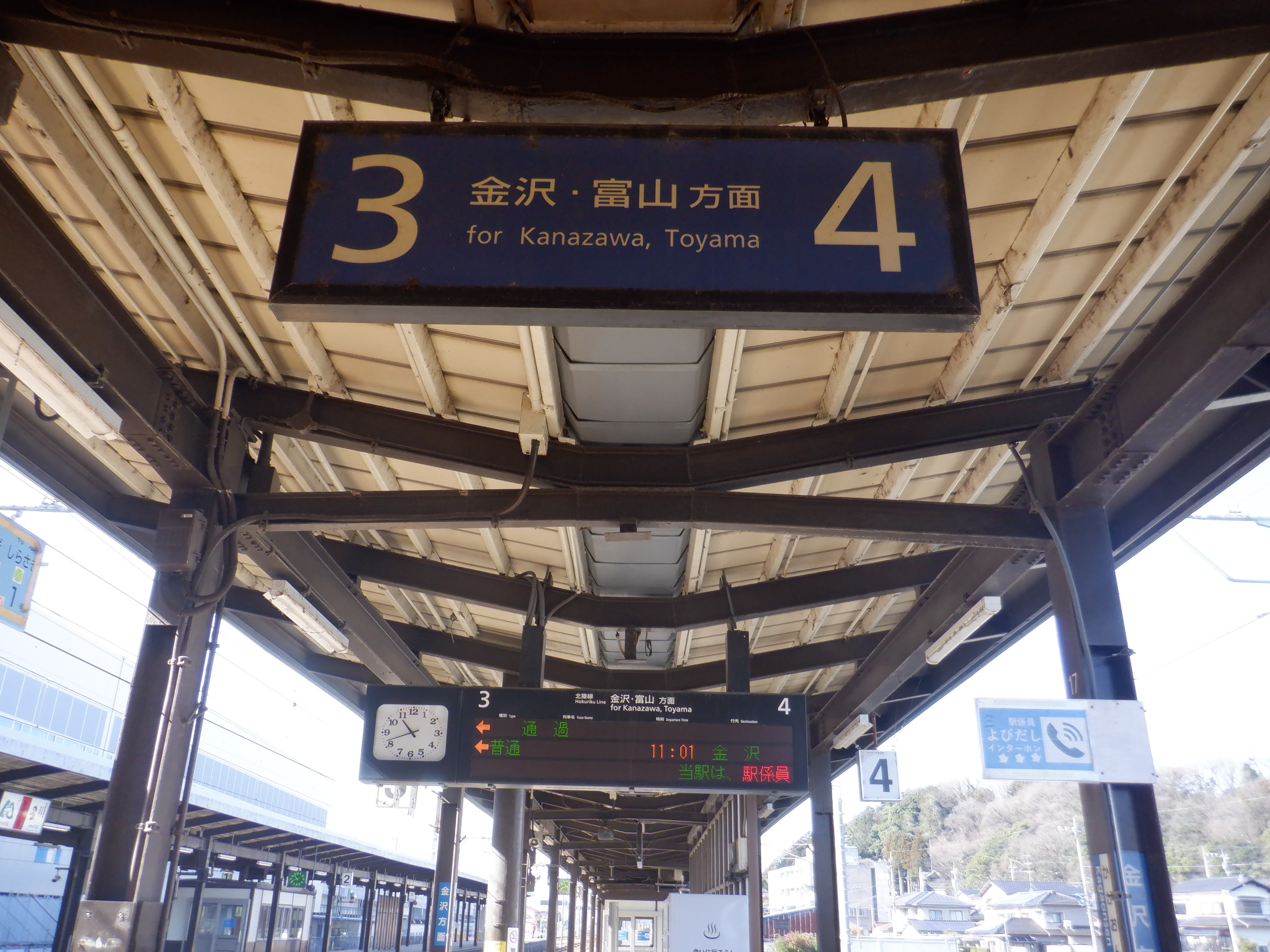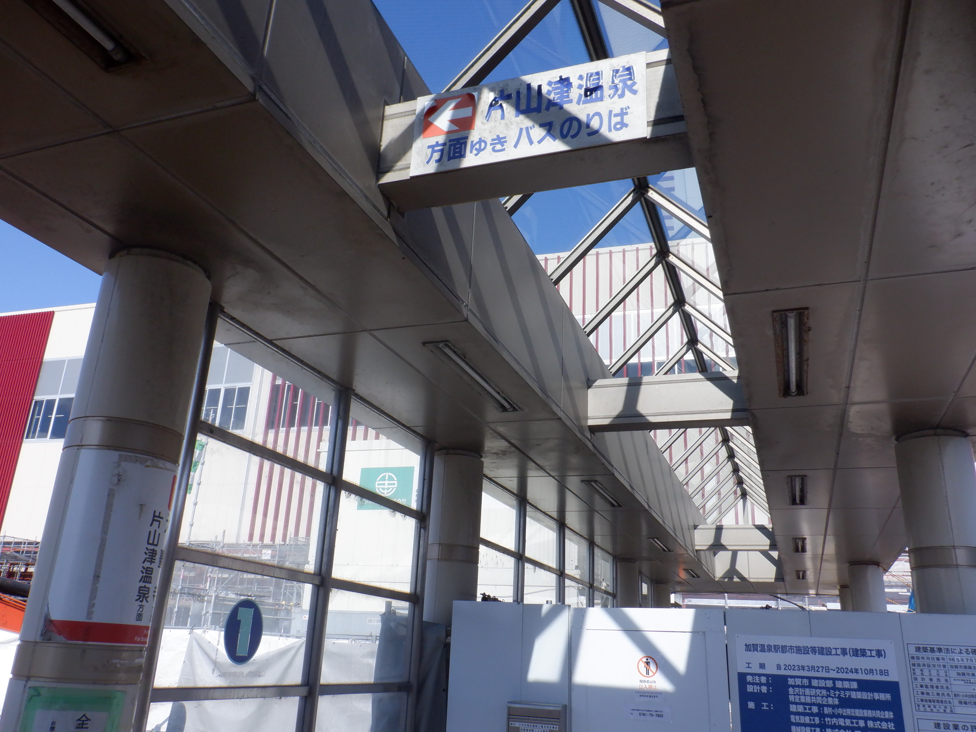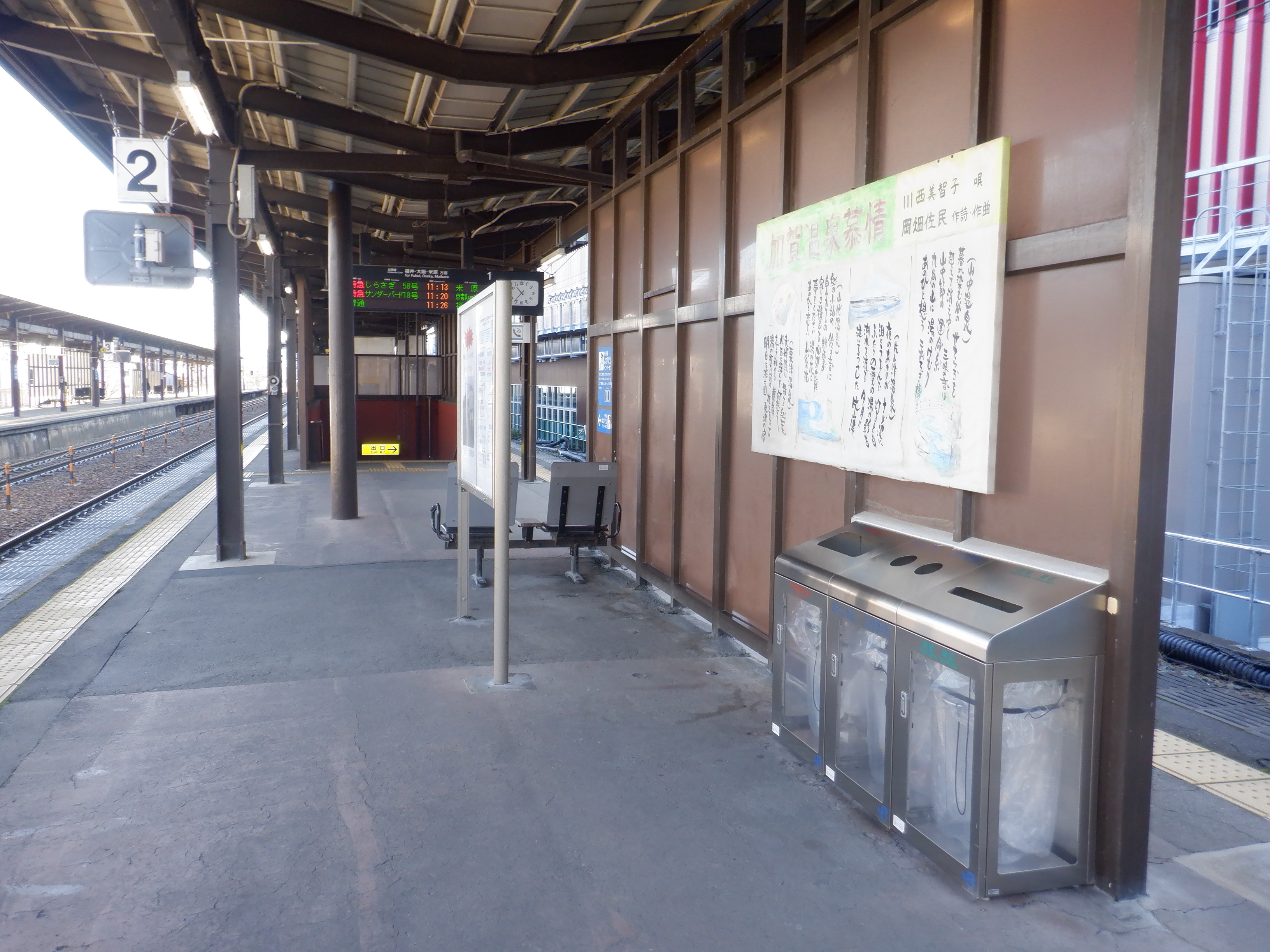 1・2番のりばの大聖寺駅側から。