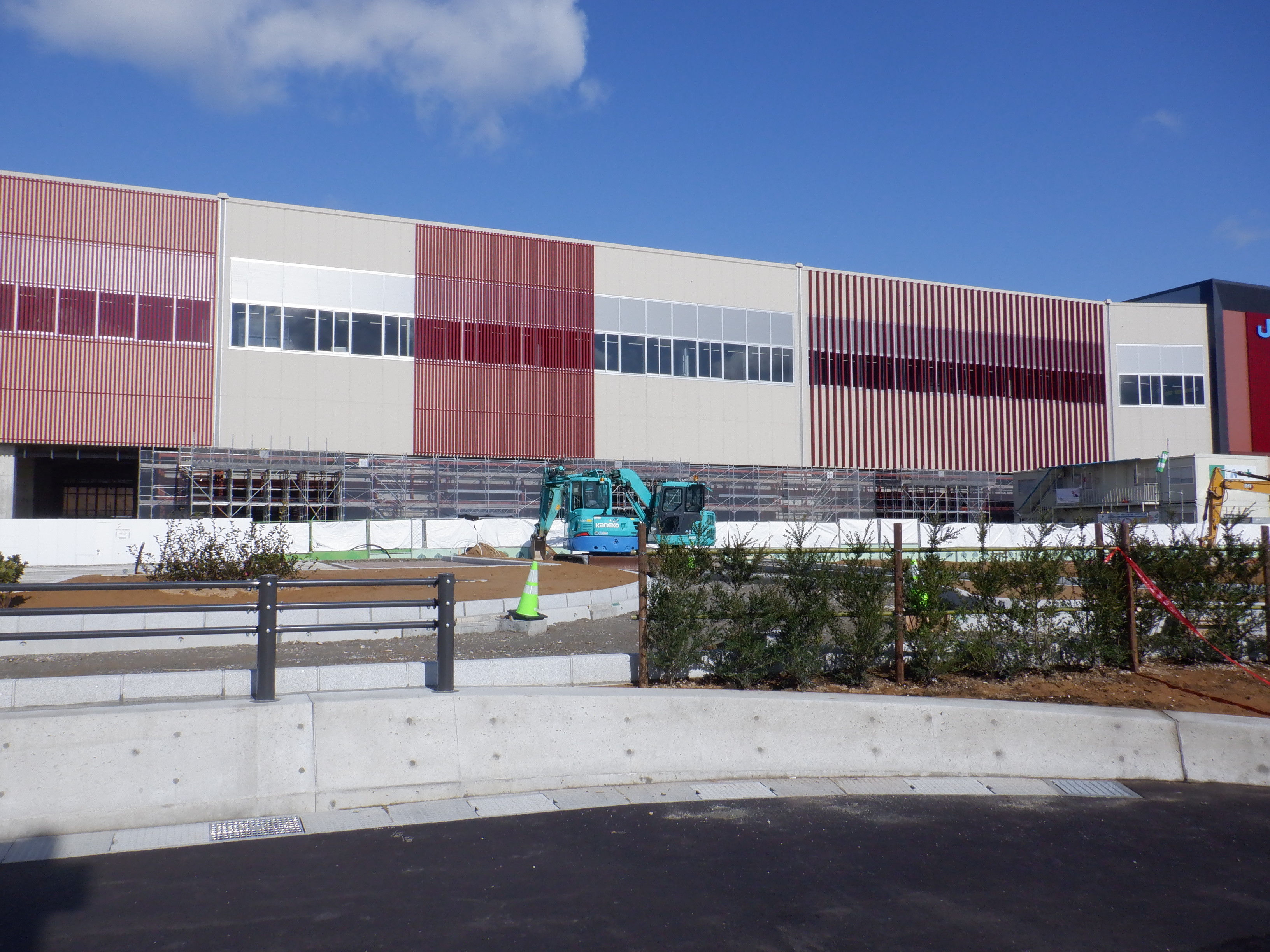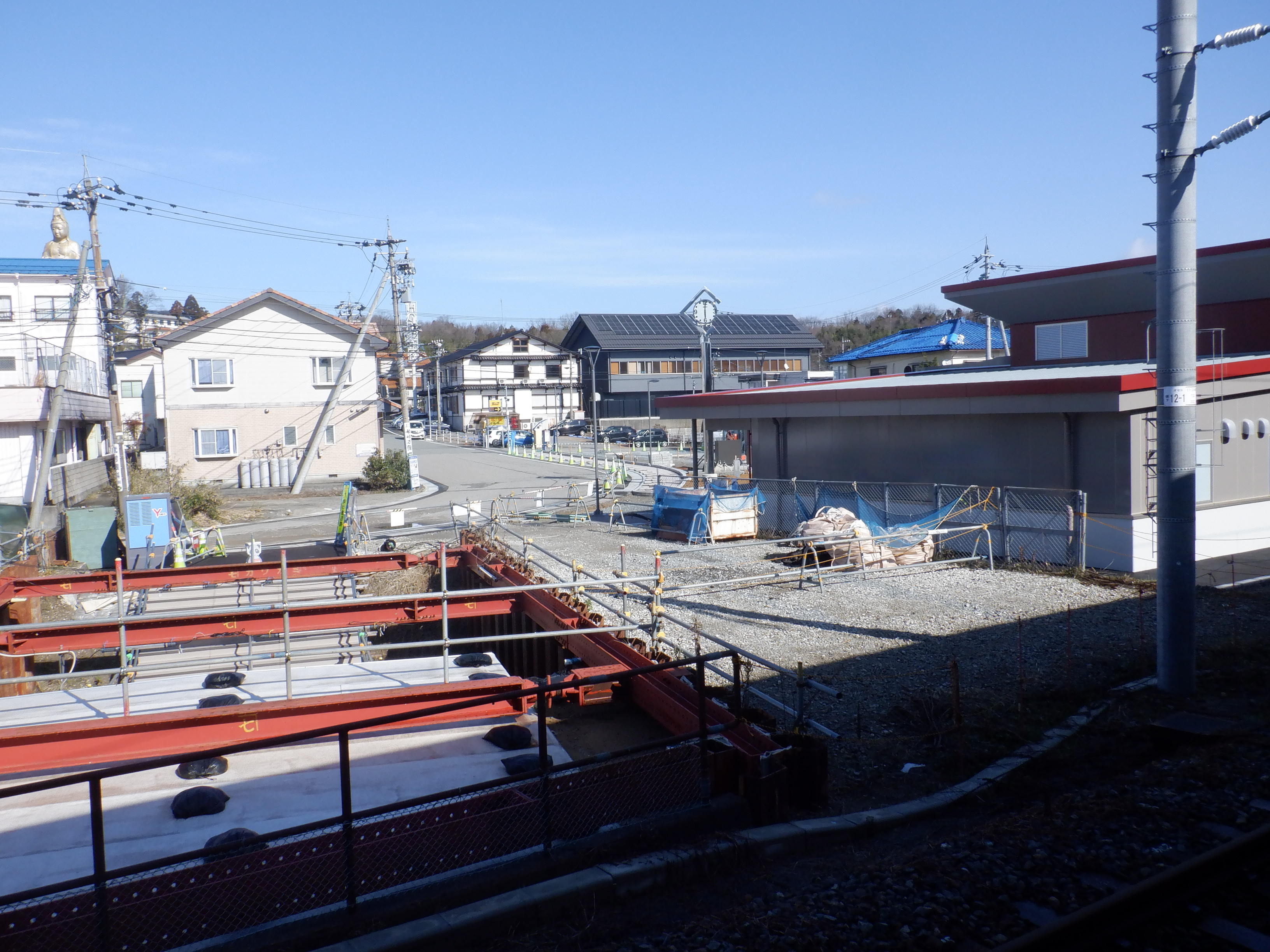 高架下部都市施設(コンビニ・待合室等)建設中のところ。