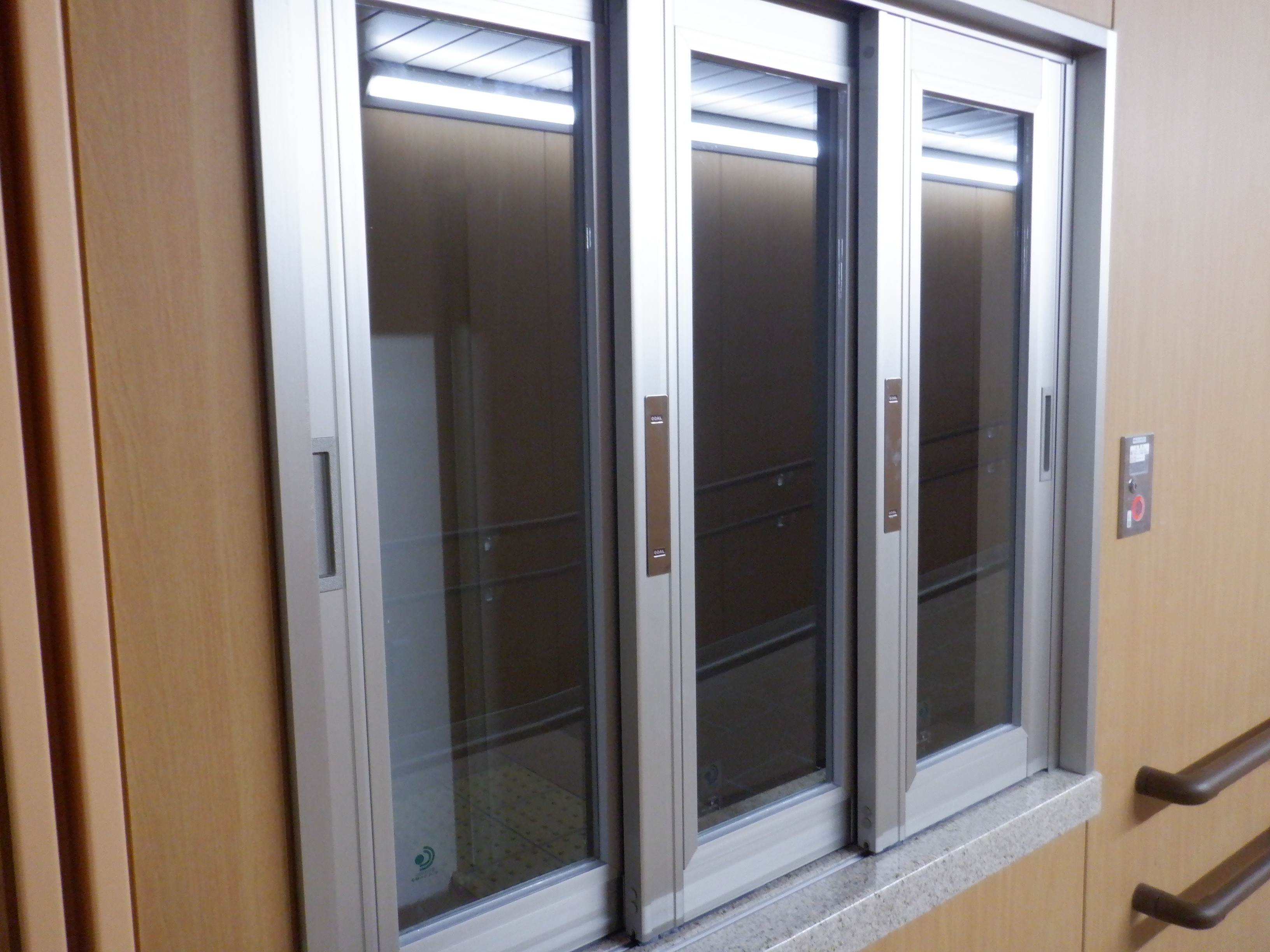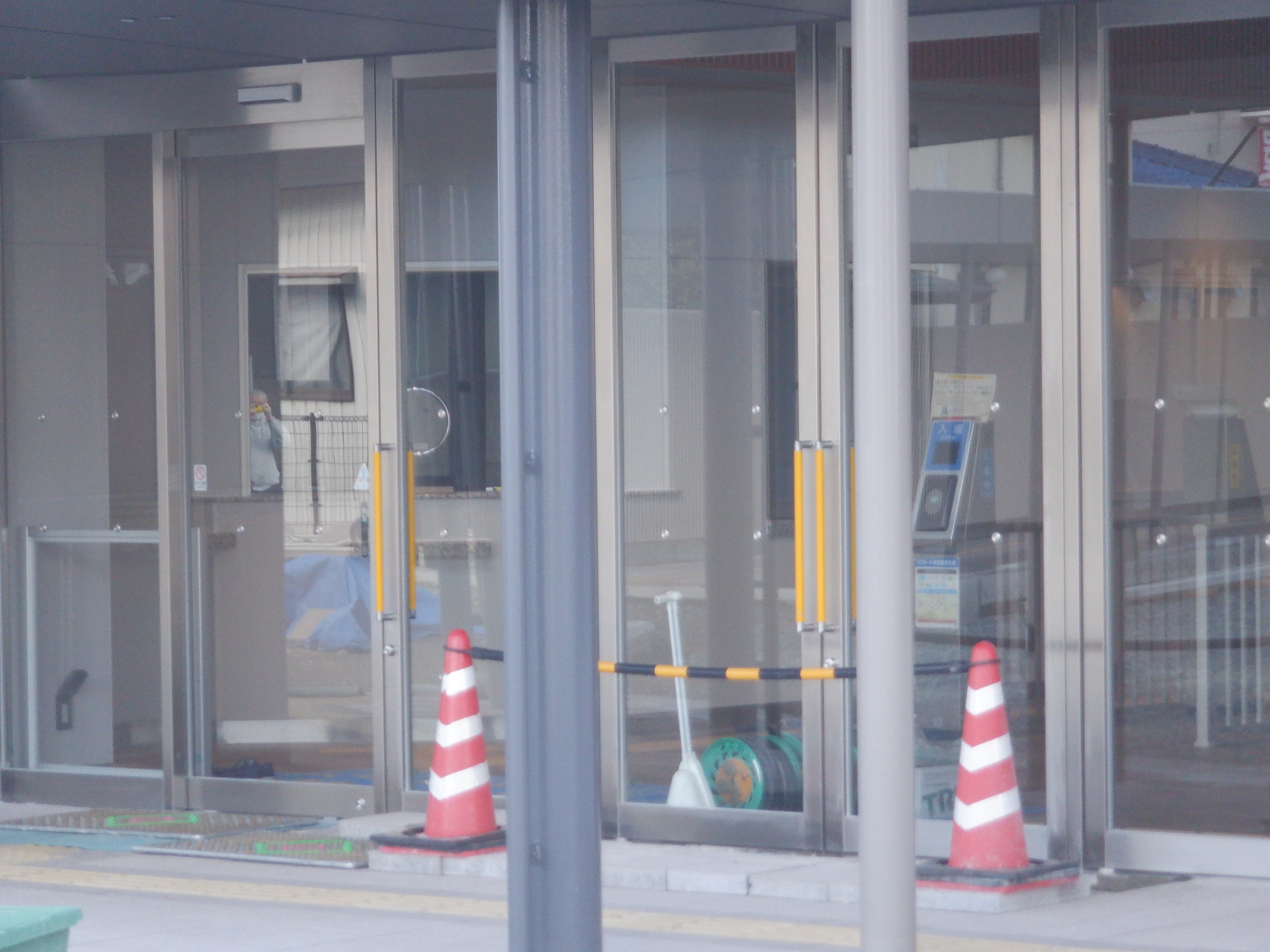 仮設駅舎の旧仮設バスのりば側出入口。