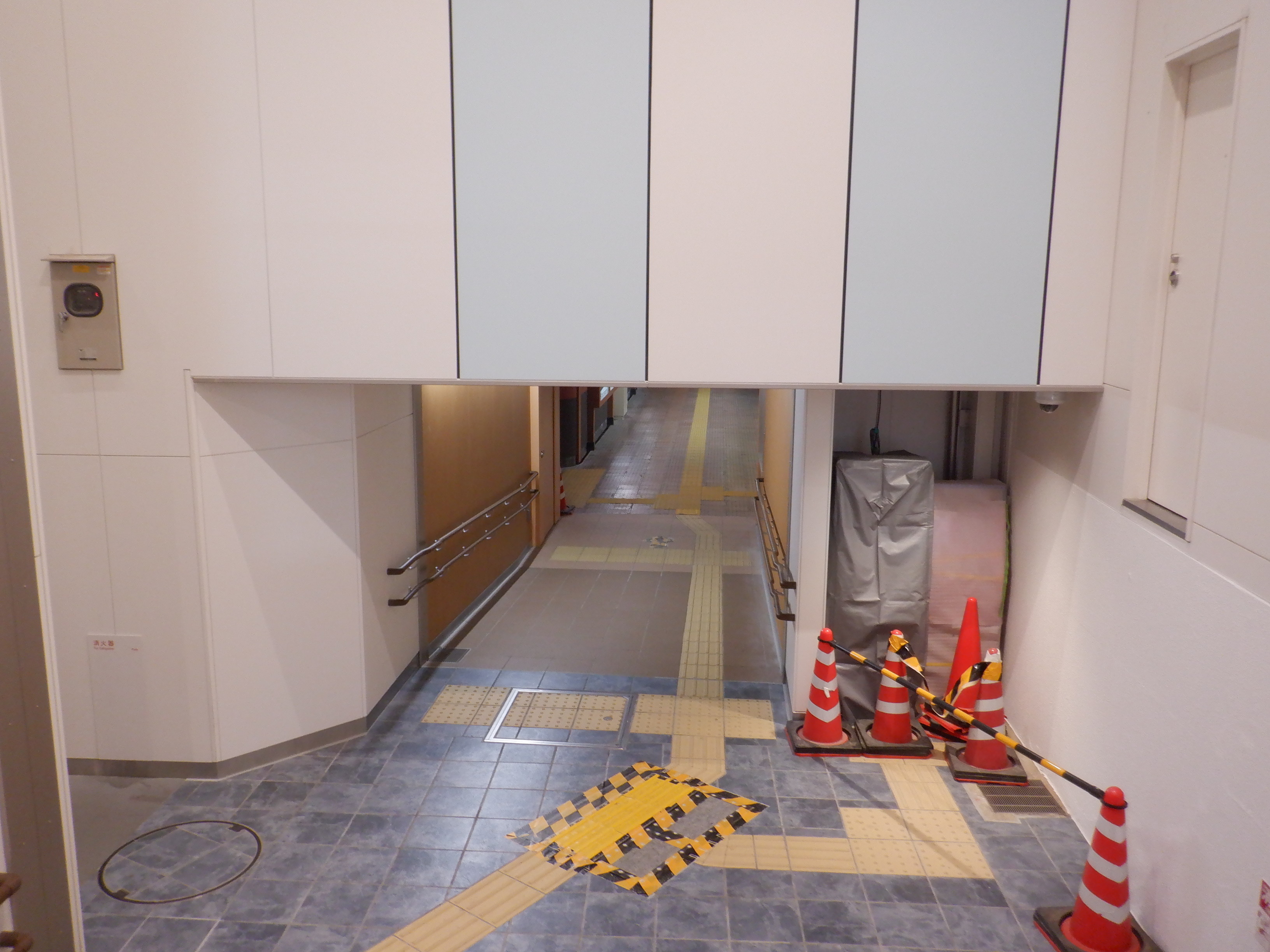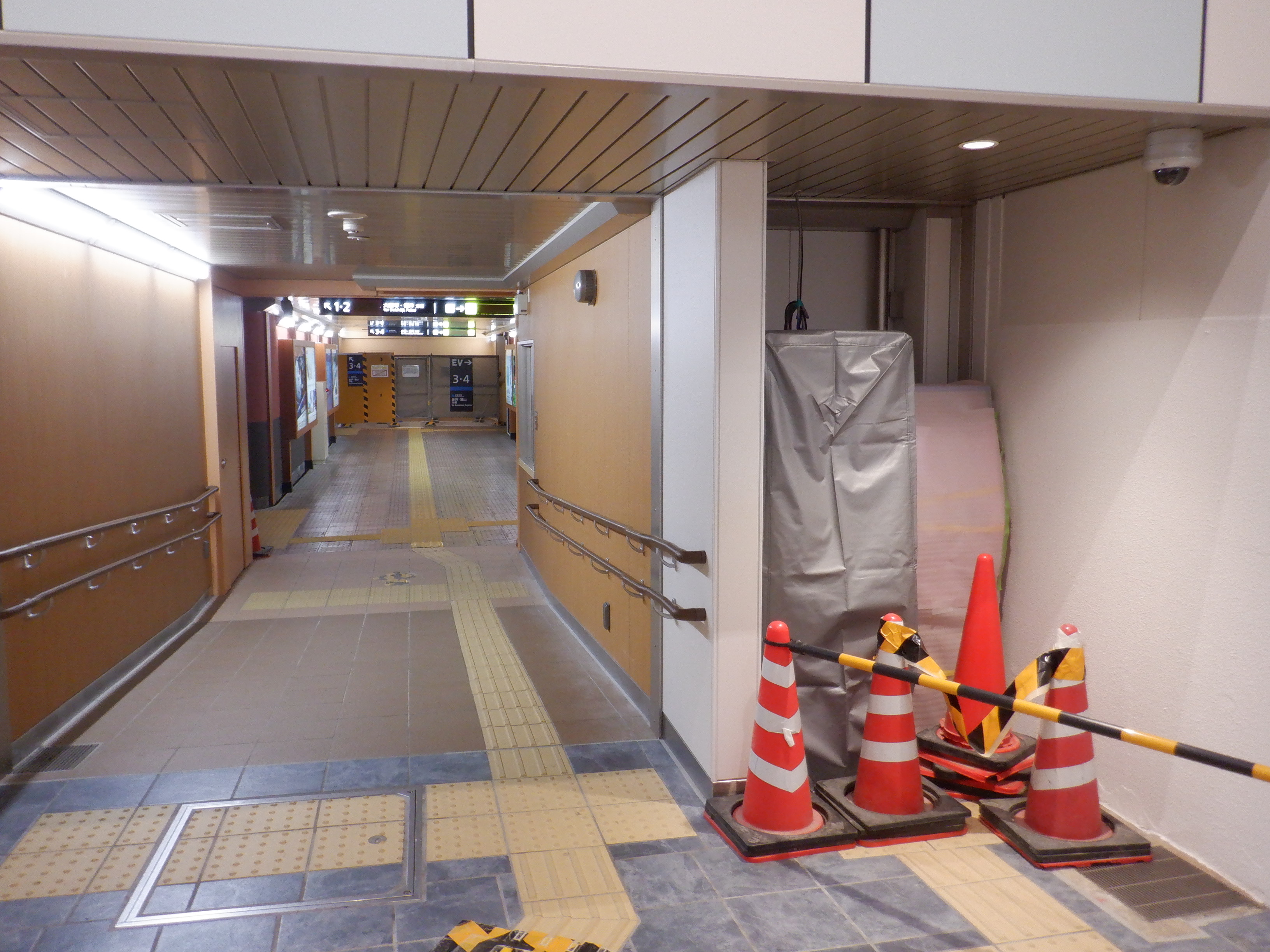 仮設通路となっている新幹線のりばコンコースとなるところ。