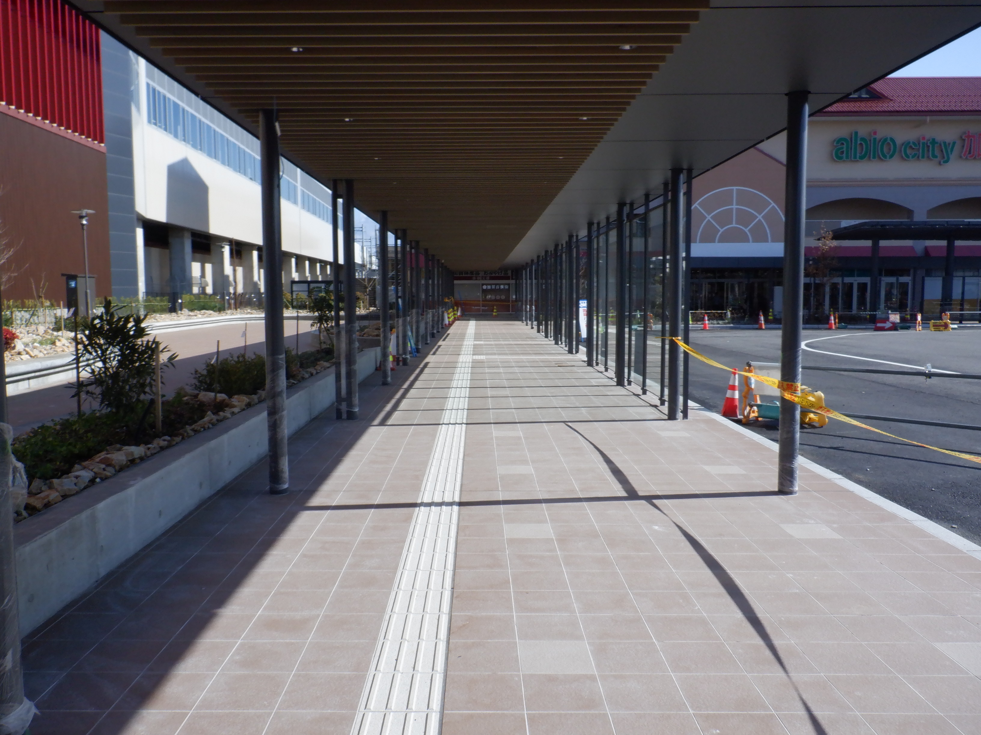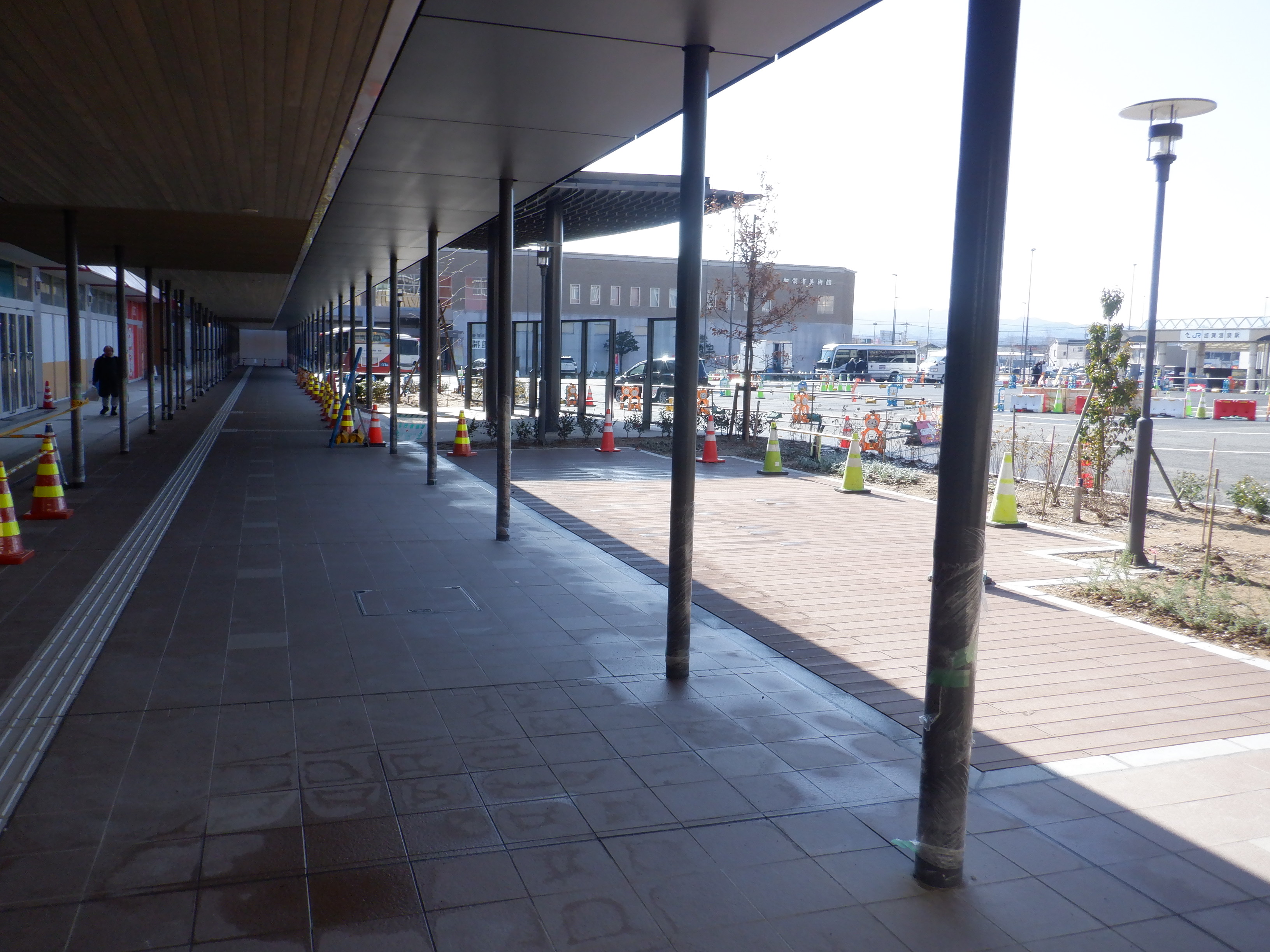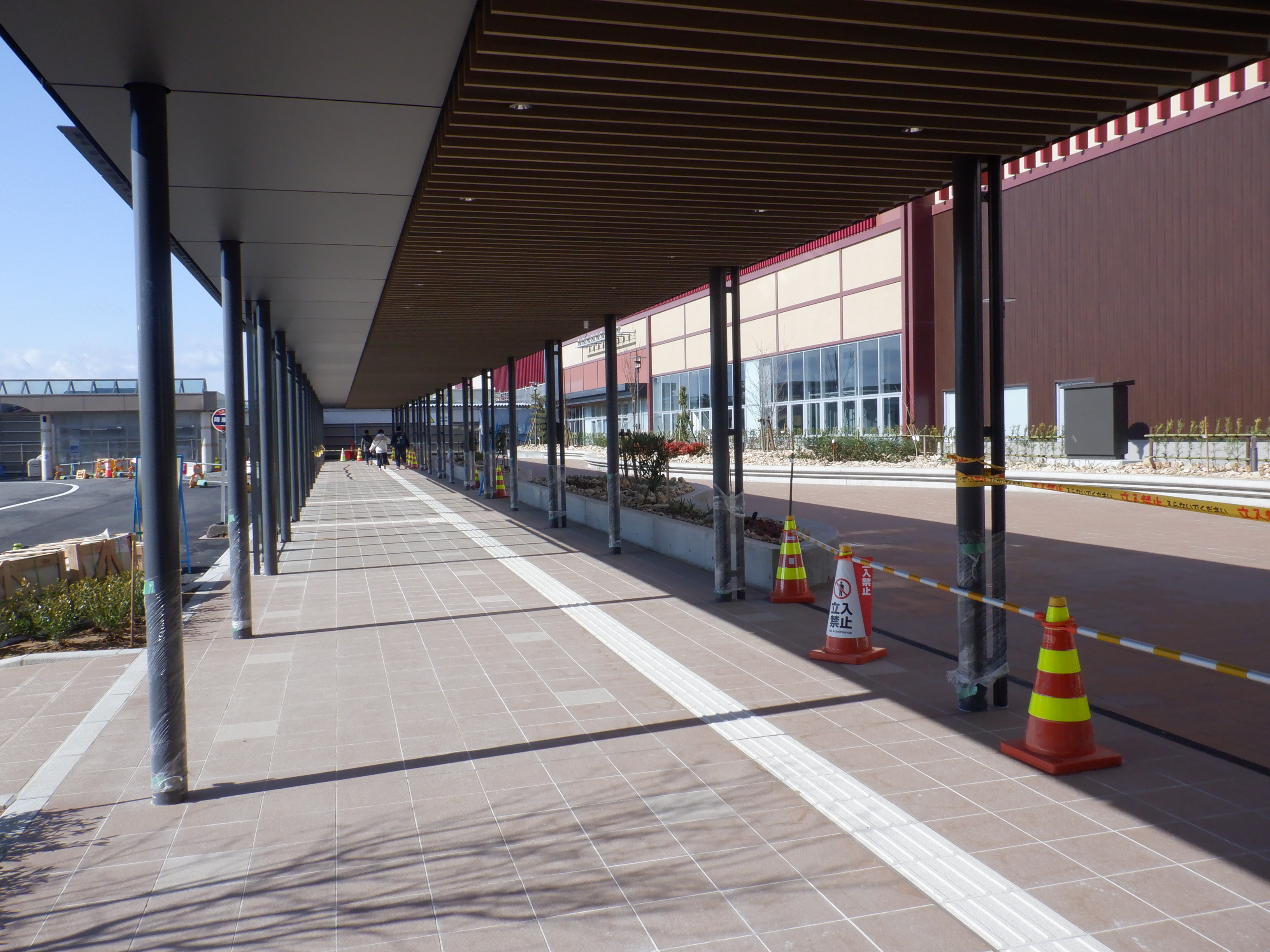 仮設駅舎からアルプラザ側へ新幹線駅舎前を通る通路。