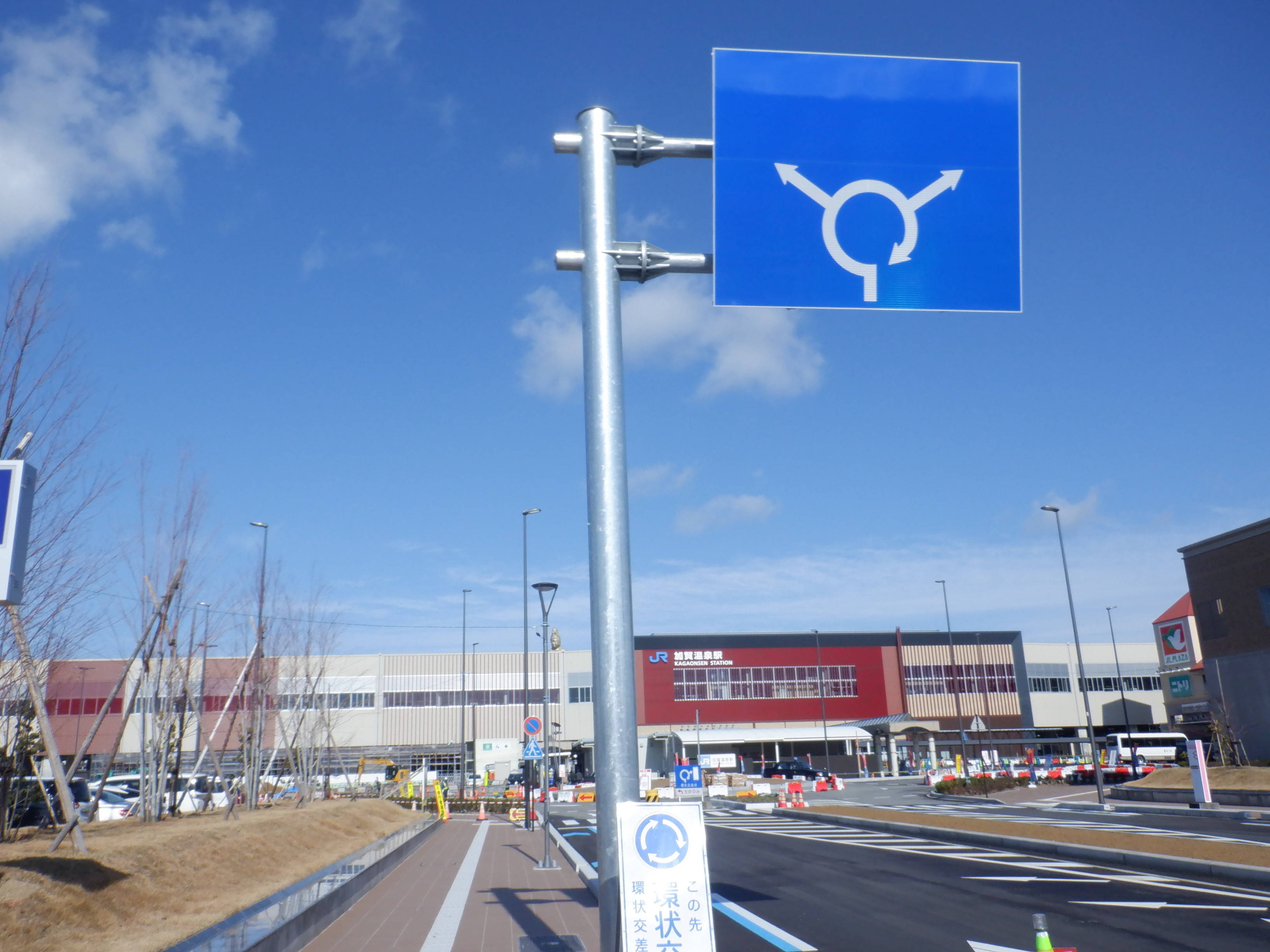正面付近と環状交差点、その青看板など。