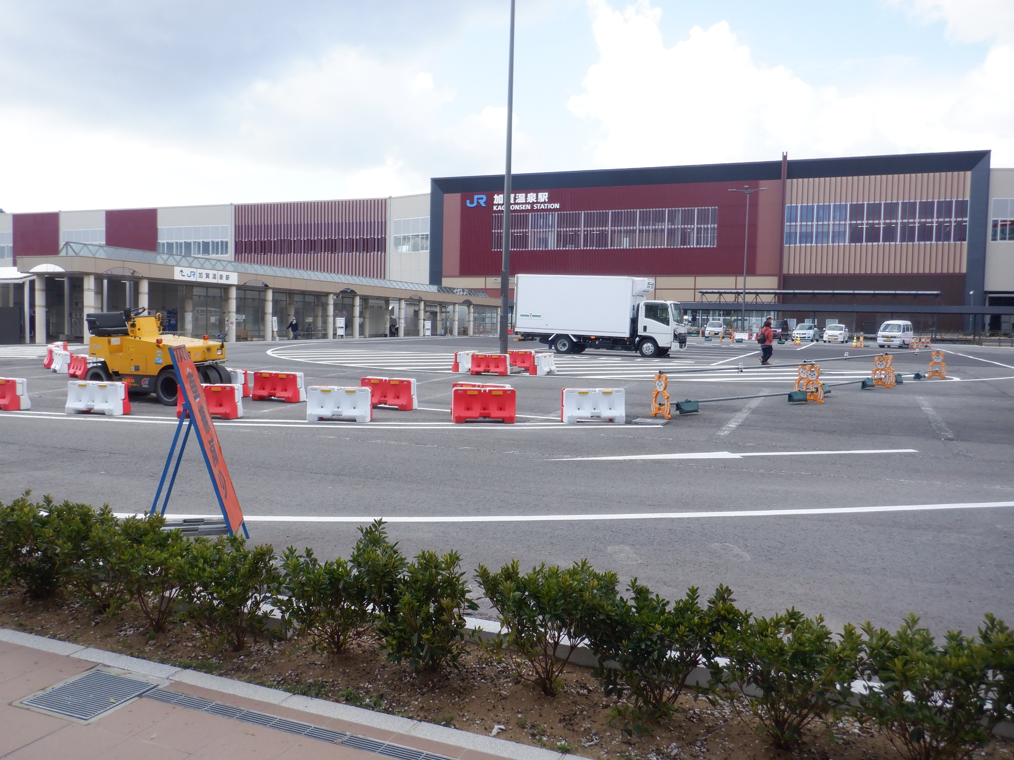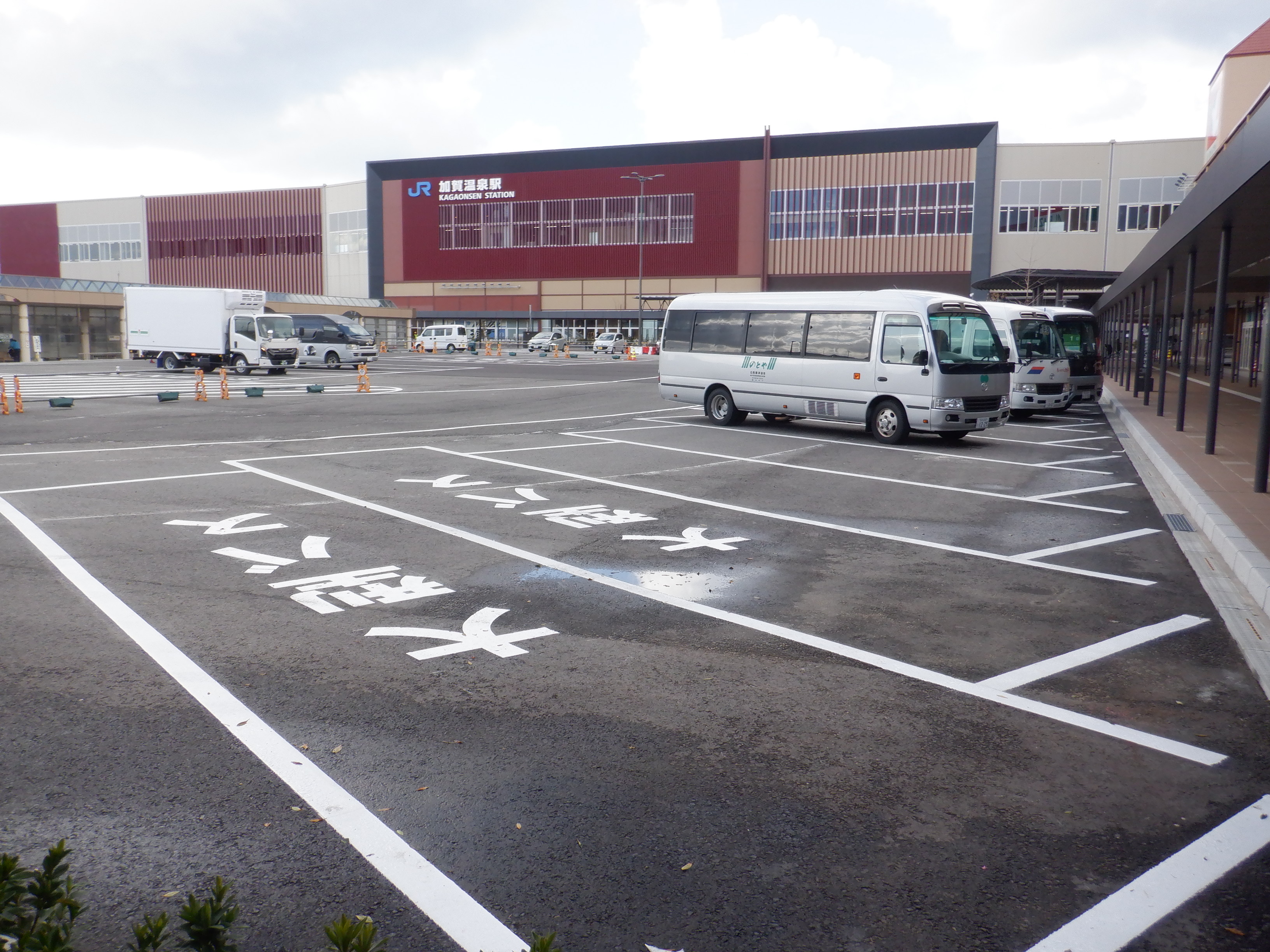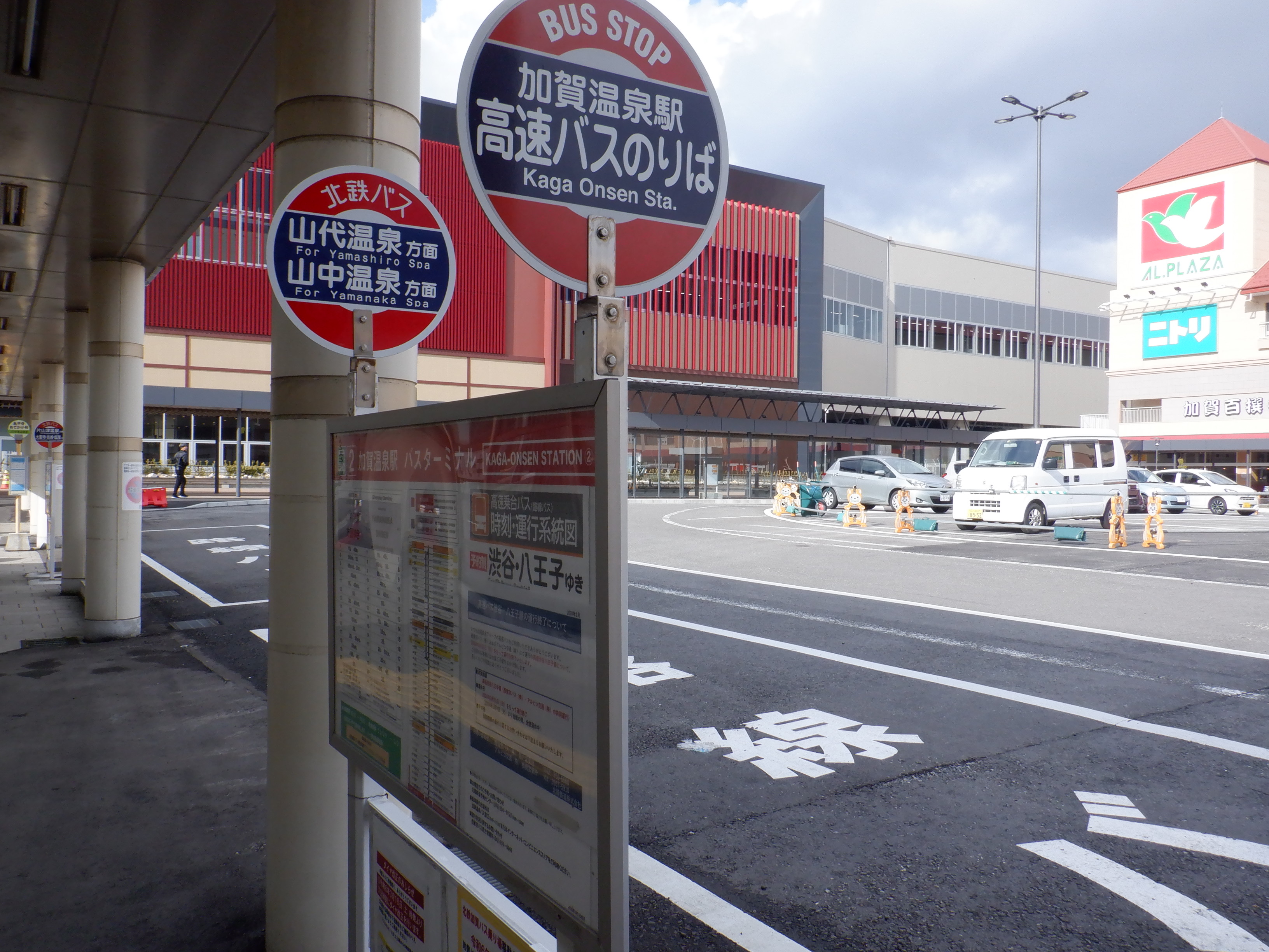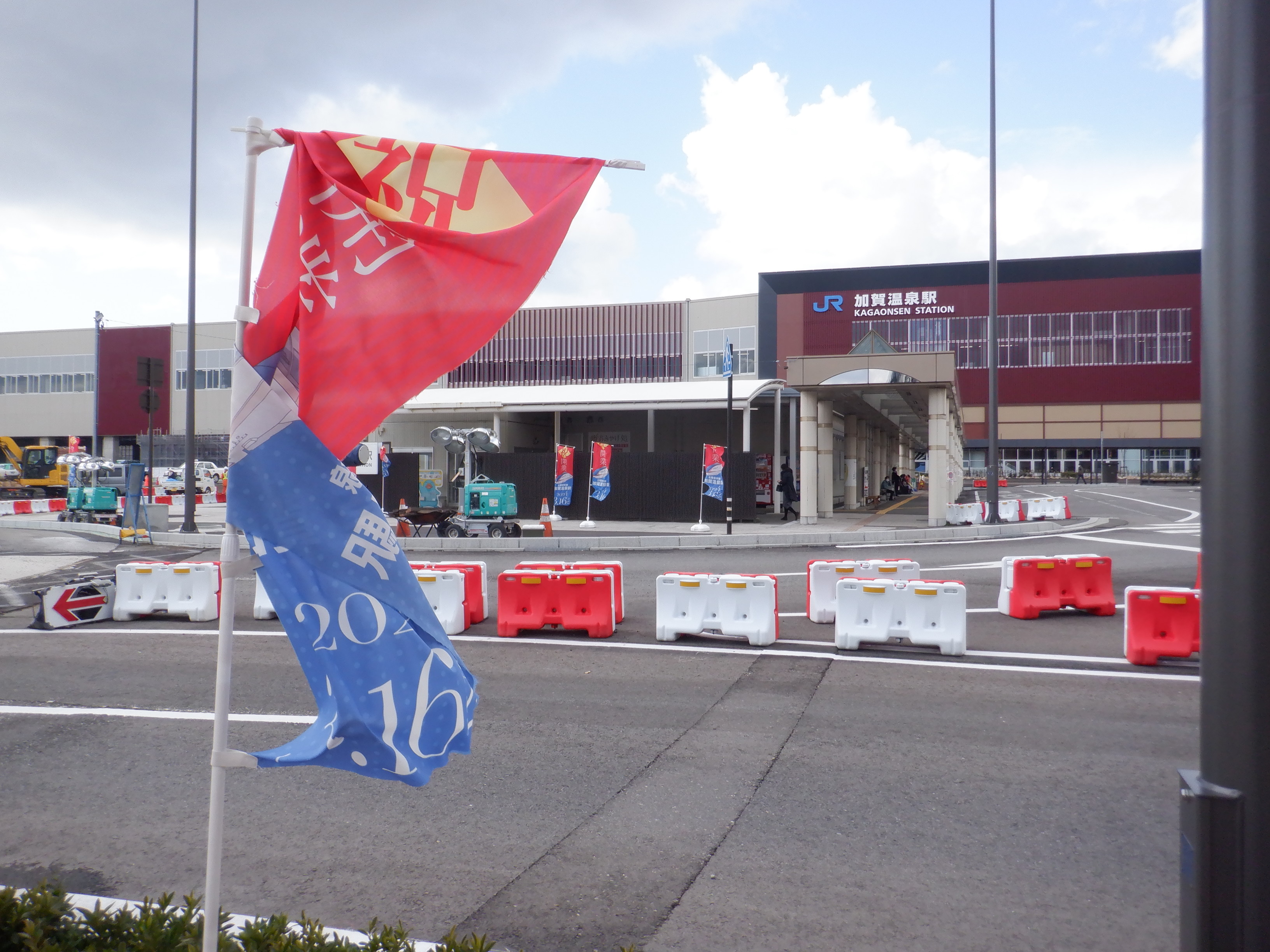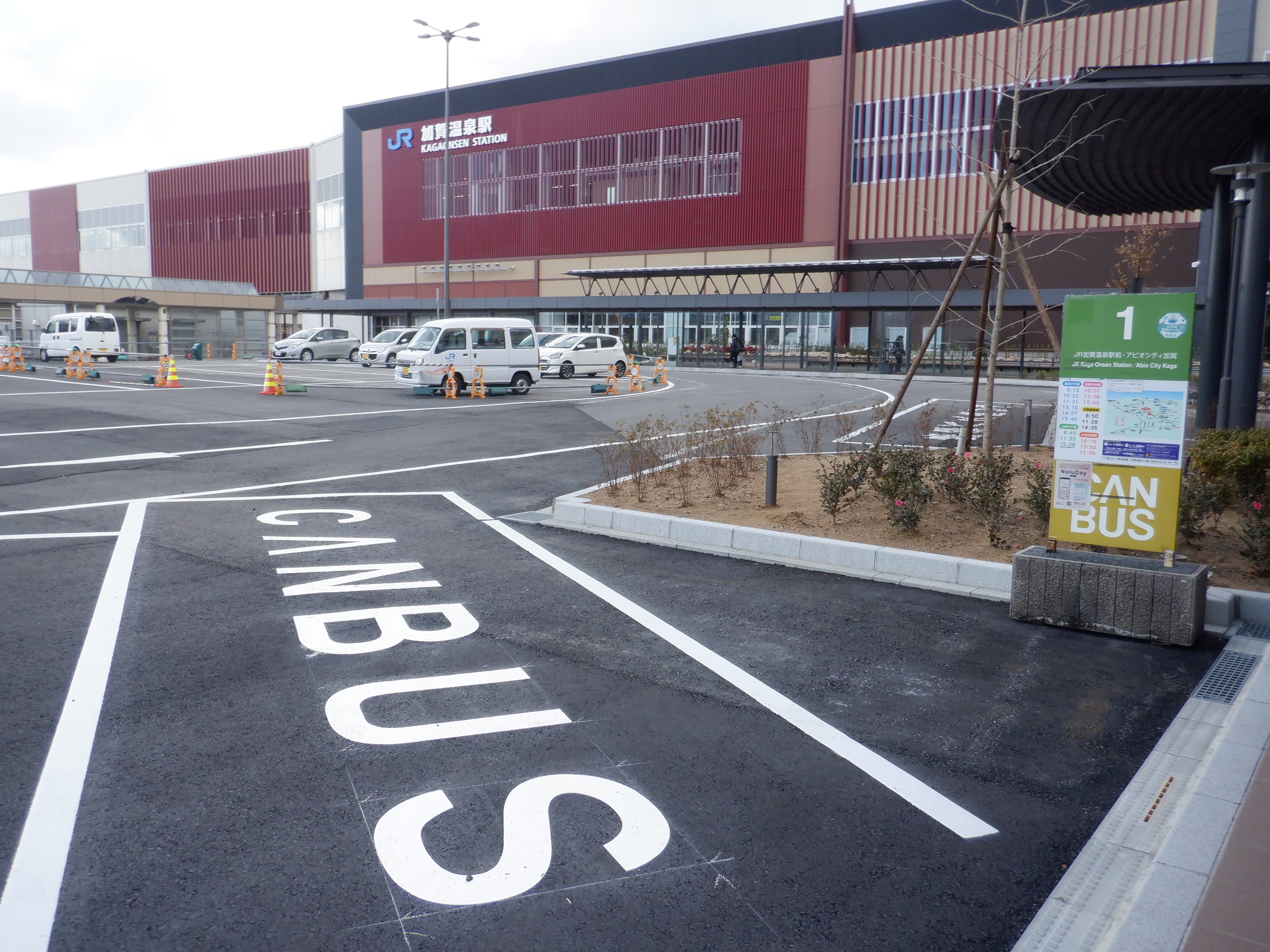 この時点で既に「JR・IR加賀温泉駅」として案内がされています。