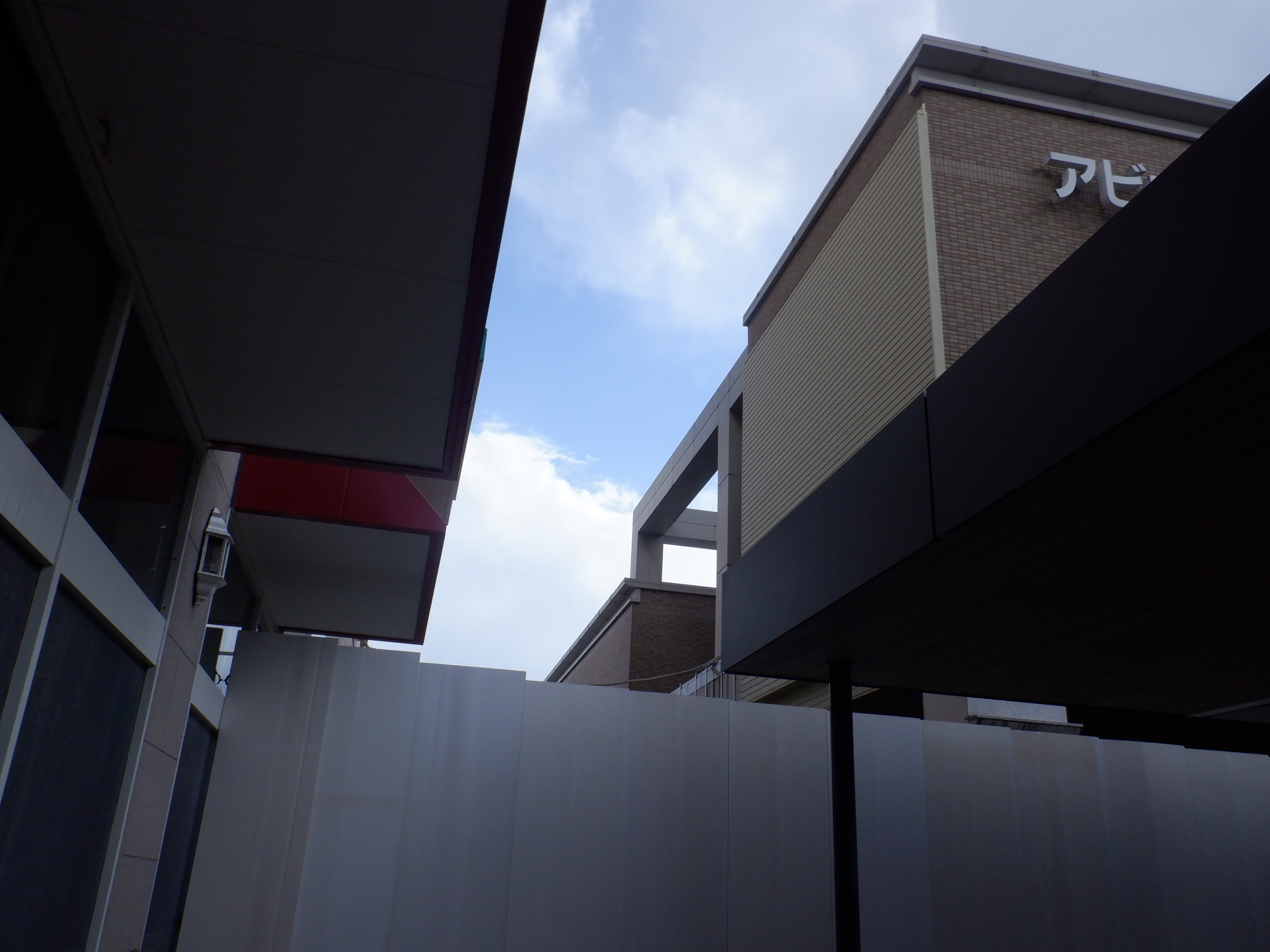 アルプラザとアビオシティホールの間の接続部分は囲いはされていますがきれいに撤去されたようです。