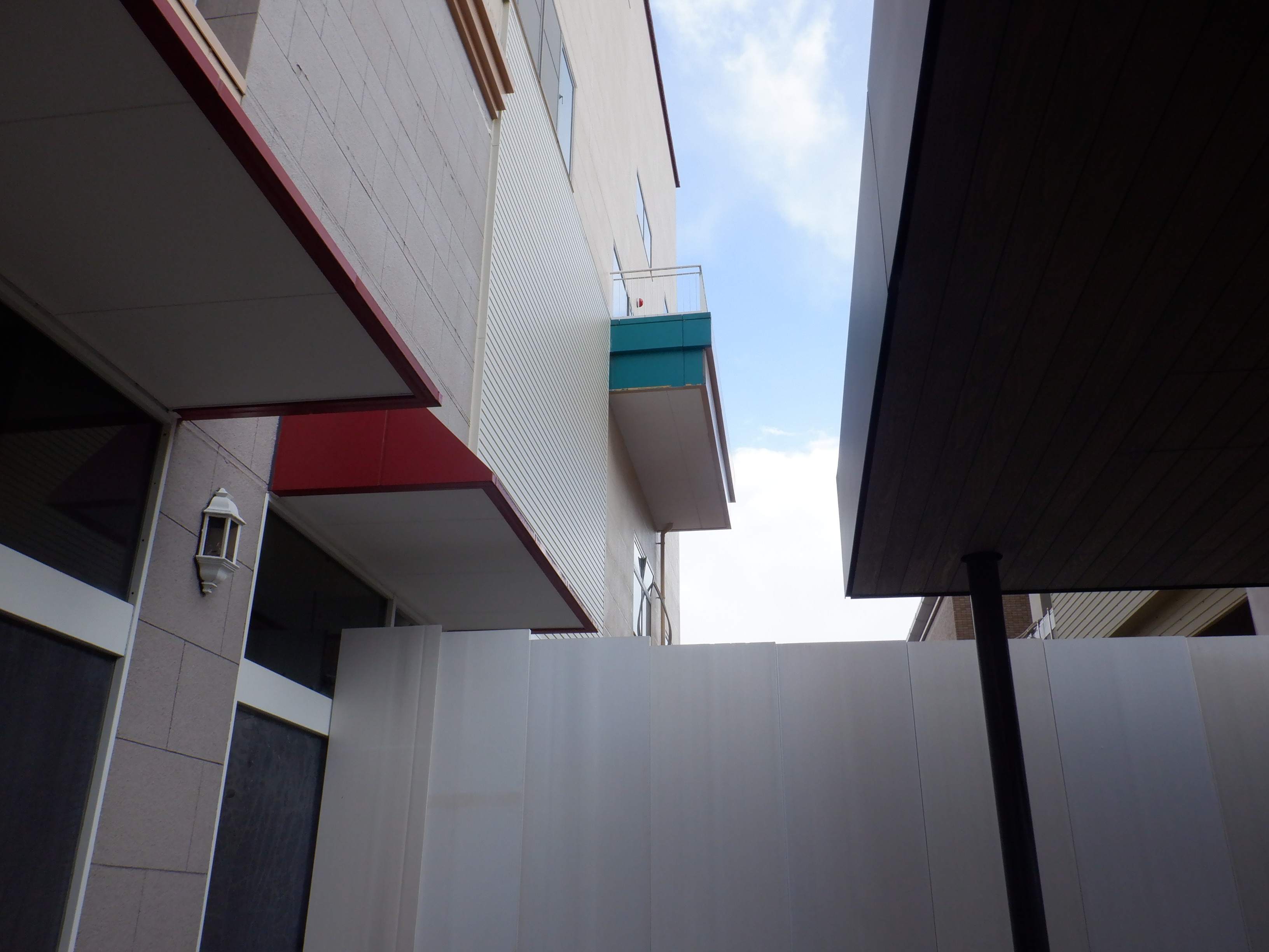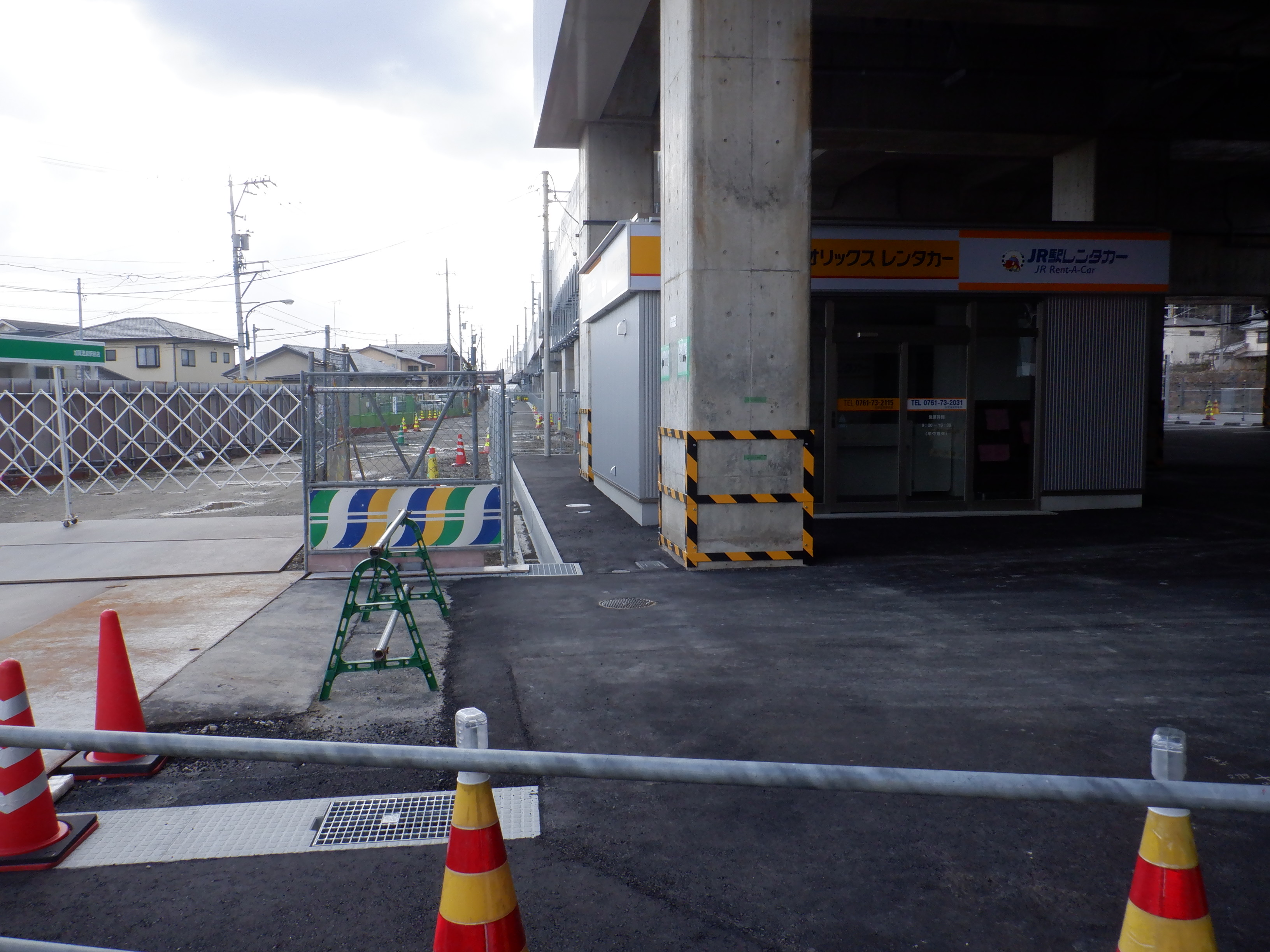 迂回通路から見たレンタカー屋さんの建物となるところ。