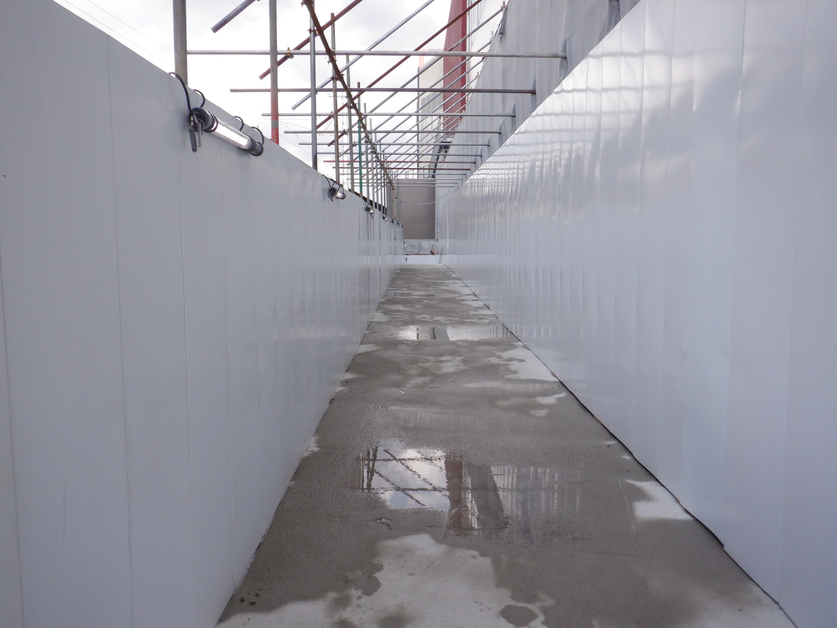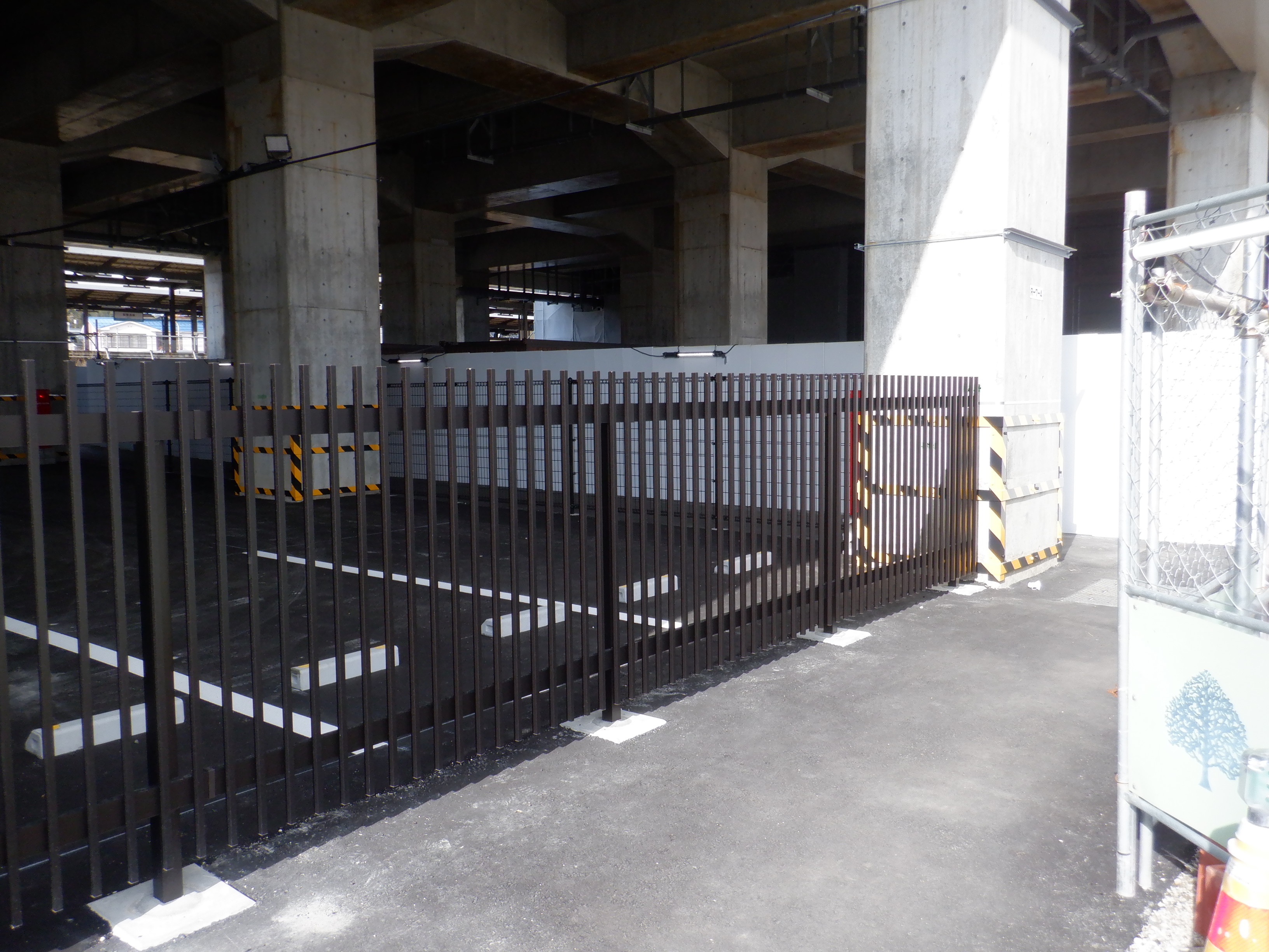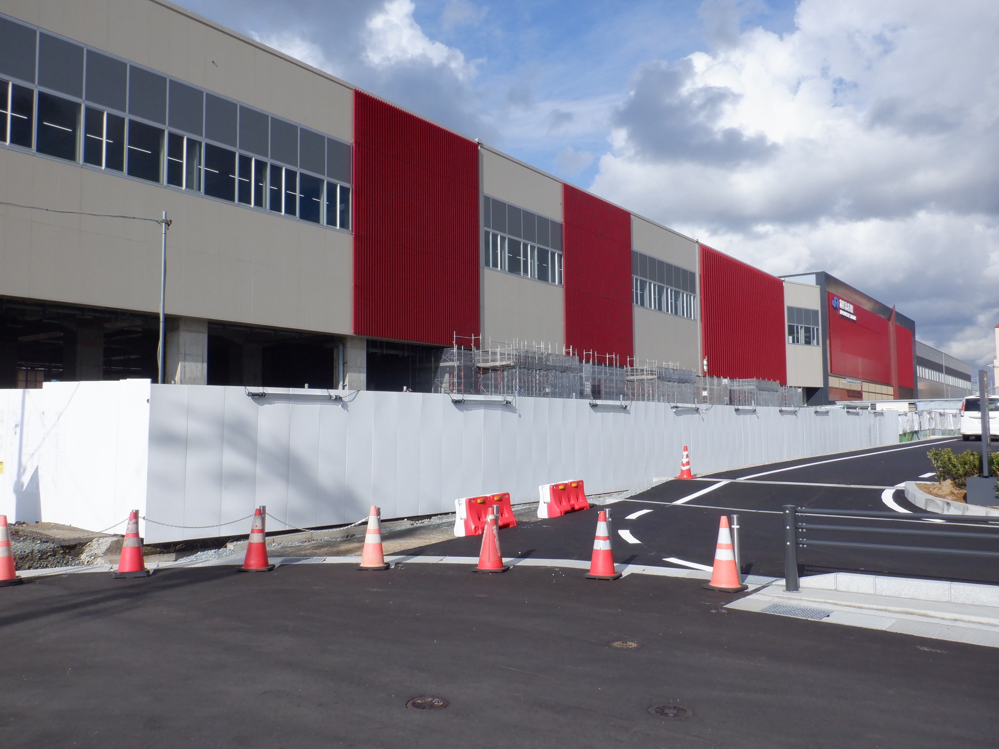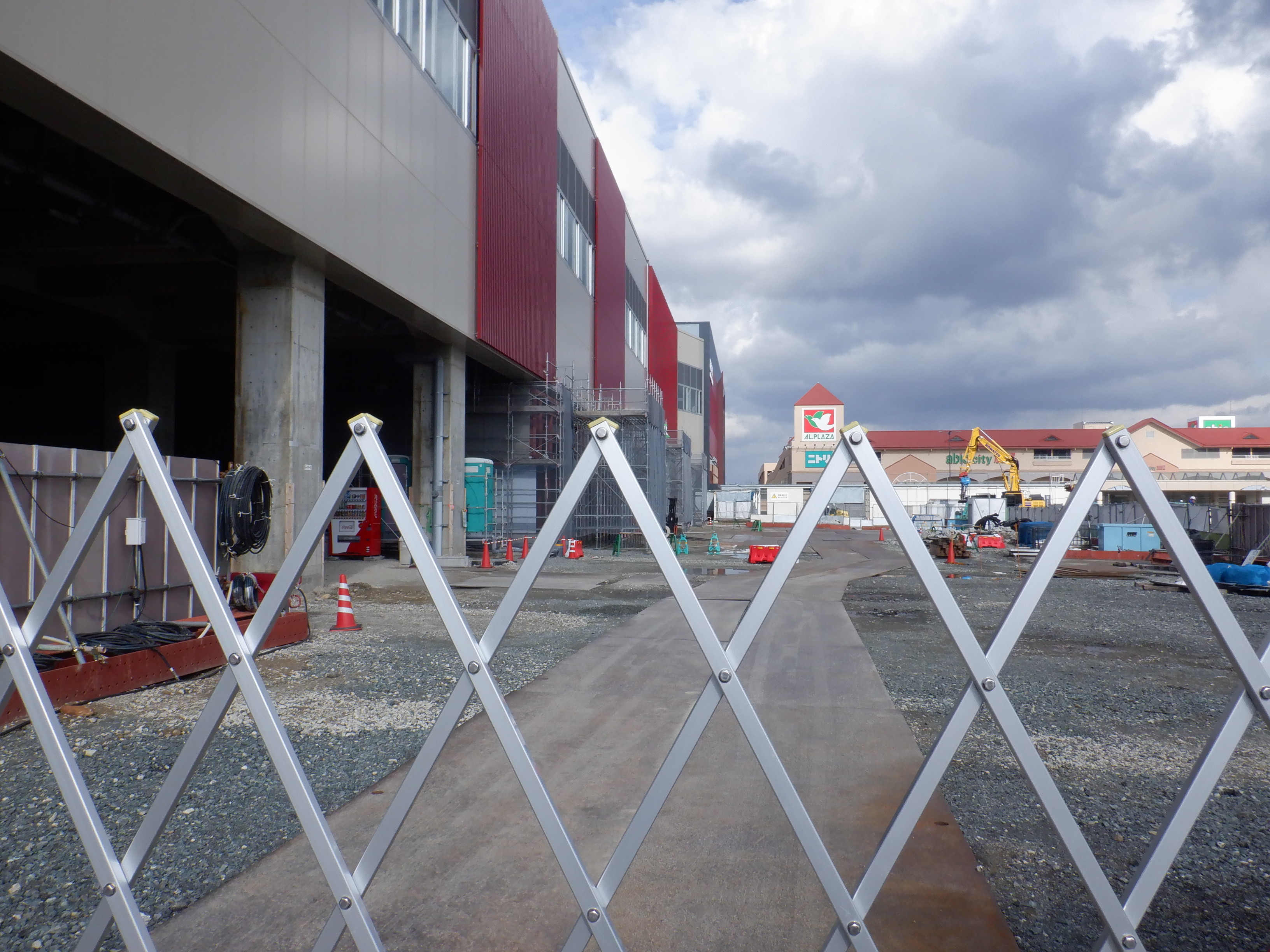 迂回通路から見た高架下部都市施設(コンビニ・待合室等)建設中の様子。