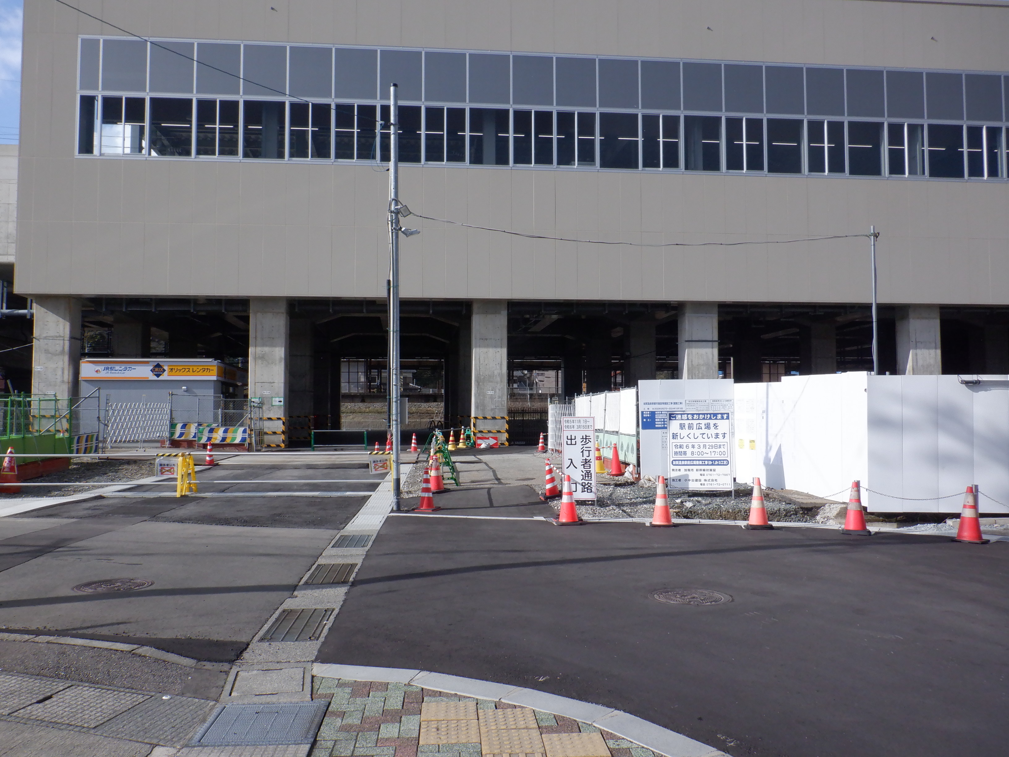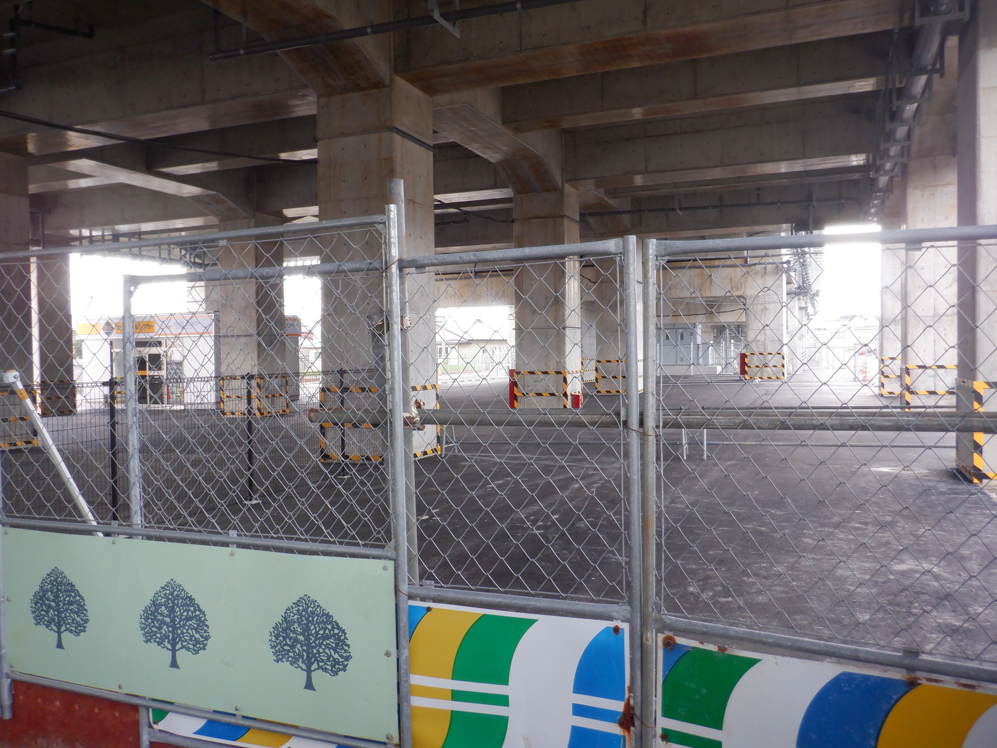 1・2番のりばから見た高架下部都市施設(コンビニ・待合室等)建設中のところ。