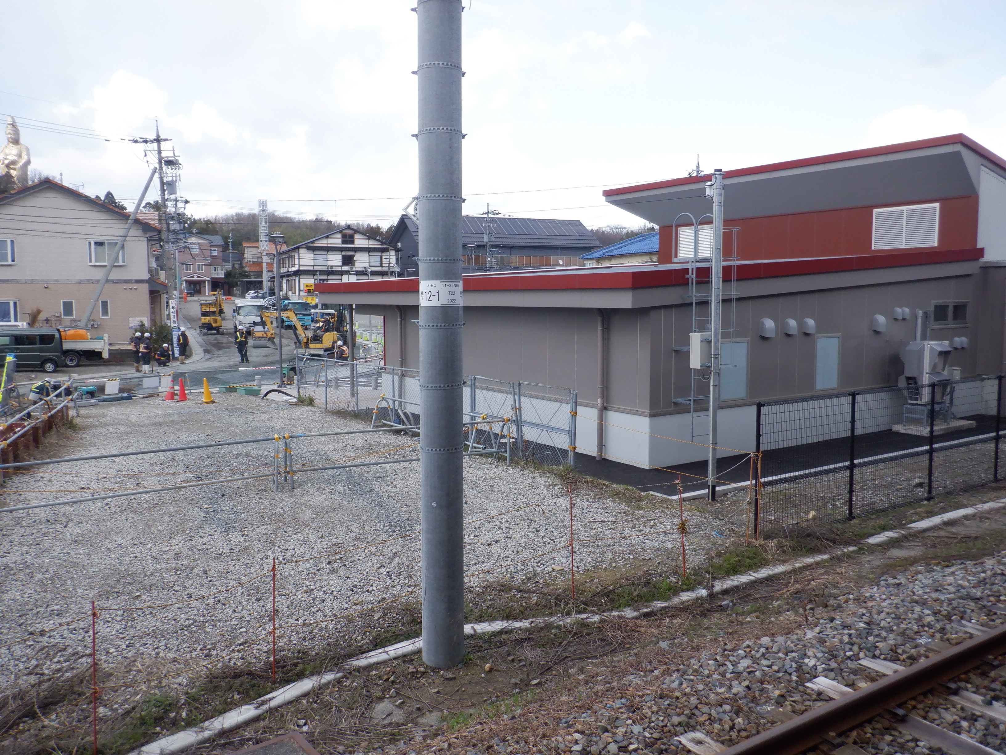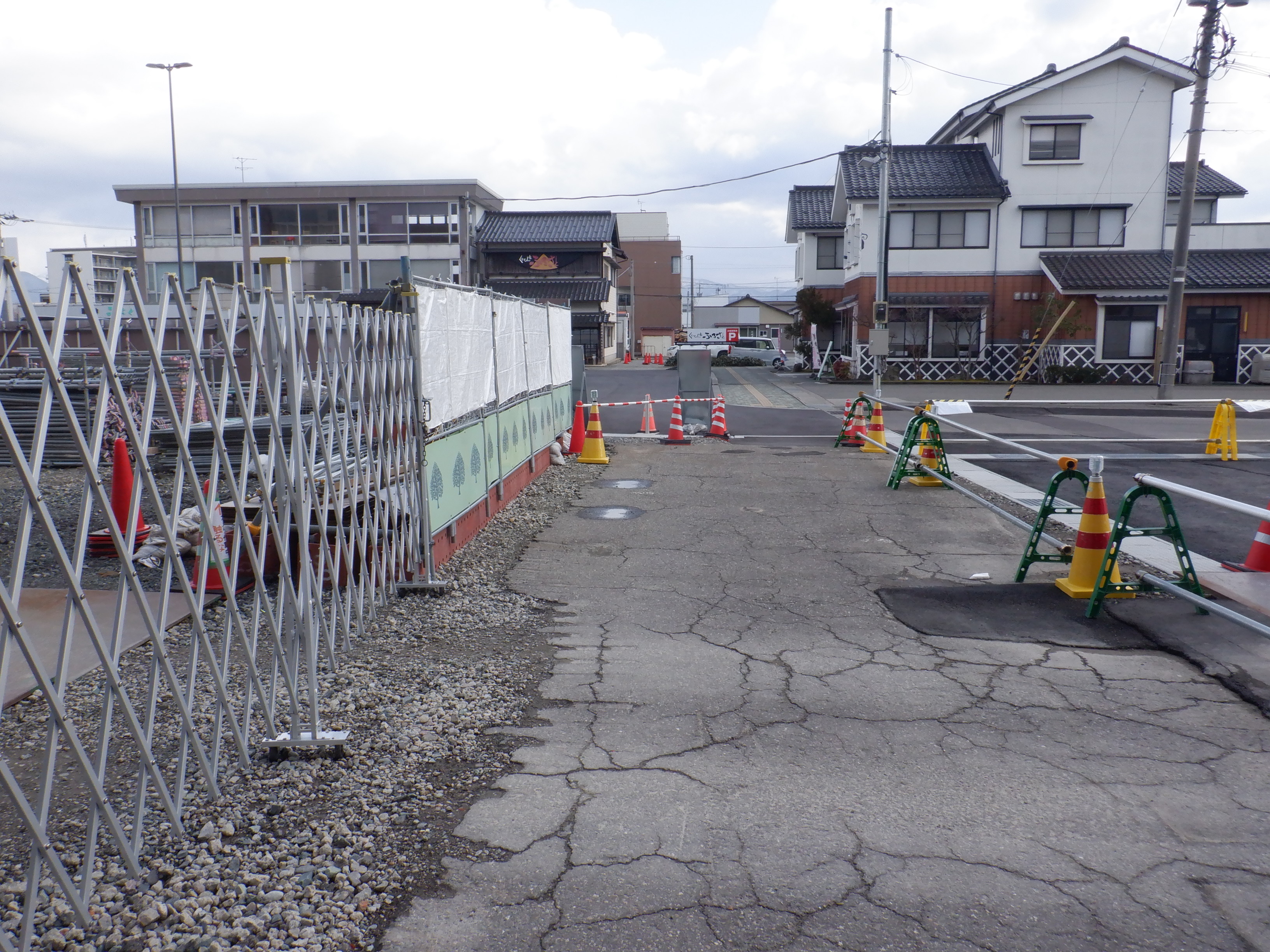 北口の駅前広場整備中の様子。アスファルト工事等広範囲にわたって作業中のため、今回は3枚のみとします。