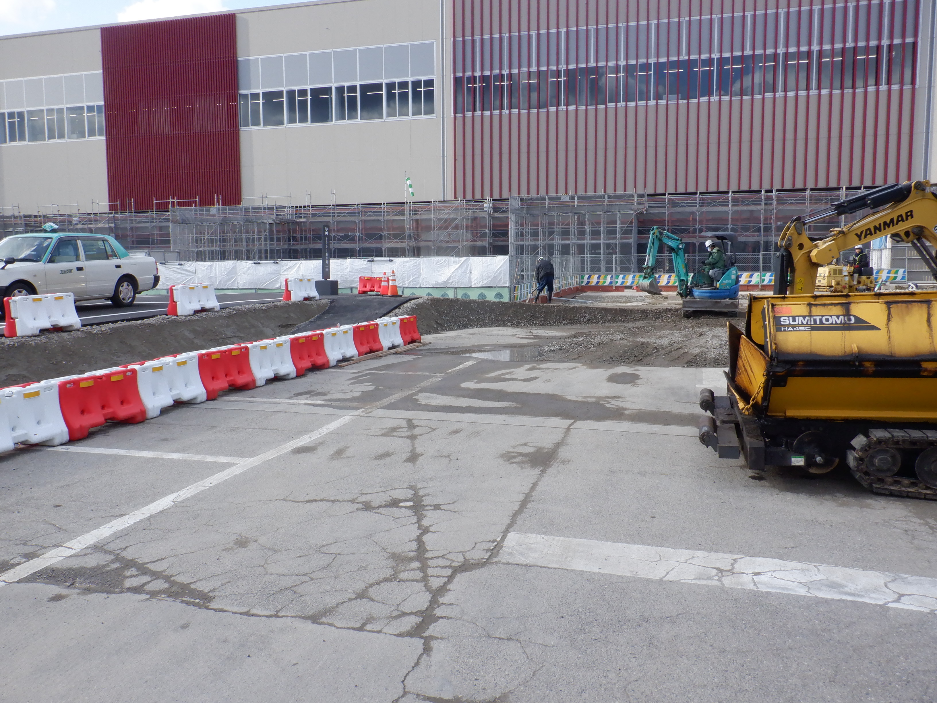 自家用車・タクシー等の乗降場となるところ。仮設タクシー乗降場の整備が進んでいます。