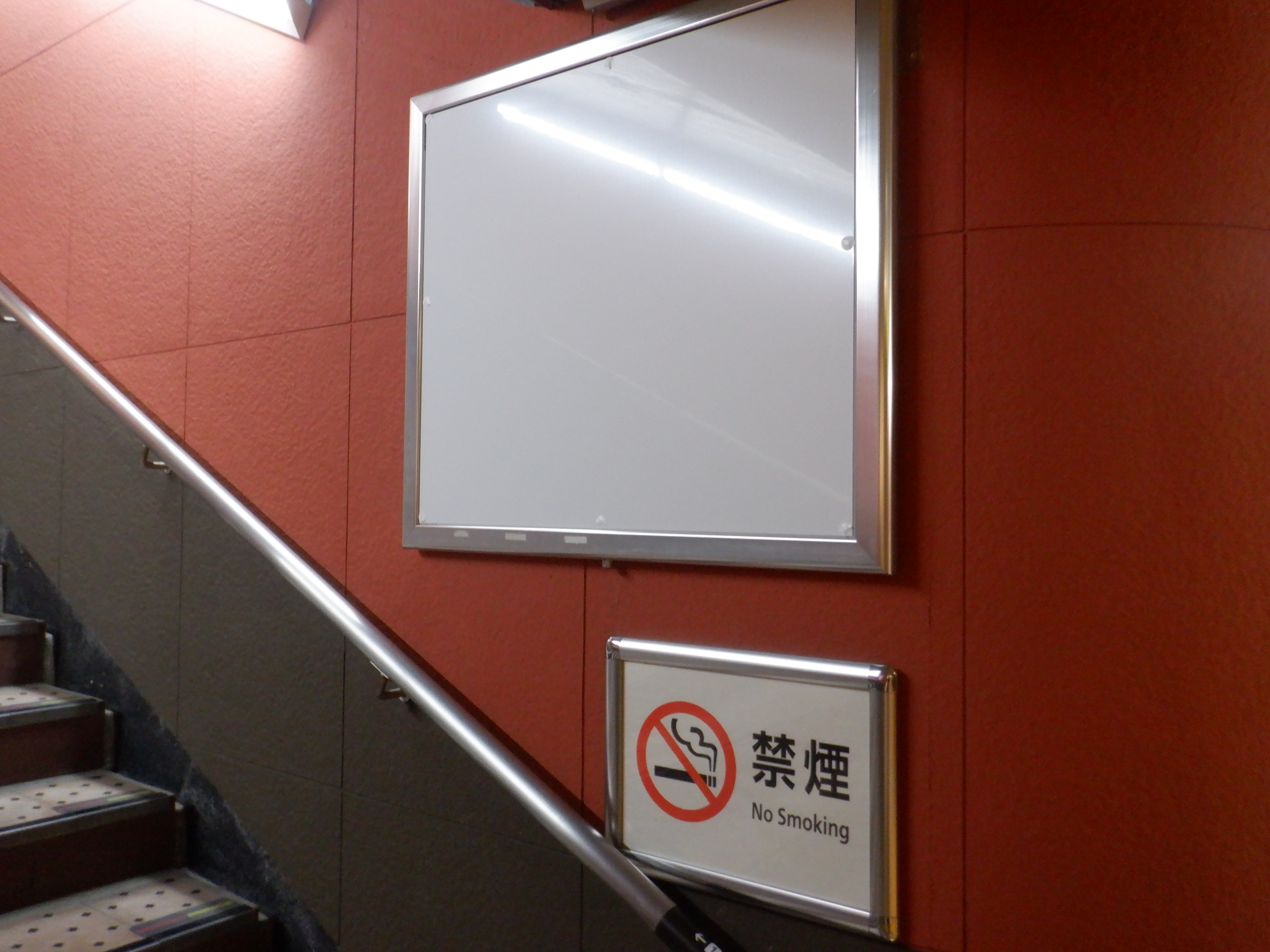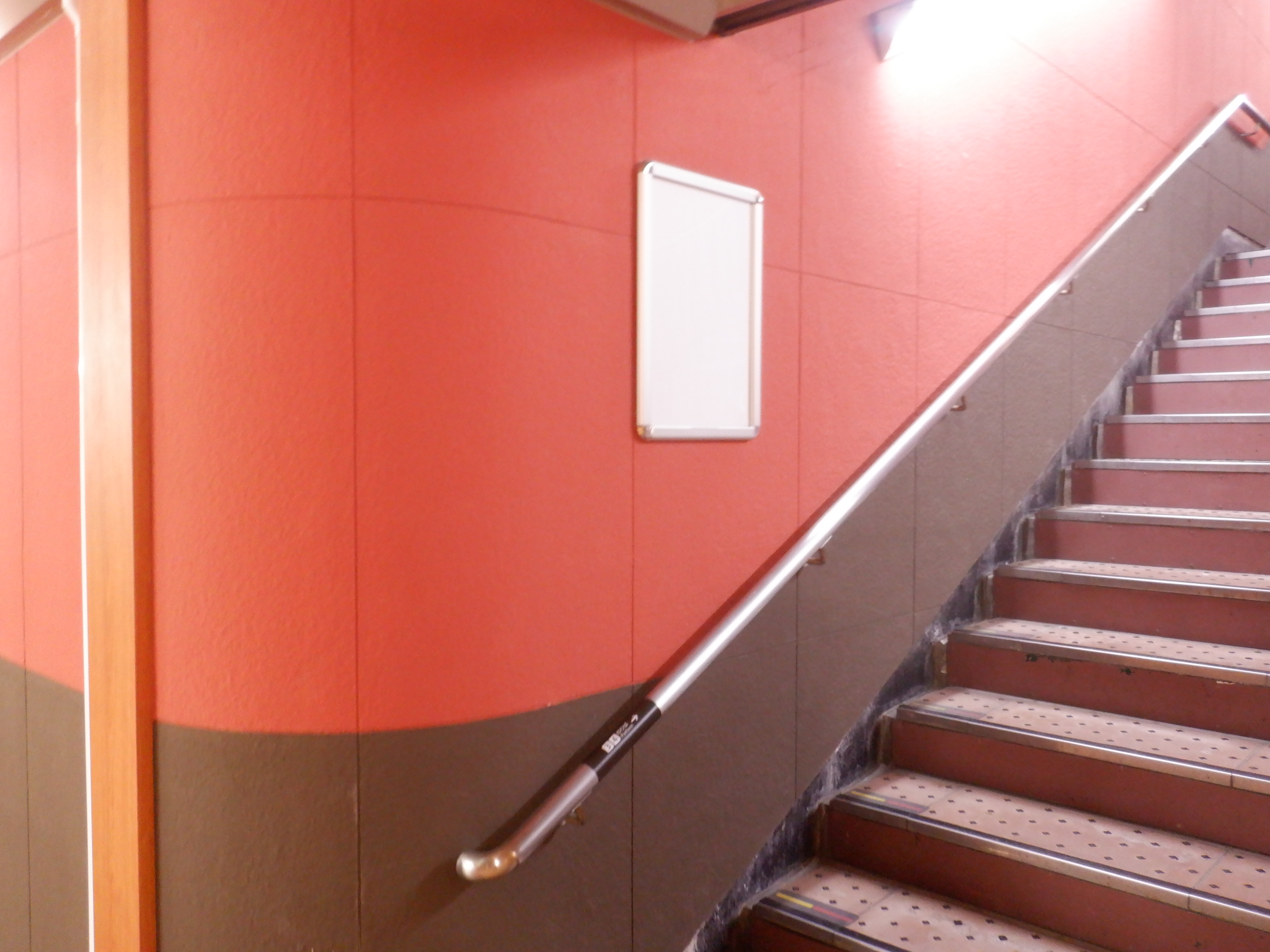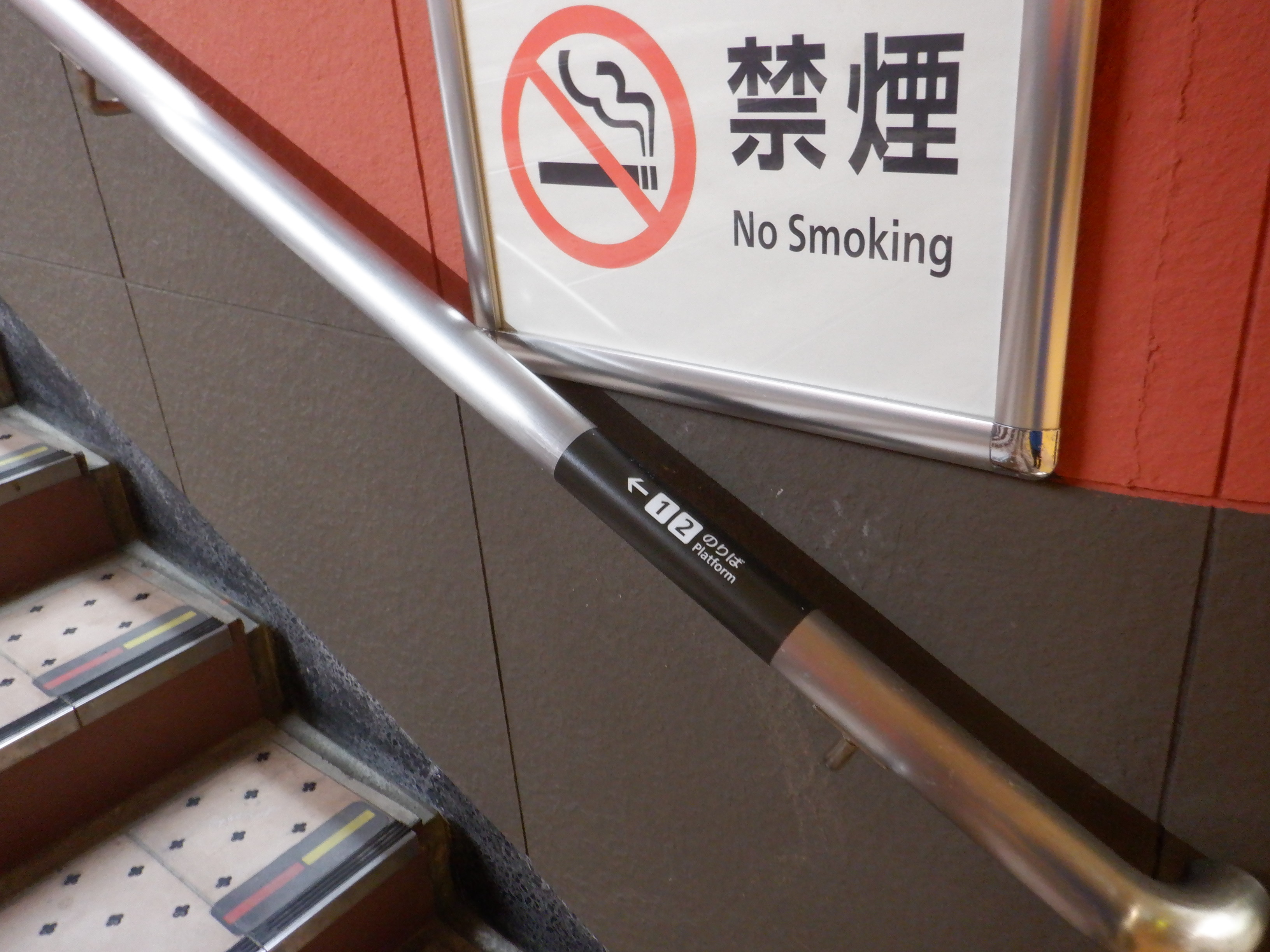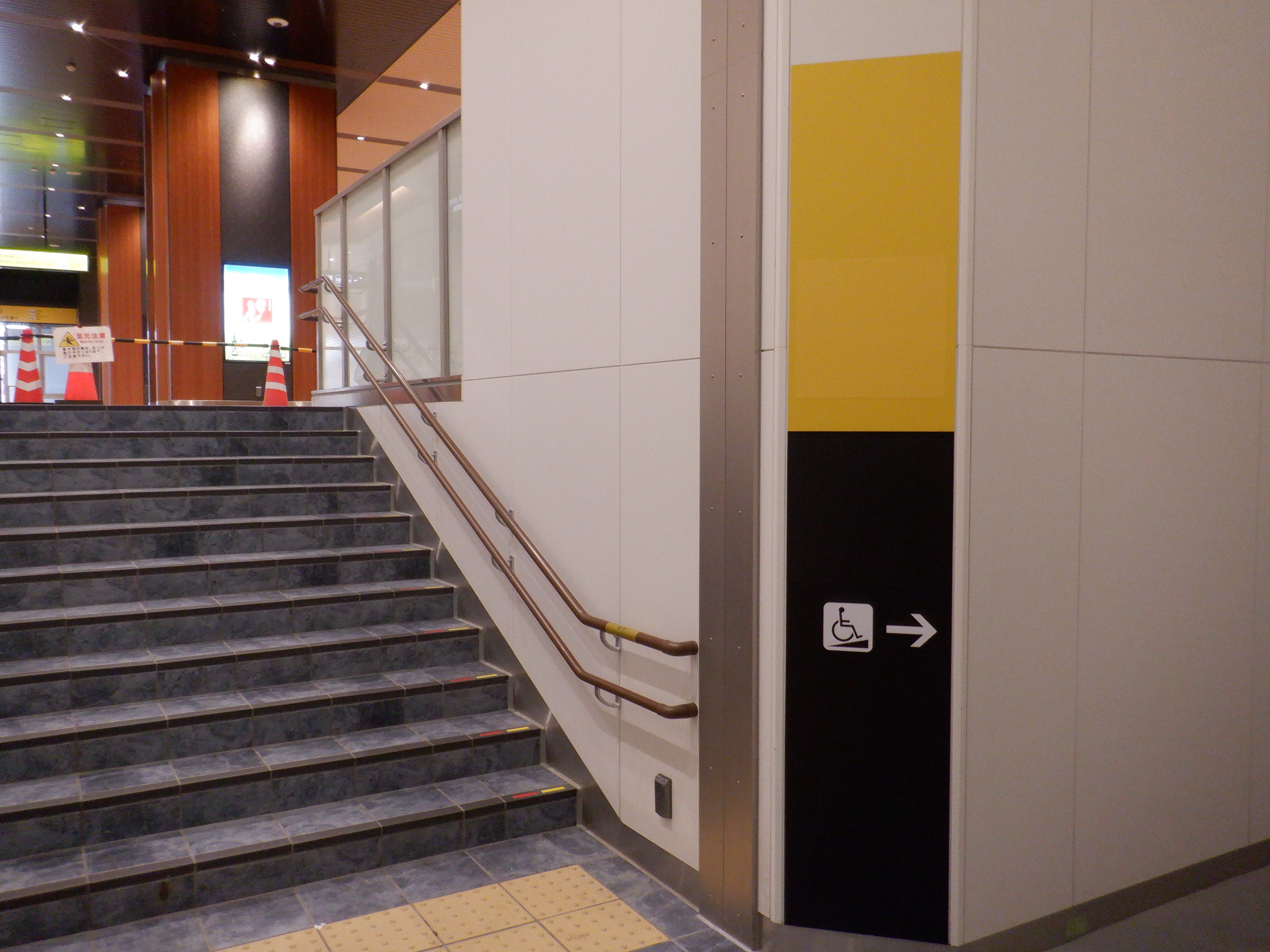 1・2番のりば階段は、特急列車の乗車位置案内が撤去され、また、手すりの案内が新しいものに変わりました。
