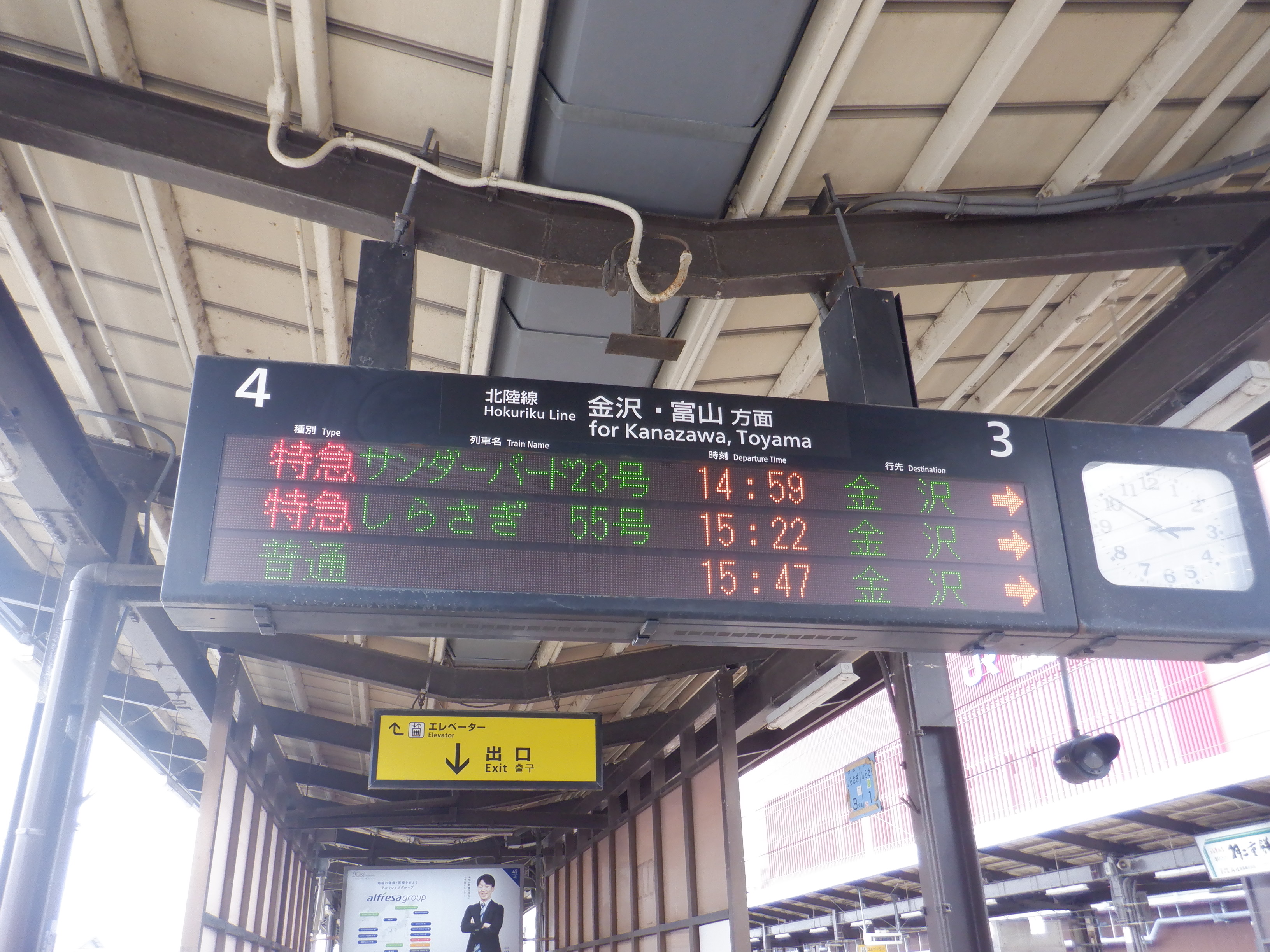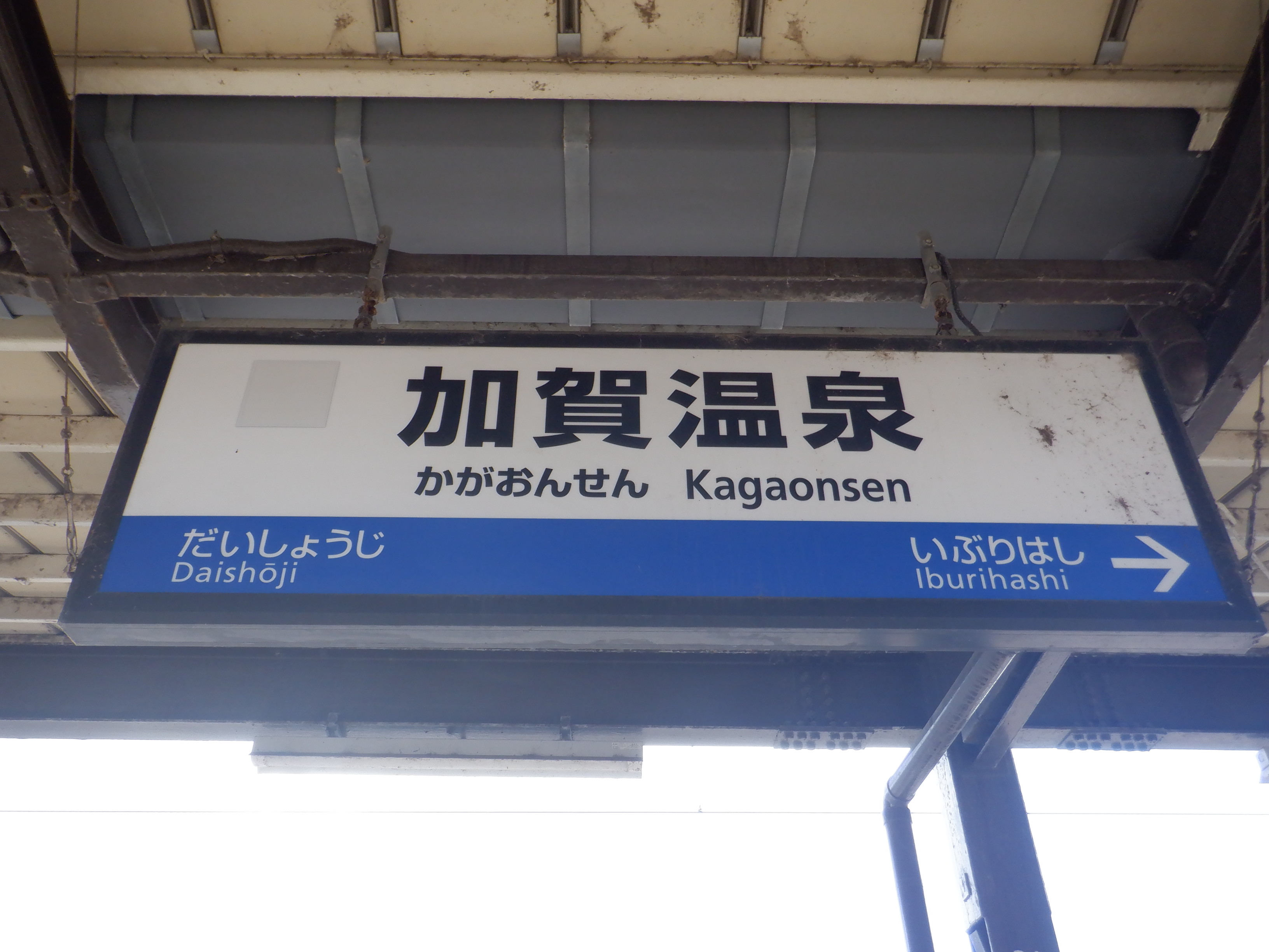 1・2番のりば大聖寺駅側の駅名標2枚は、IRいしかわ鉄道のものになりました。ロゴは上からシールで隠されています。
