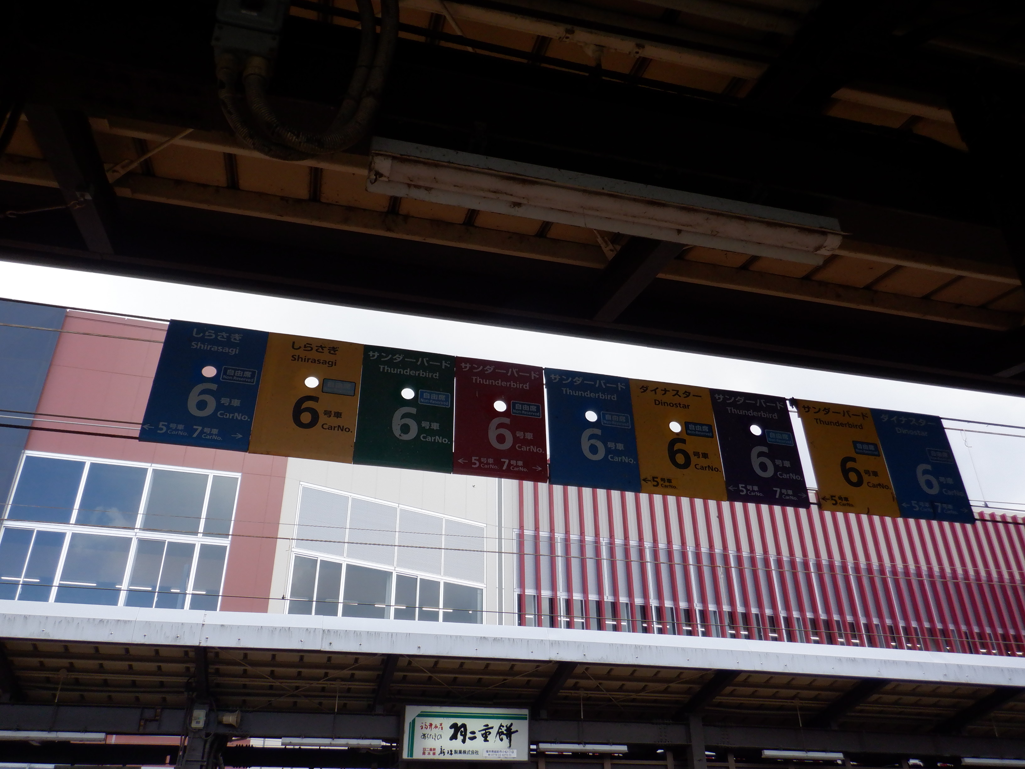 電球が撤去された3番のりばの特急列車の乗車位置案内。