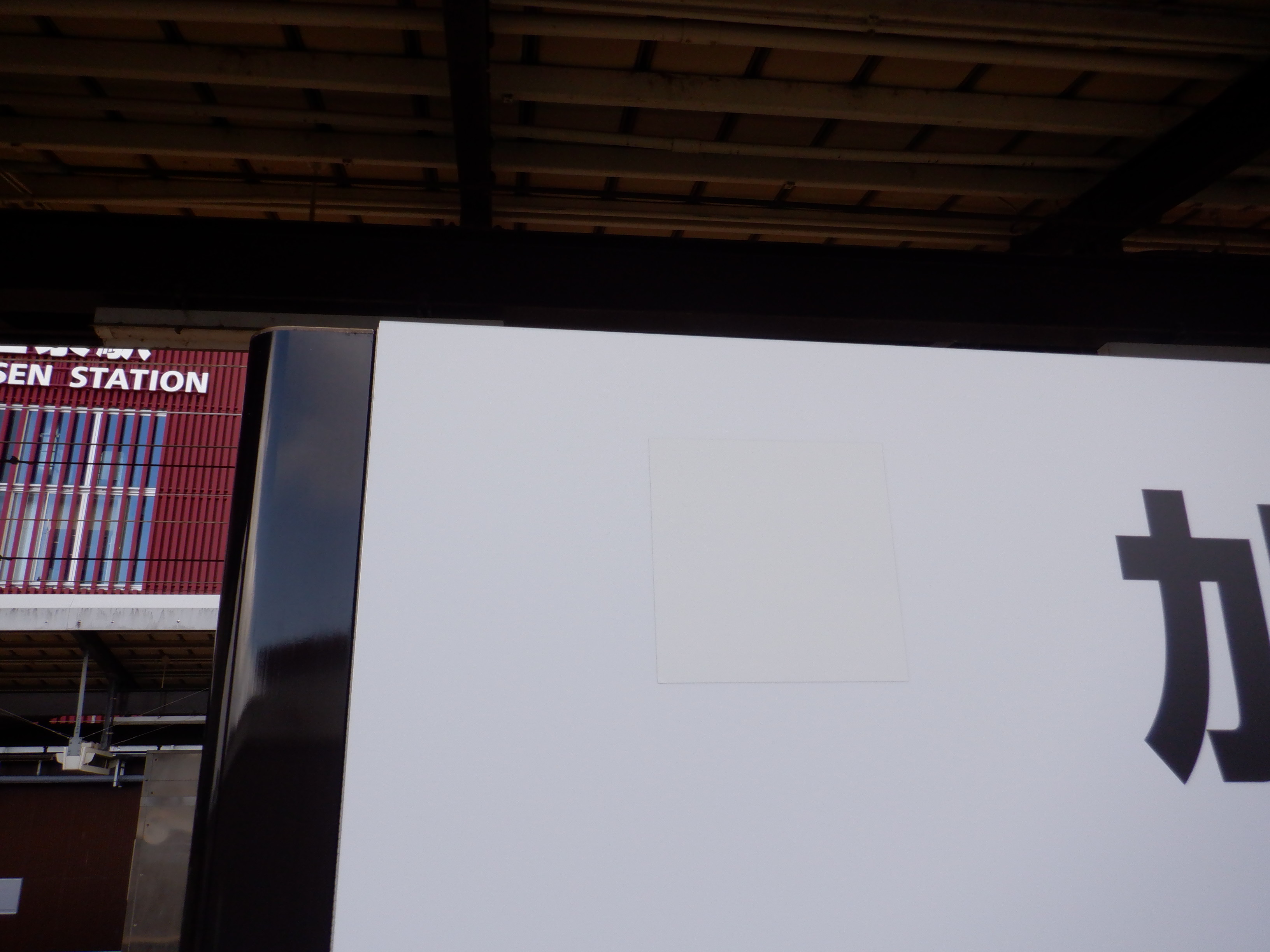 1・2番のりば(3・4番のりばも)動橋駅側2枚の駅名標は、JRマークがシールで隠されました。