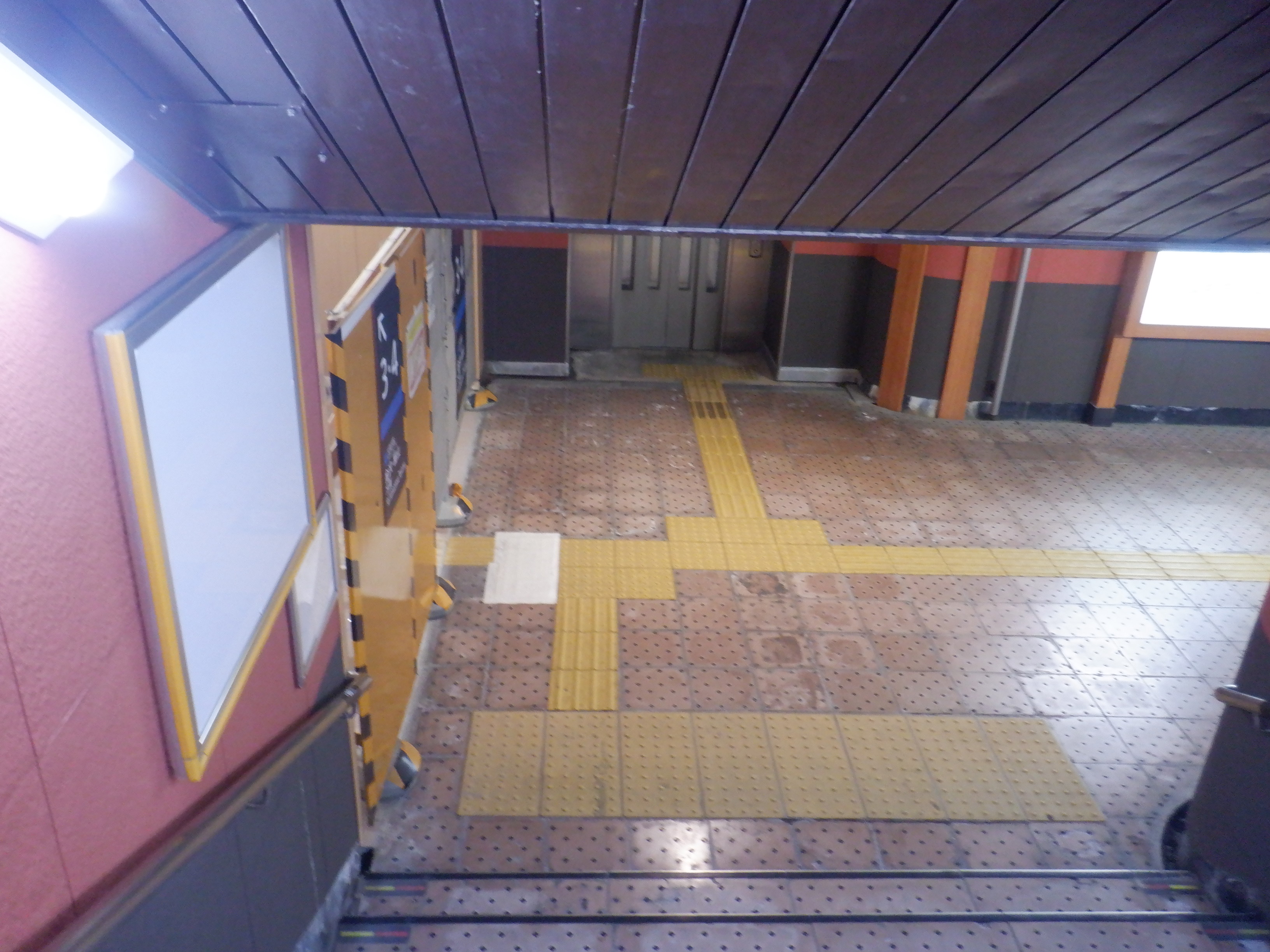 地下道から新幹線のりばコンコースとなるところに上がって行くところ。