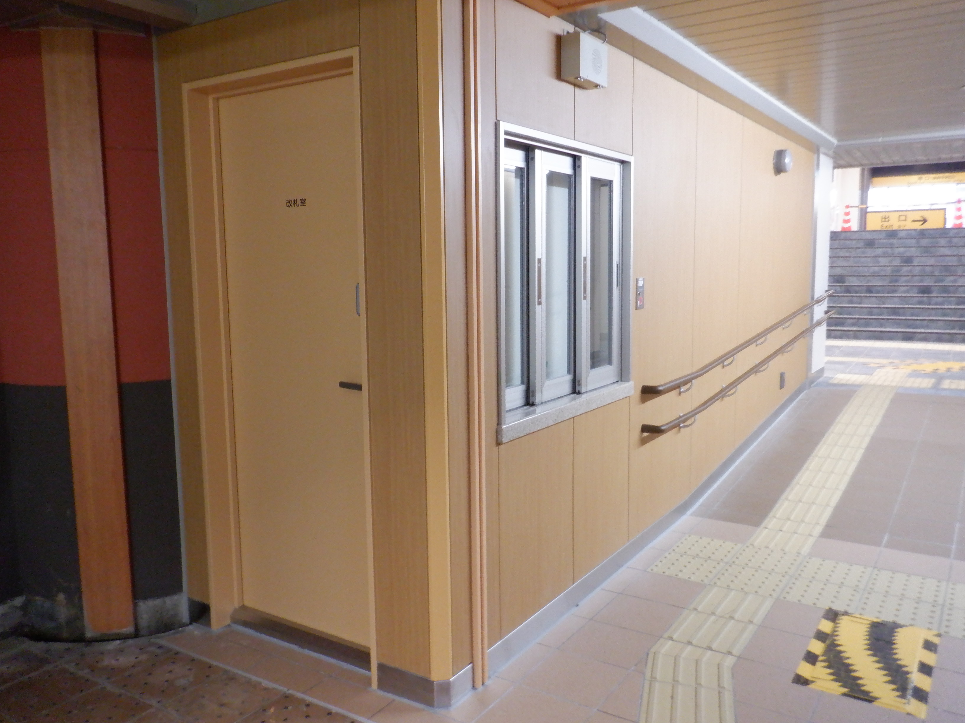 IRいしかわ鉄道の改札口となるところ。ドアには「改札室」と書かれています。