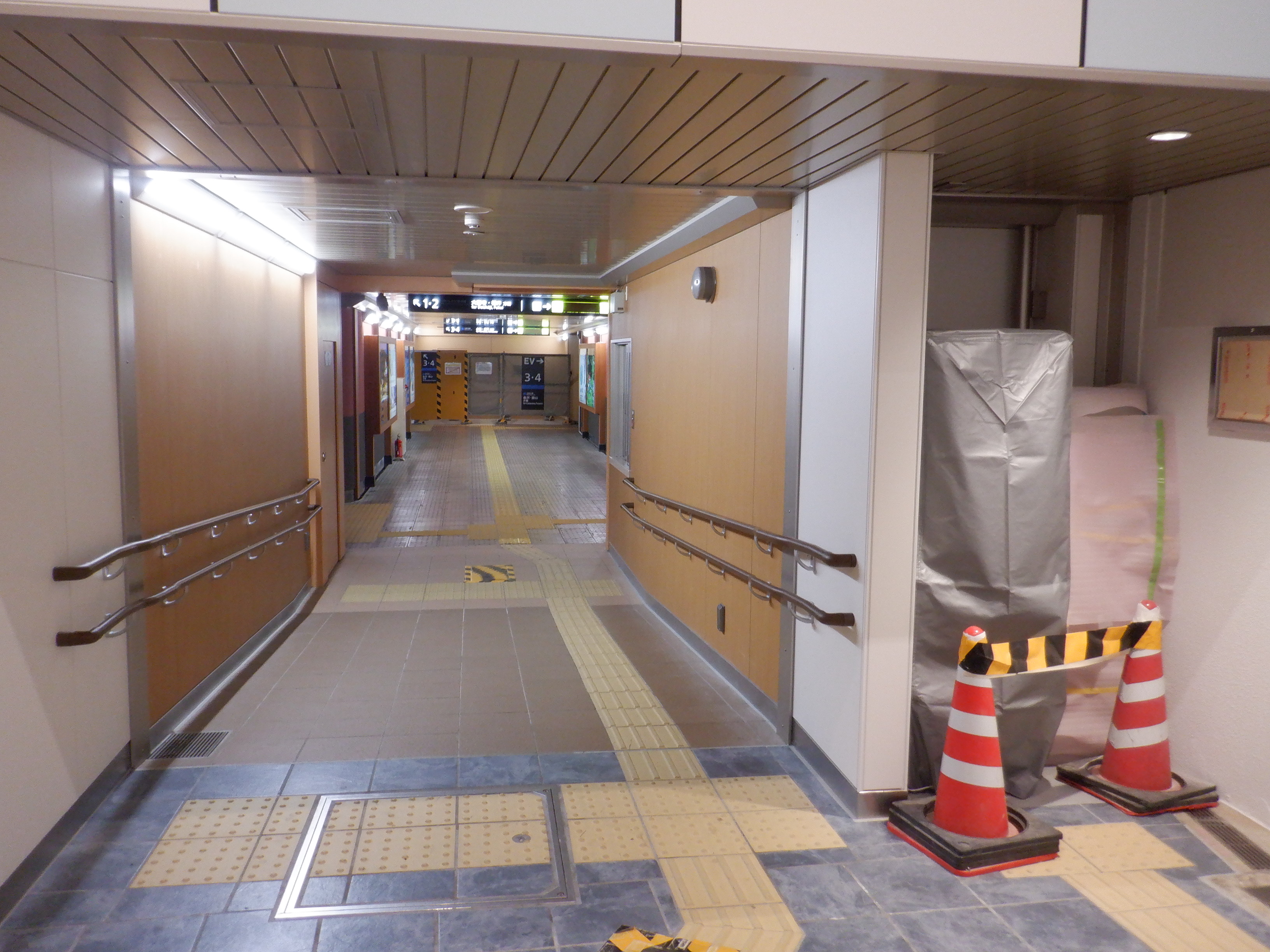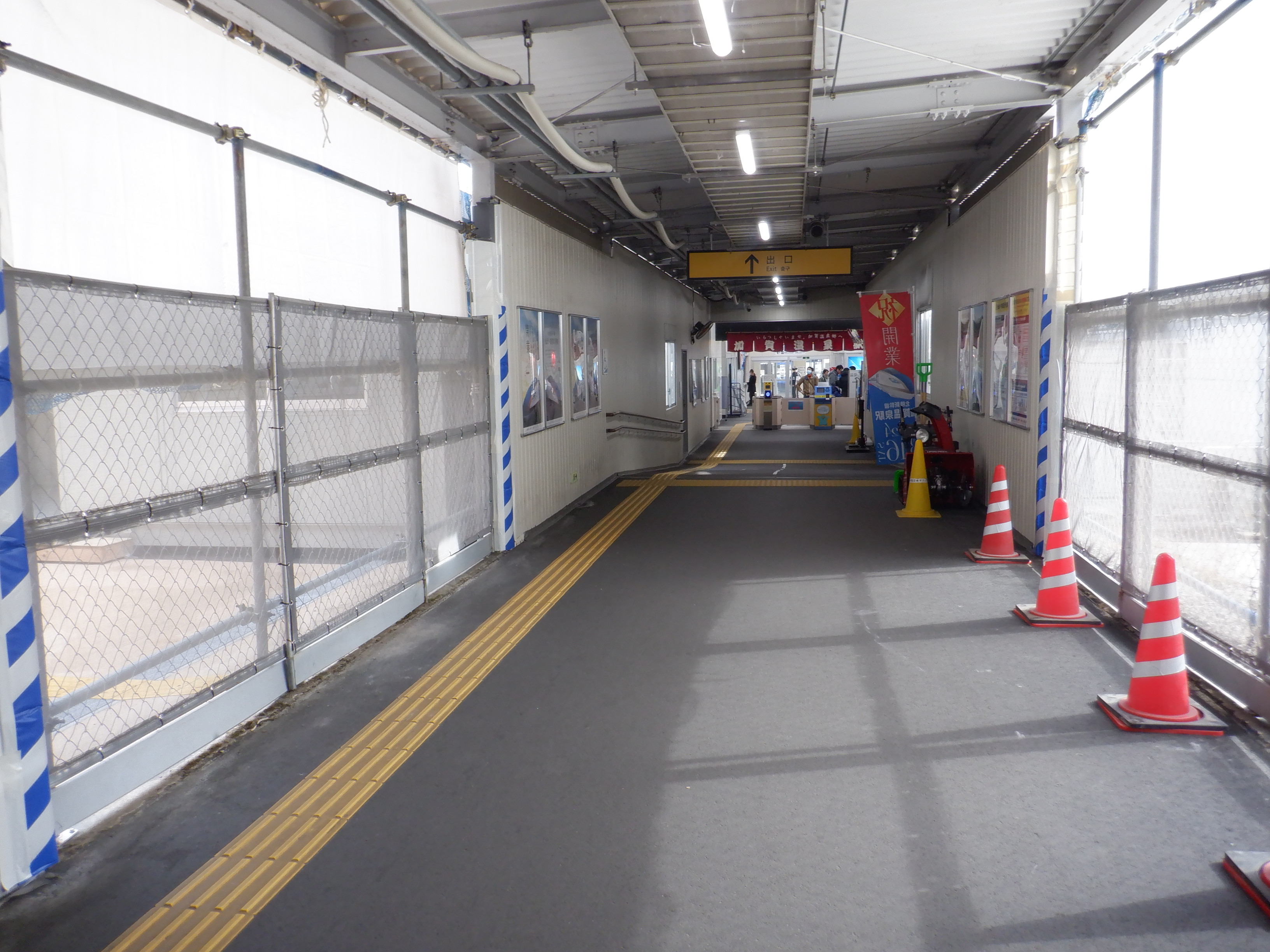 仮設通路となっている新幹線のりばコンコースとなるところ。