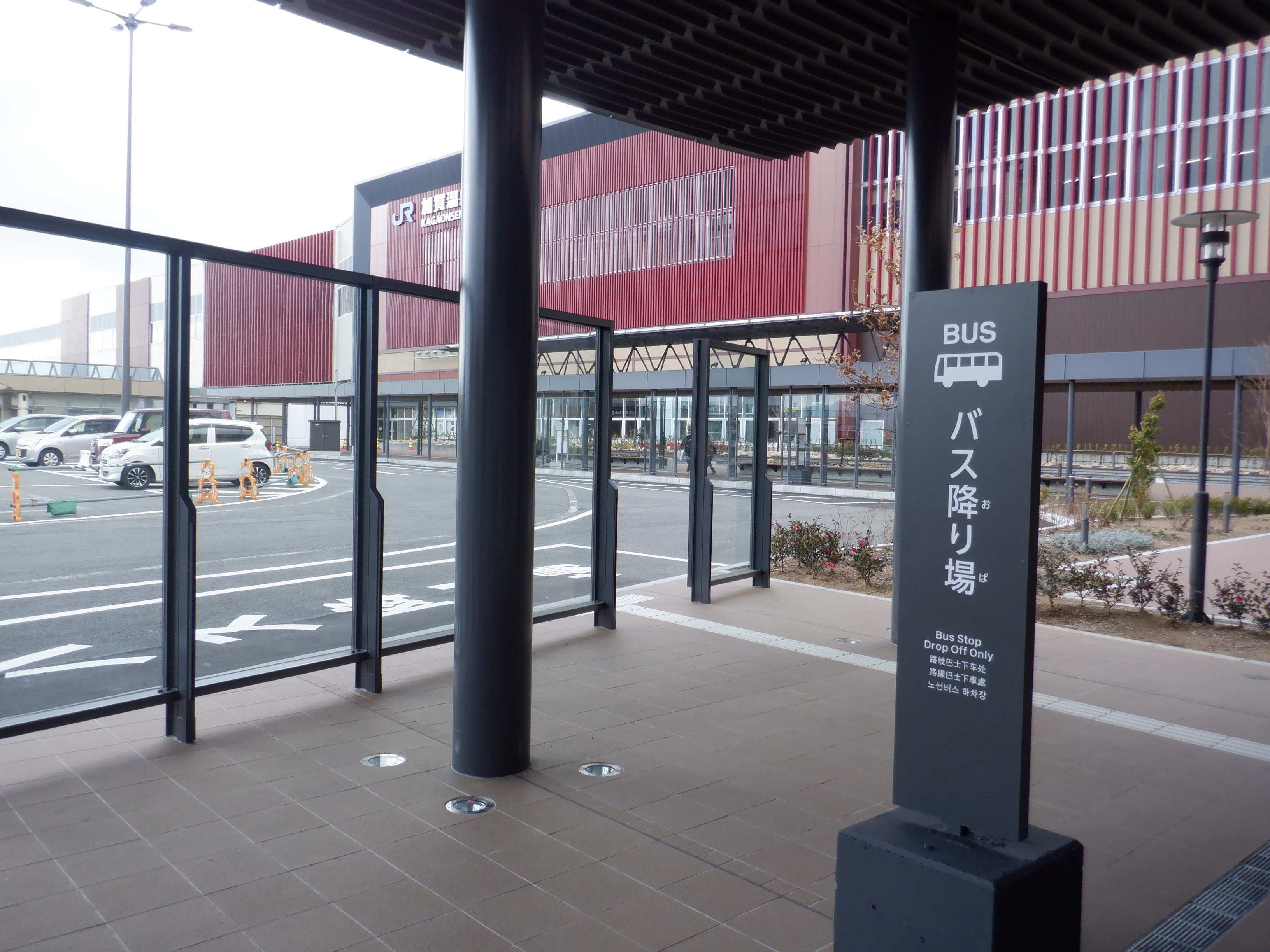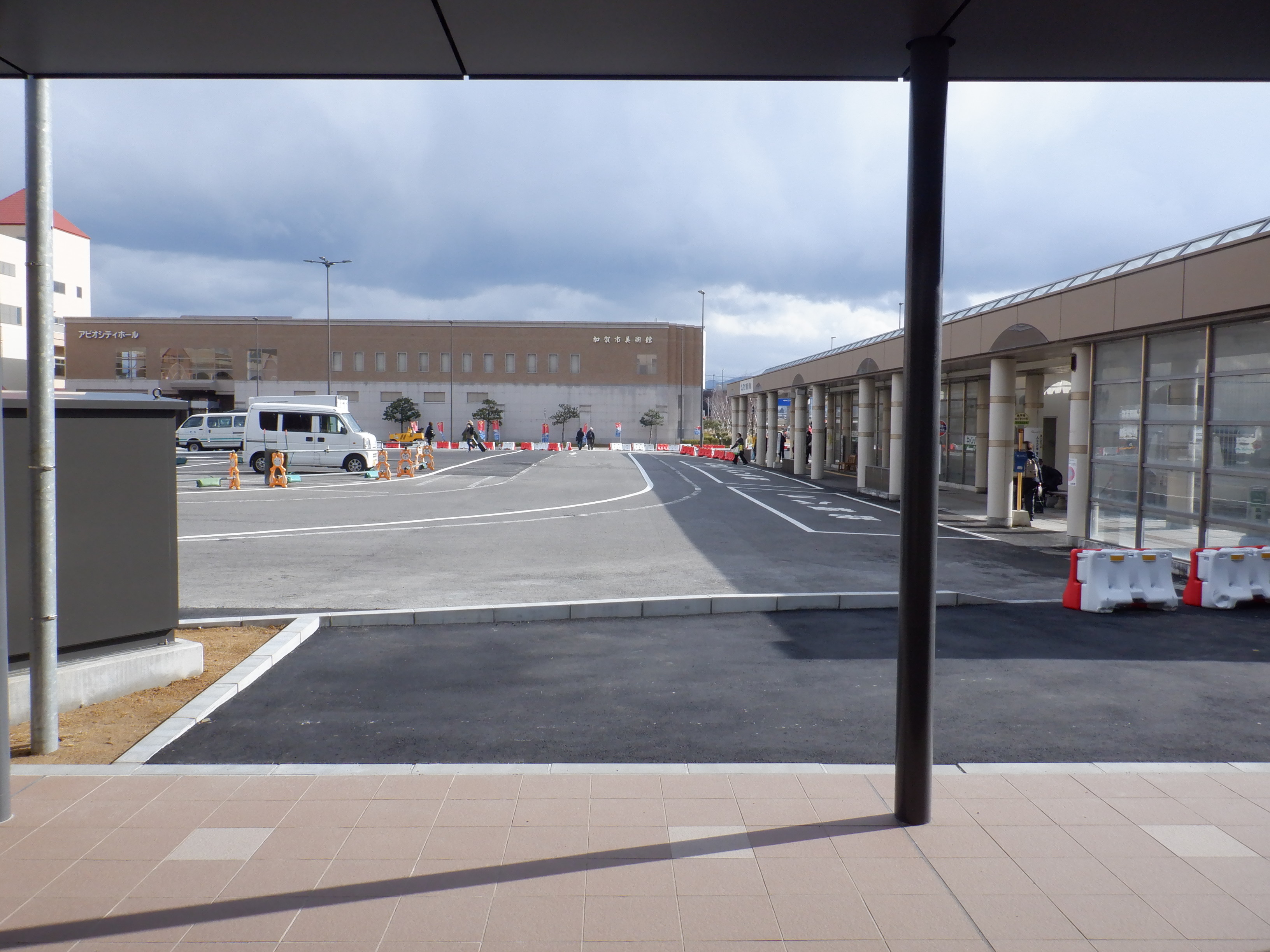 アルプラザとアビオシティホールの前、旅館送迎バス乗降場。こちらはこの時点で供用中のようです。