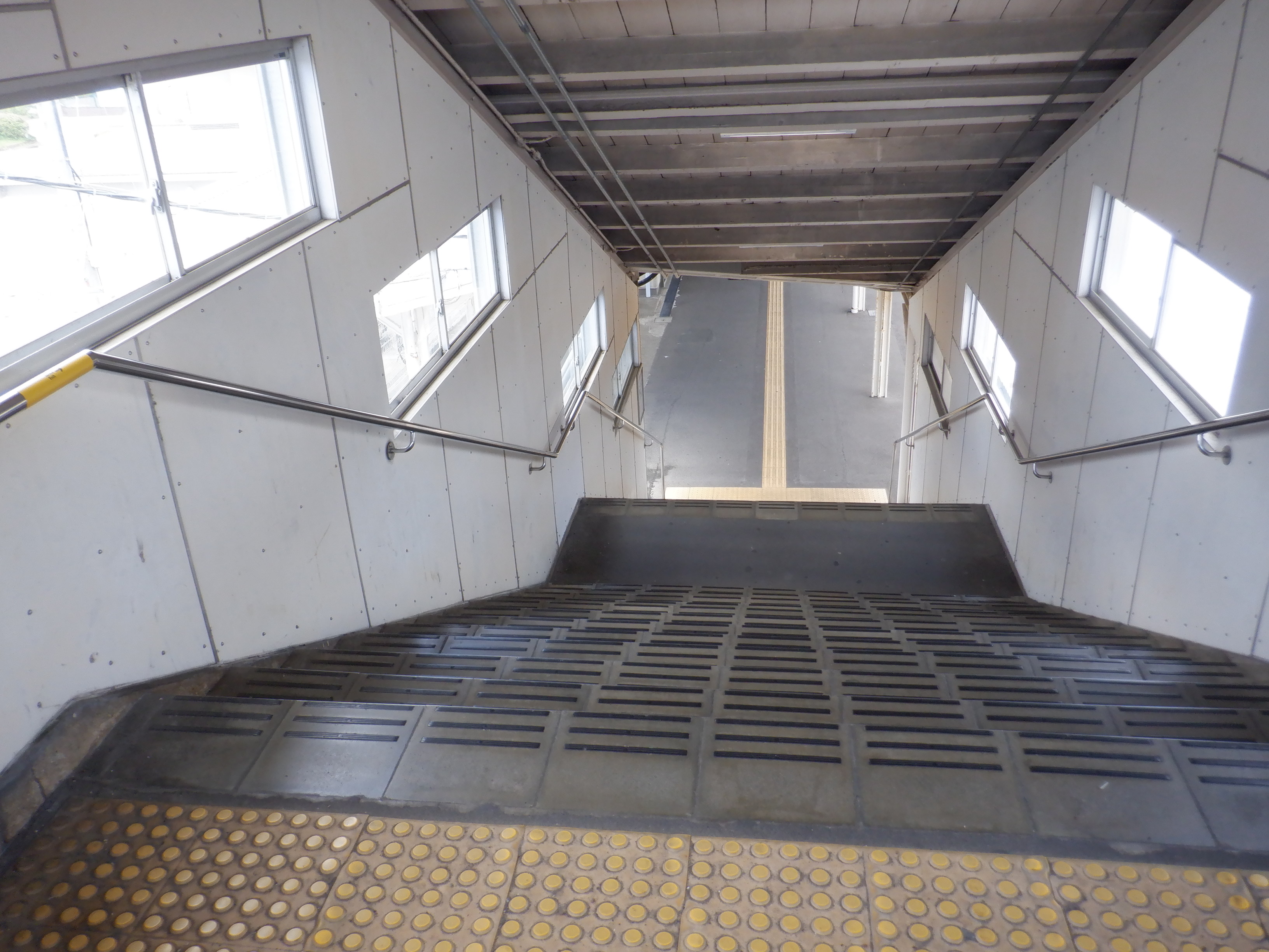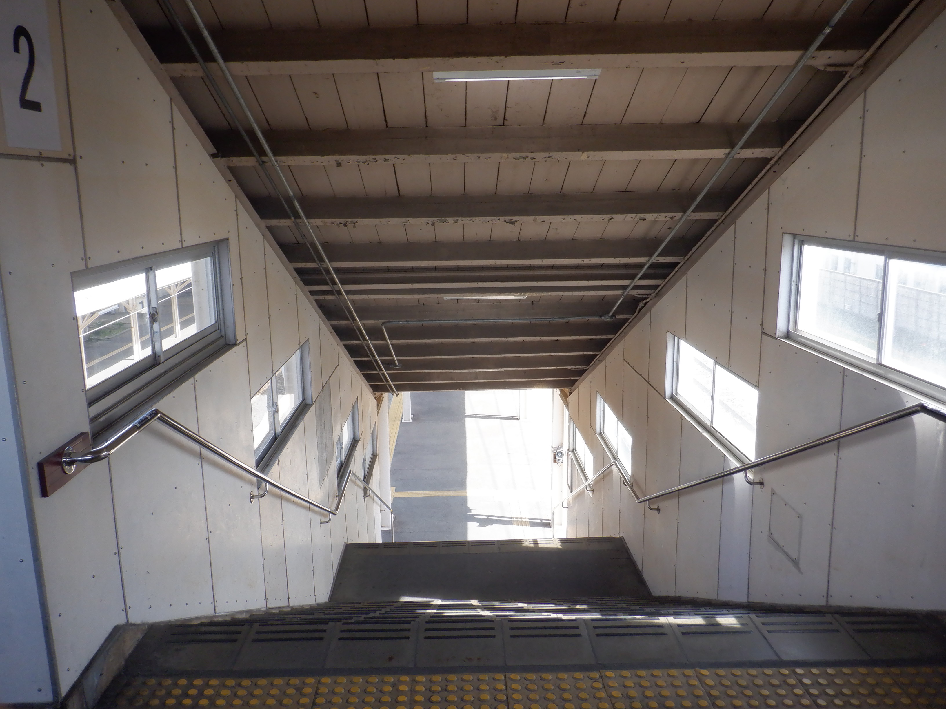 2・3番のりば跨線橋階段と階段の案内看板両面。