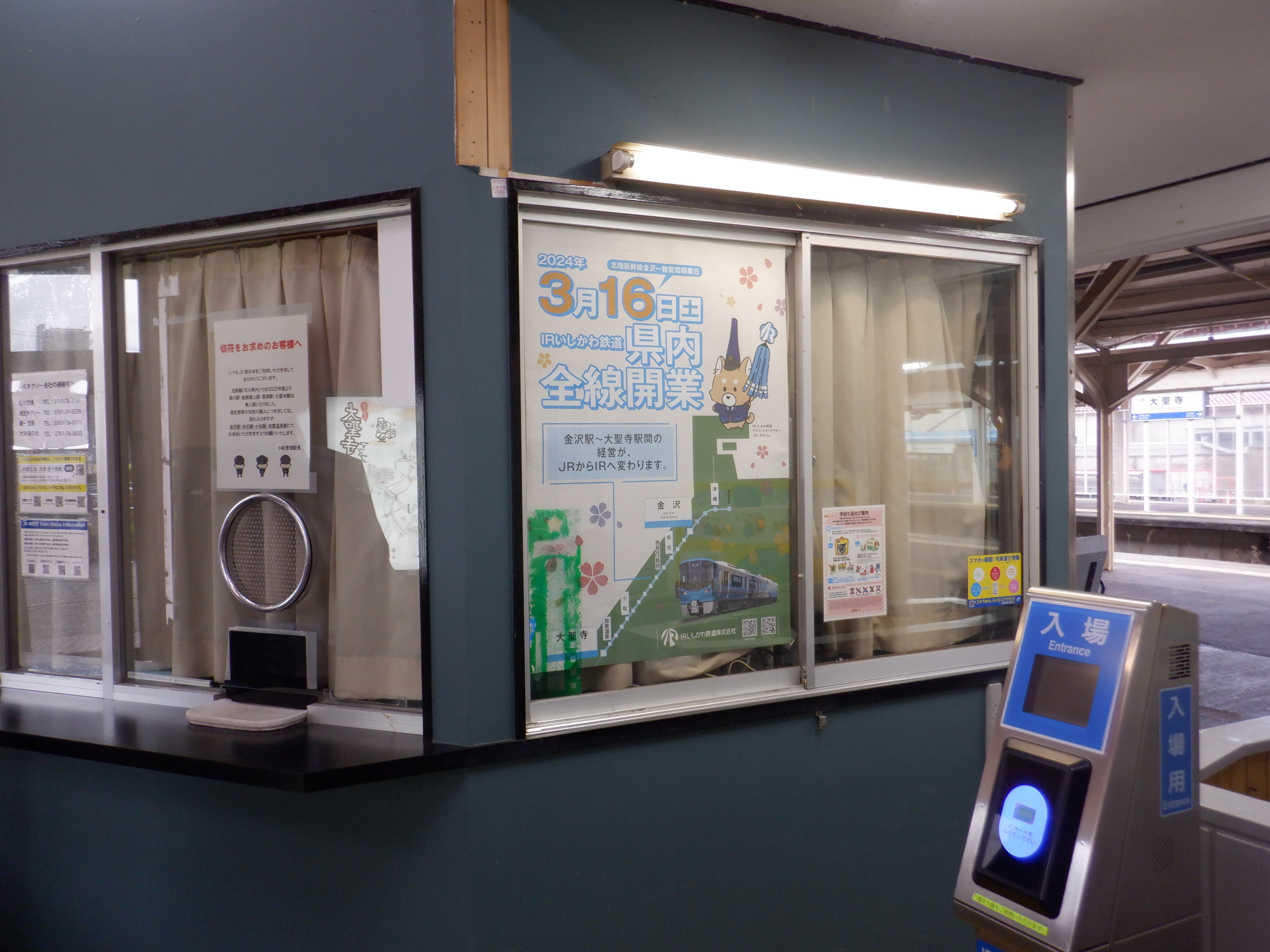 改札口のところにはIRいしかわ鉄道県内全線開業のポスターが貼られていました。