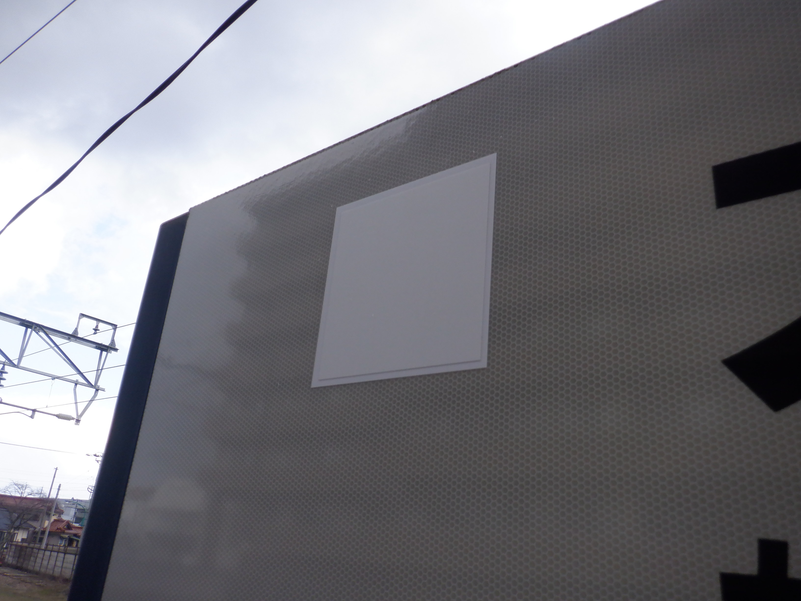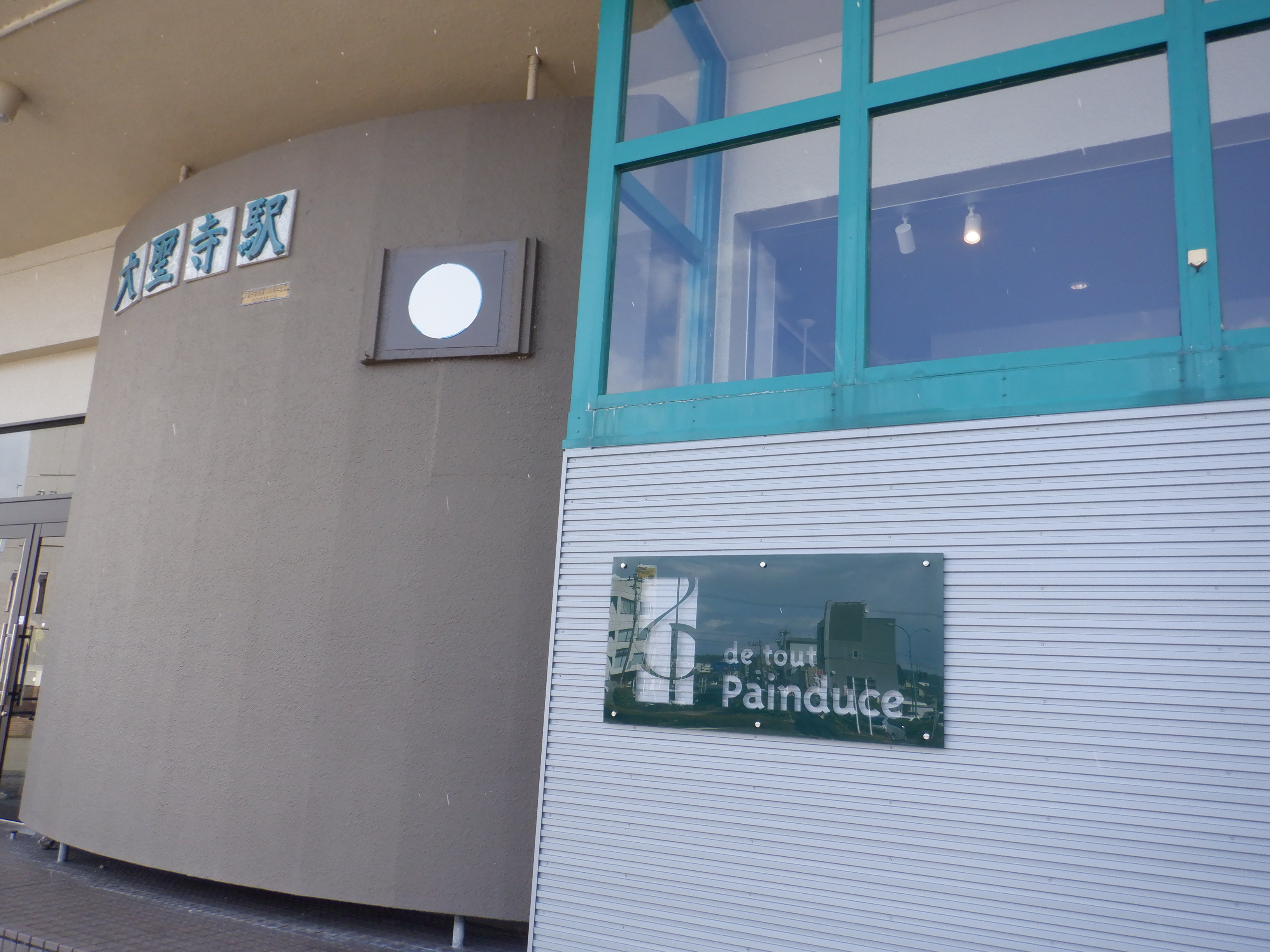かつて時計があって、IRいしかわ鉄道のロゴが設置されるところ。