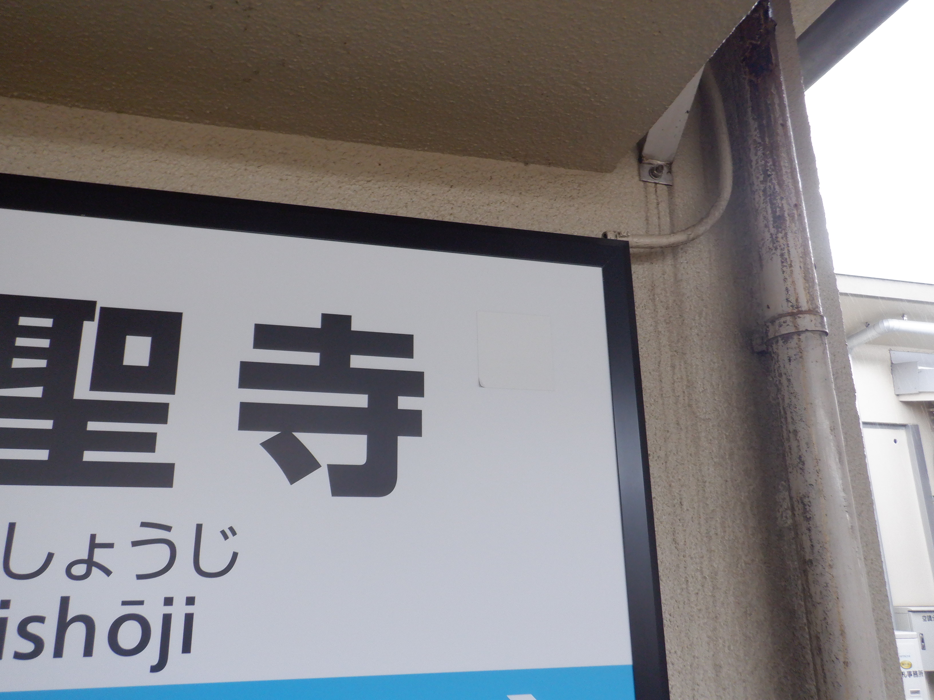 駅舎に付いた駅名標。