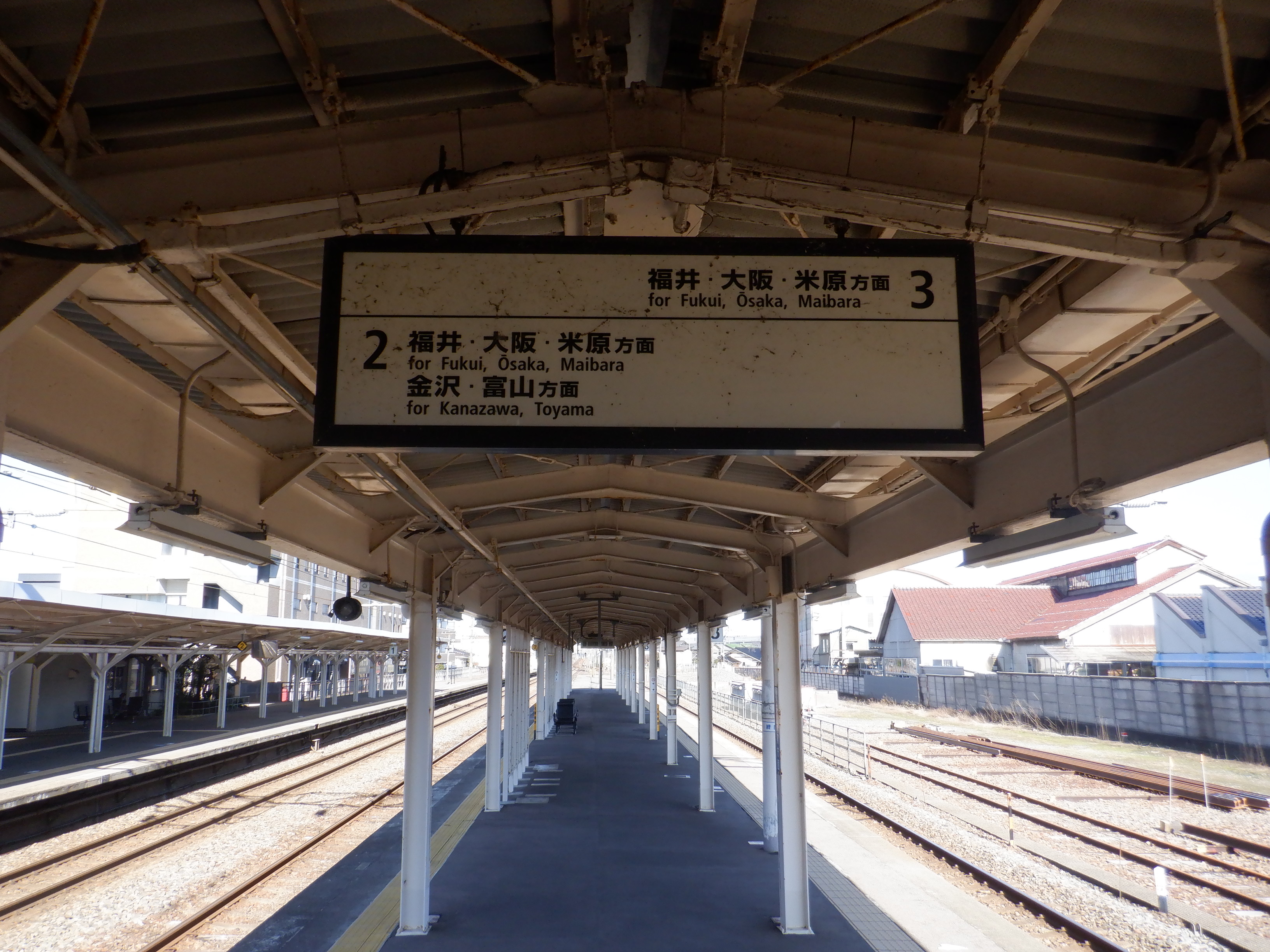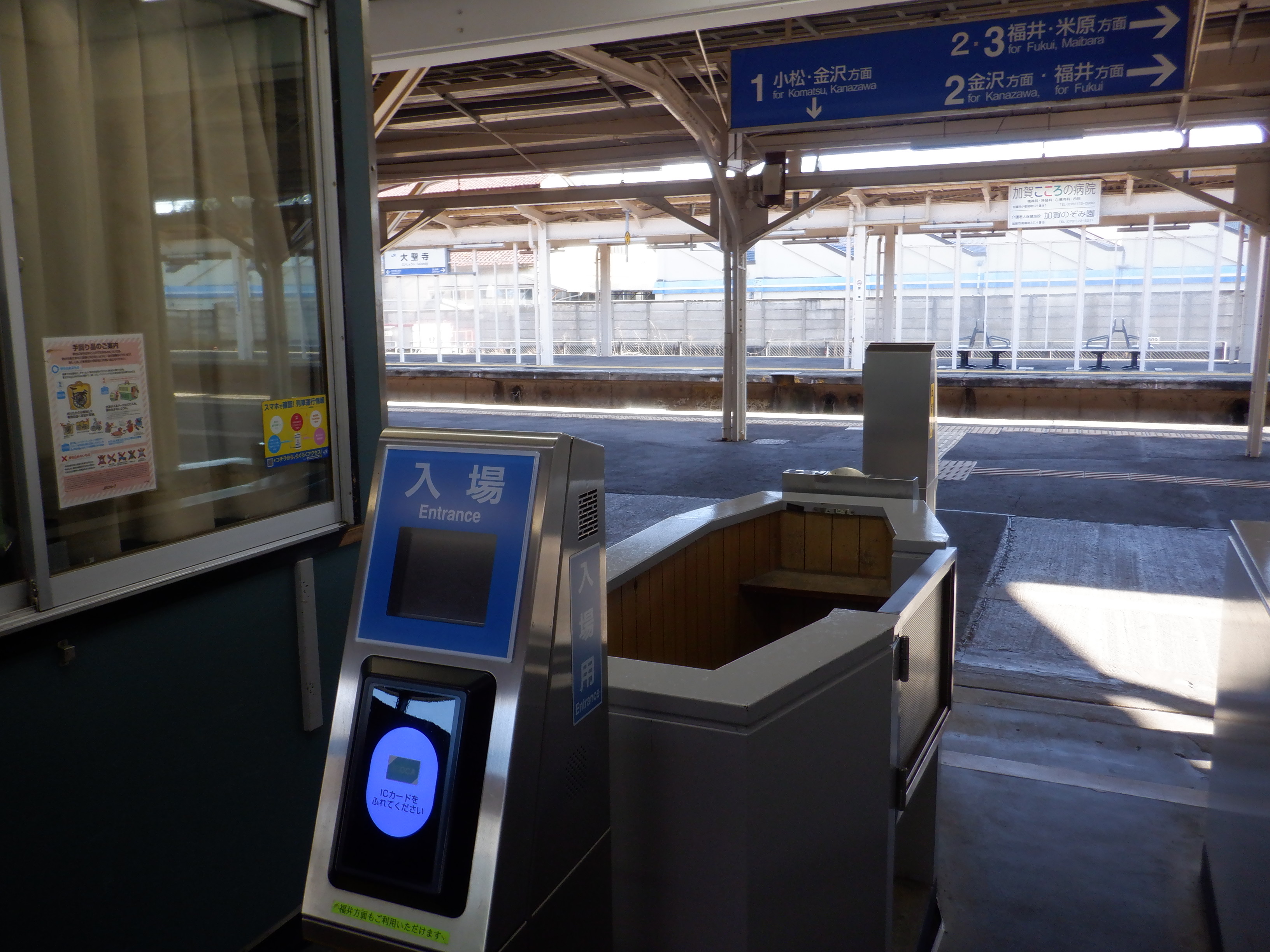 1番のりば改札口から加賀温泉駅側の上屋付近。