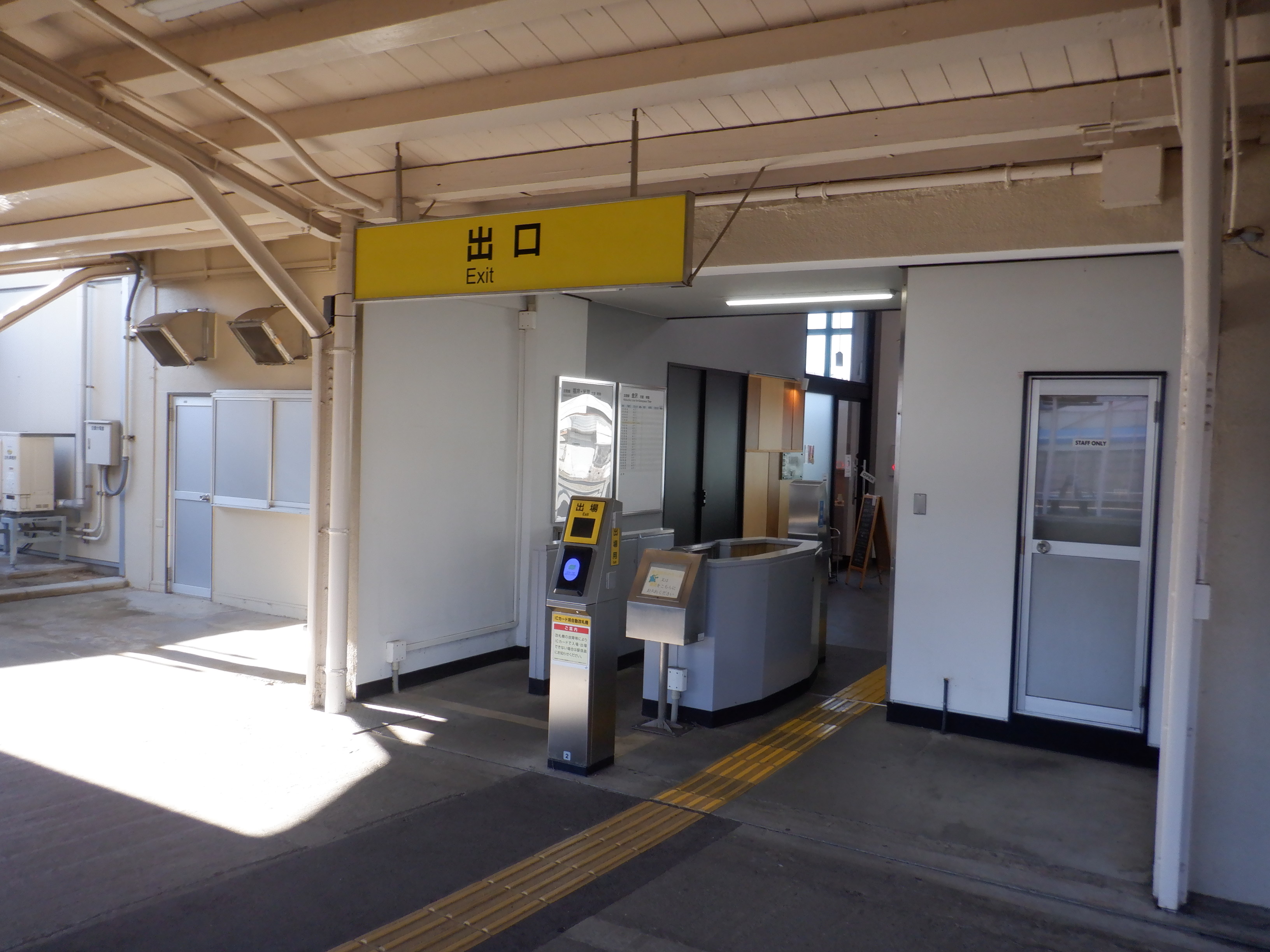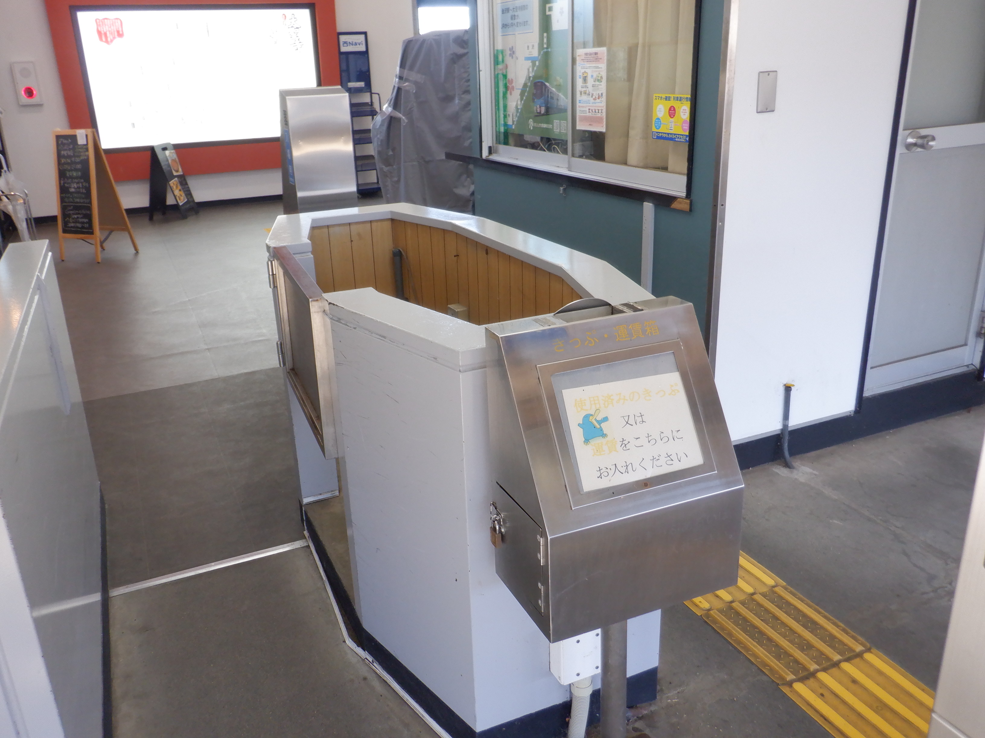 改札口付近の様子。移管後に発車標として使用されるモニターが設置されていました。