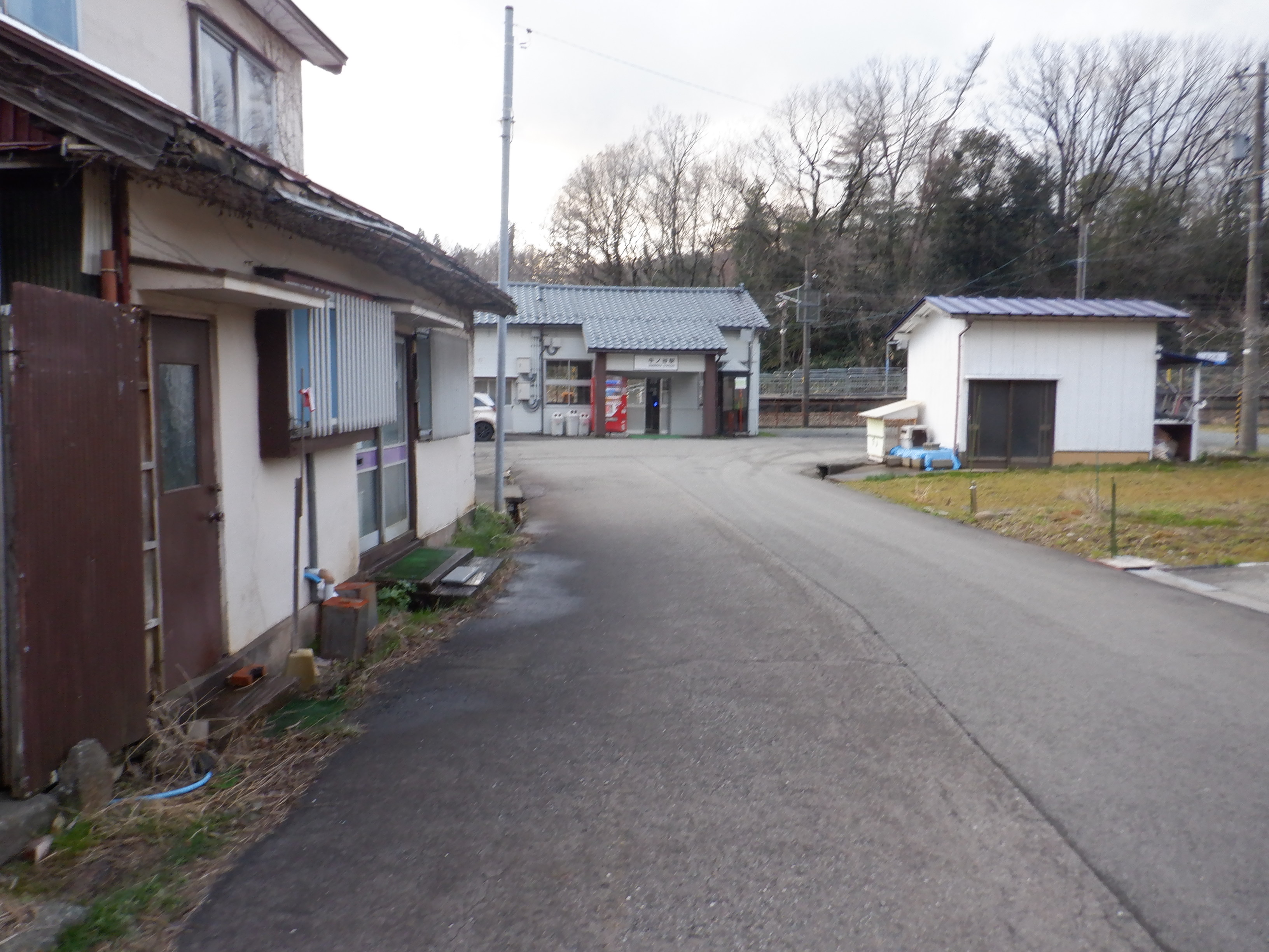 駅前から線路沿いに進み、細呂木駅からの道に突き当たったところで集落へ進みます。
