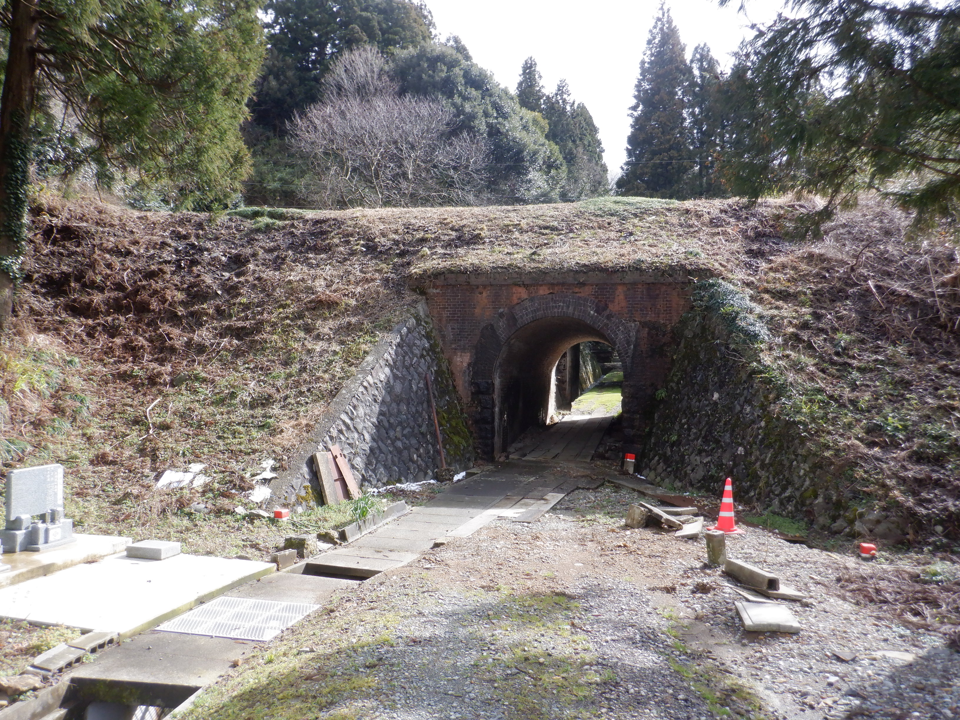 細呂木駅から牛ノ谷駅まで歩いて行く間にあった旧線部分のレンガ積み。