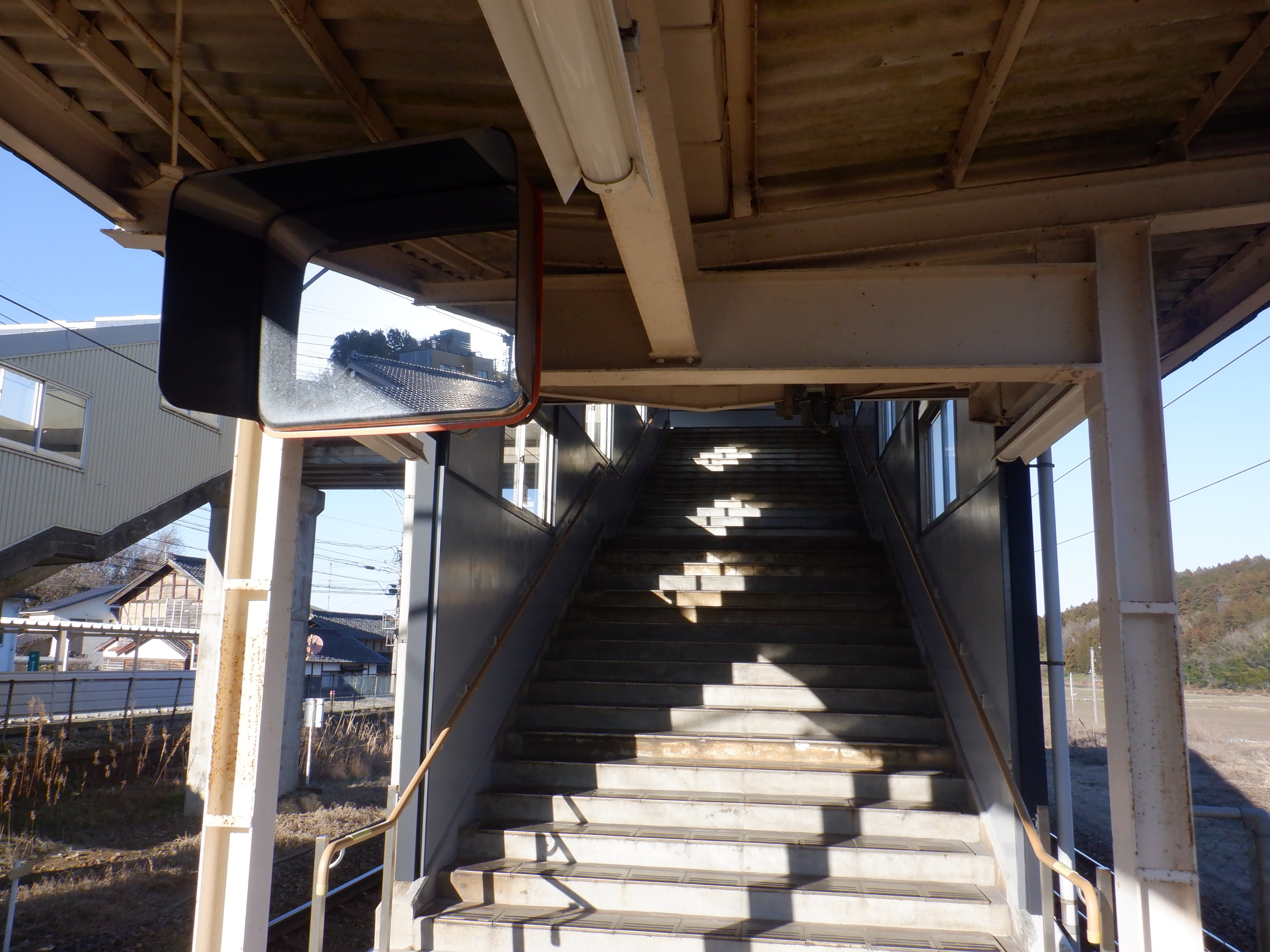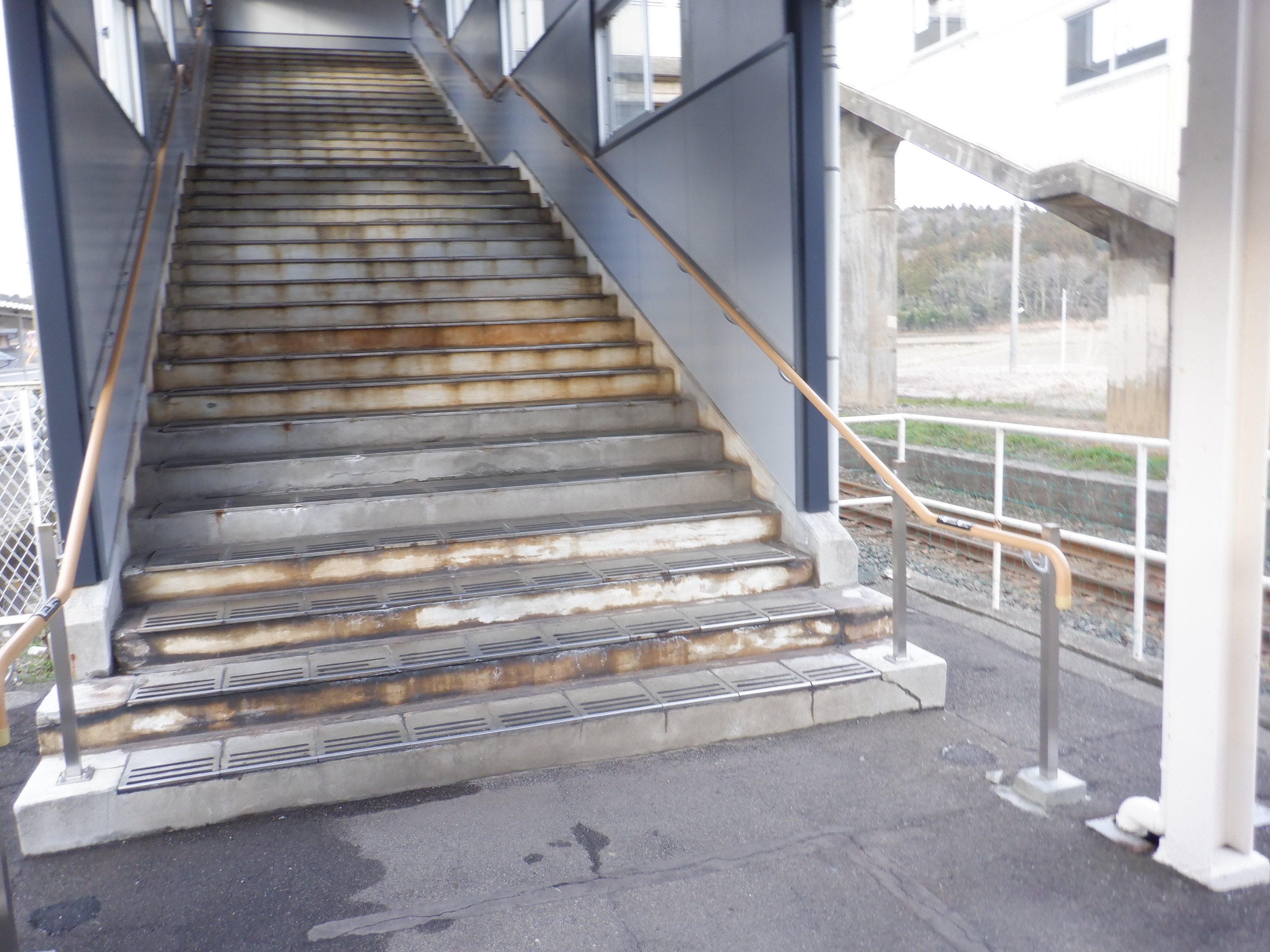 駅舎側の跨線橋階段。