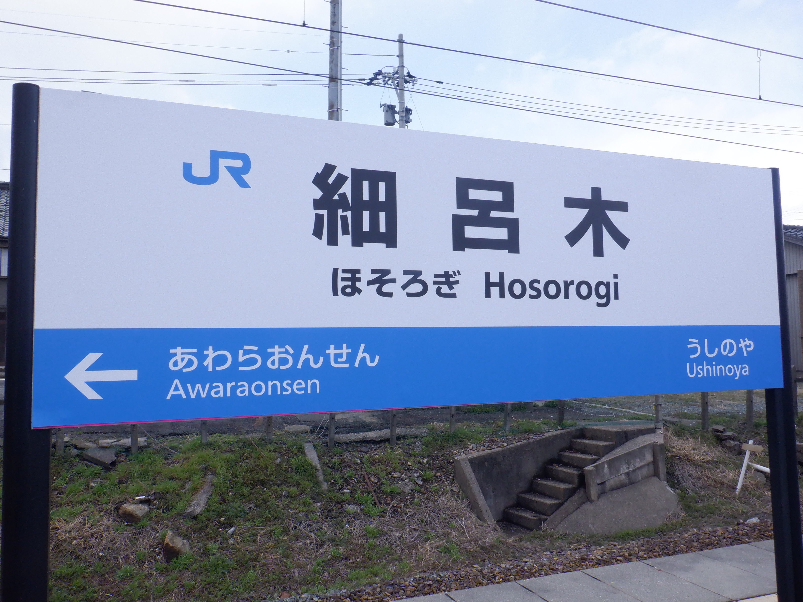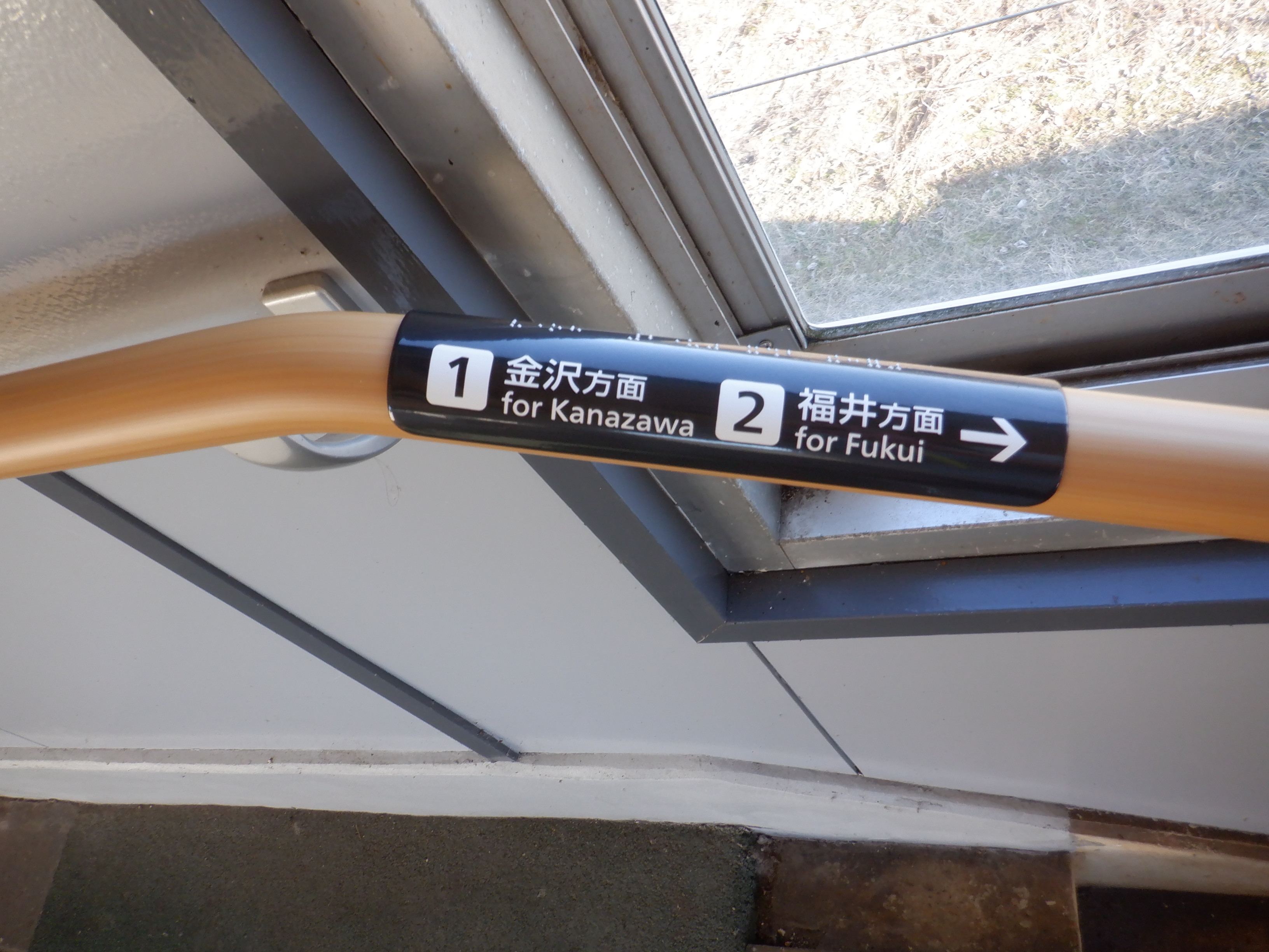 ハピラインふくいの駅名標が設置され、その上にJRの駅名標が貼られていました。