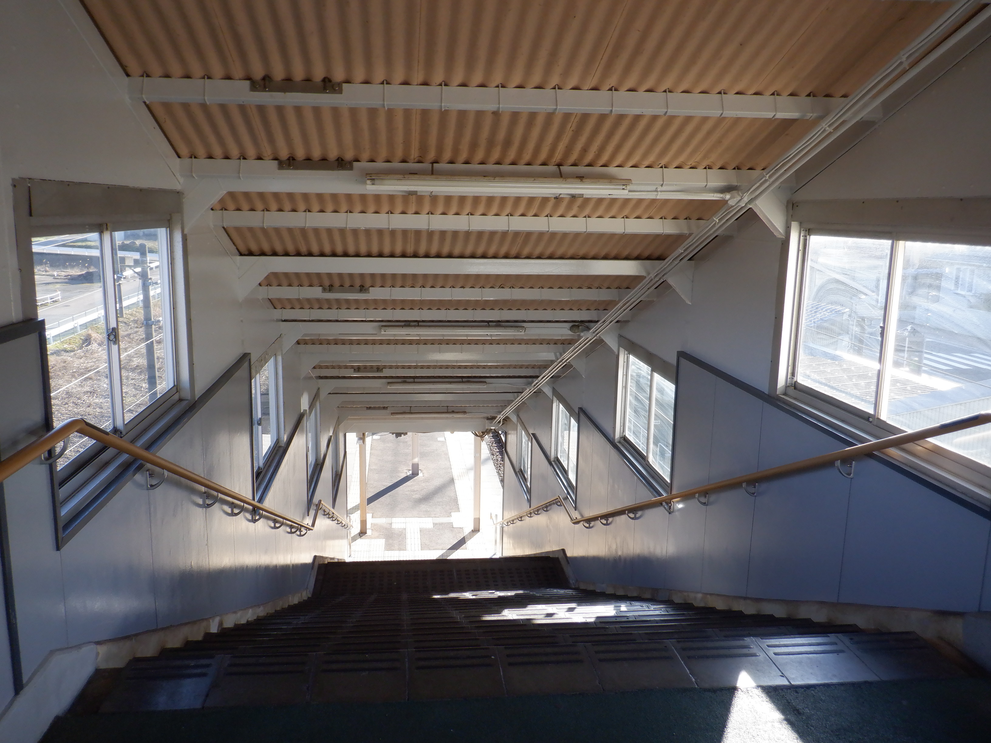 駅舎側から見たホーム側の跨線橋。
