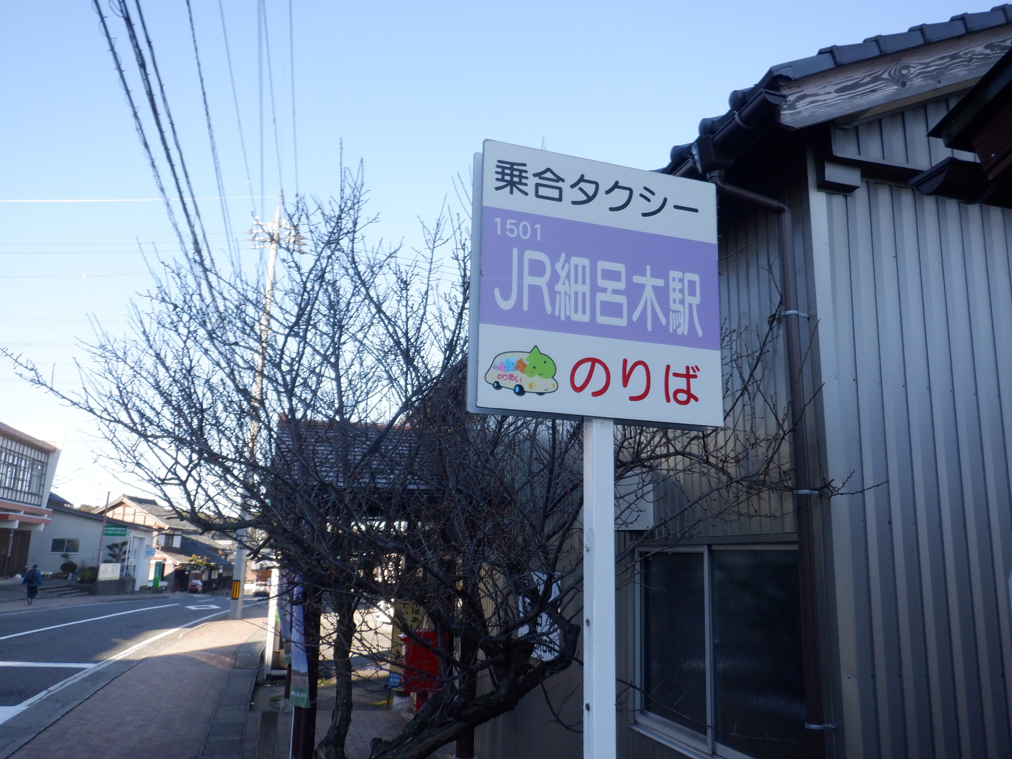 第一種駅名標と資産標、乗合タクシーのりば。