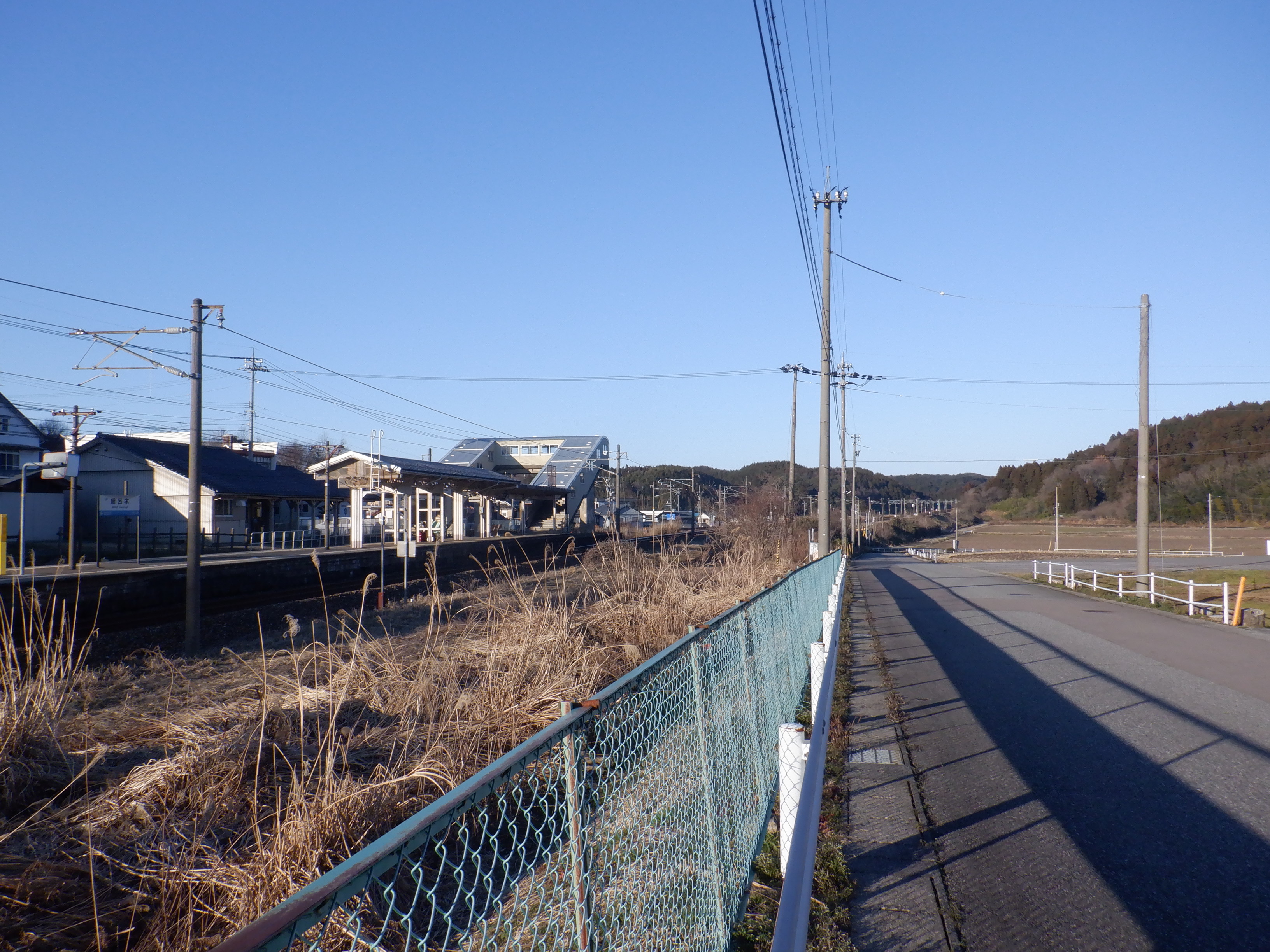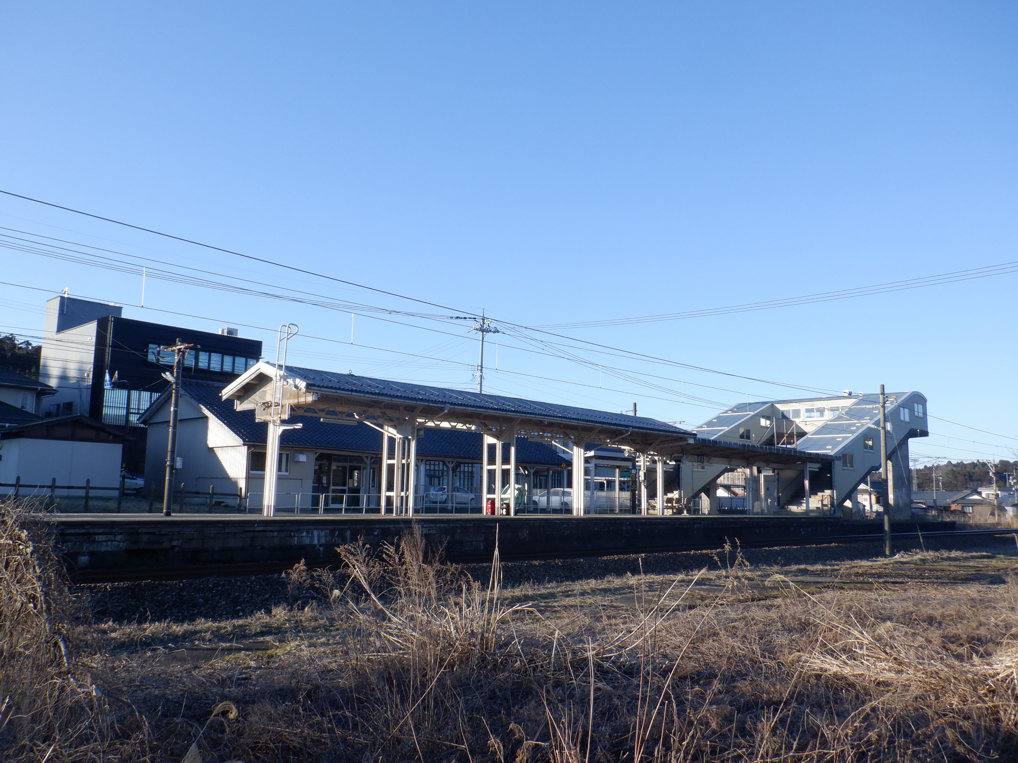 跨線橋から見た駅舎の反対側。
