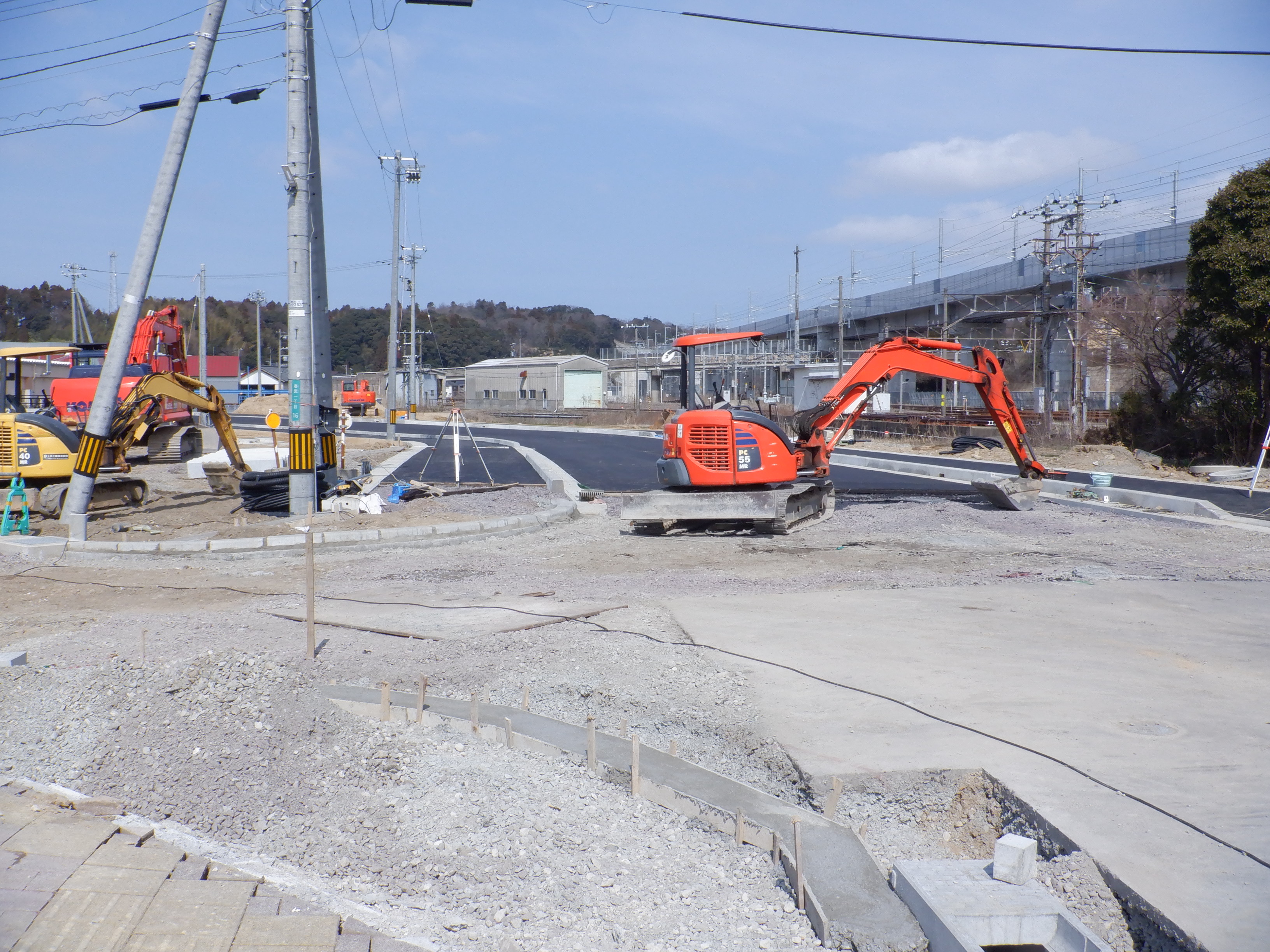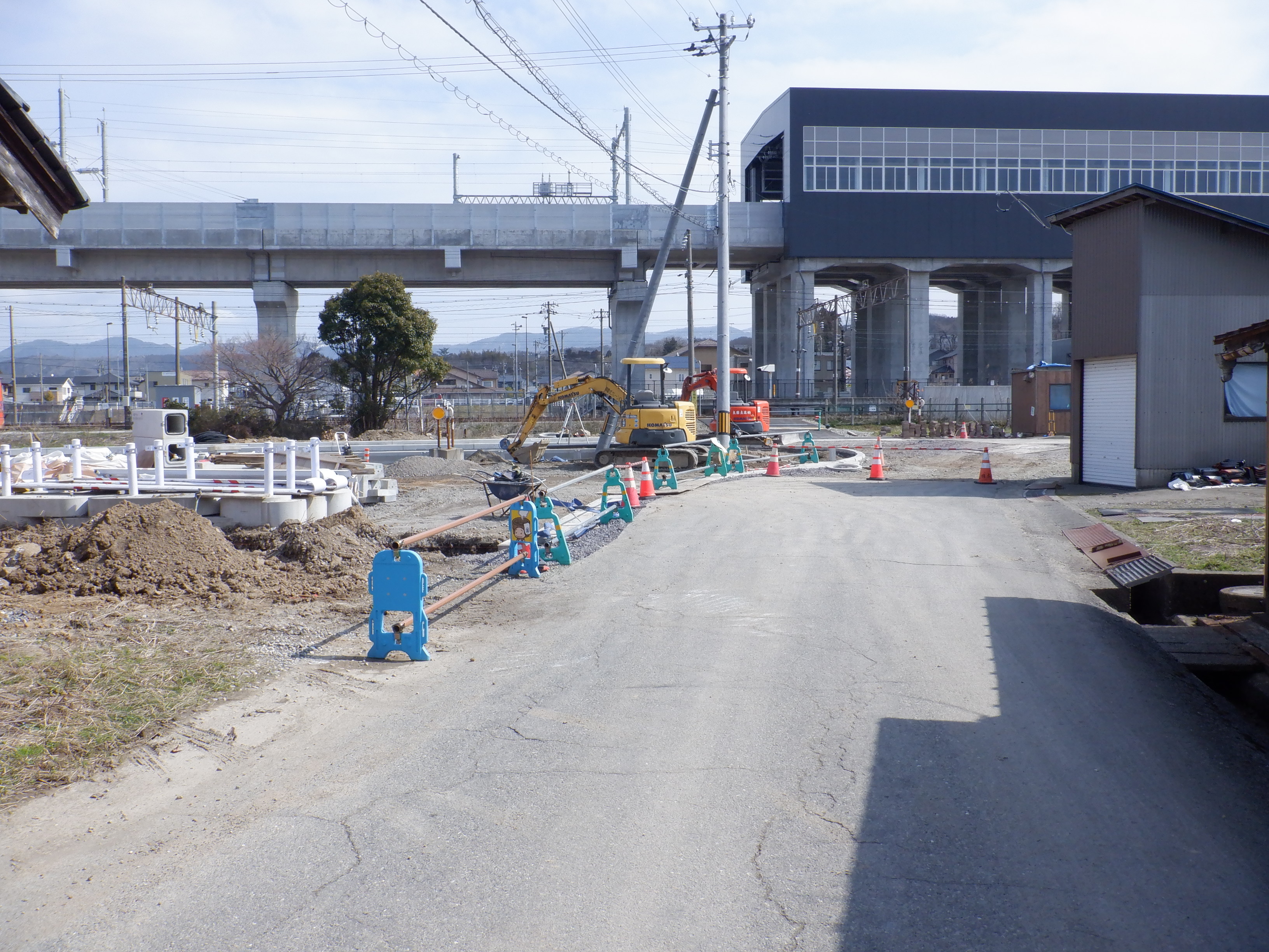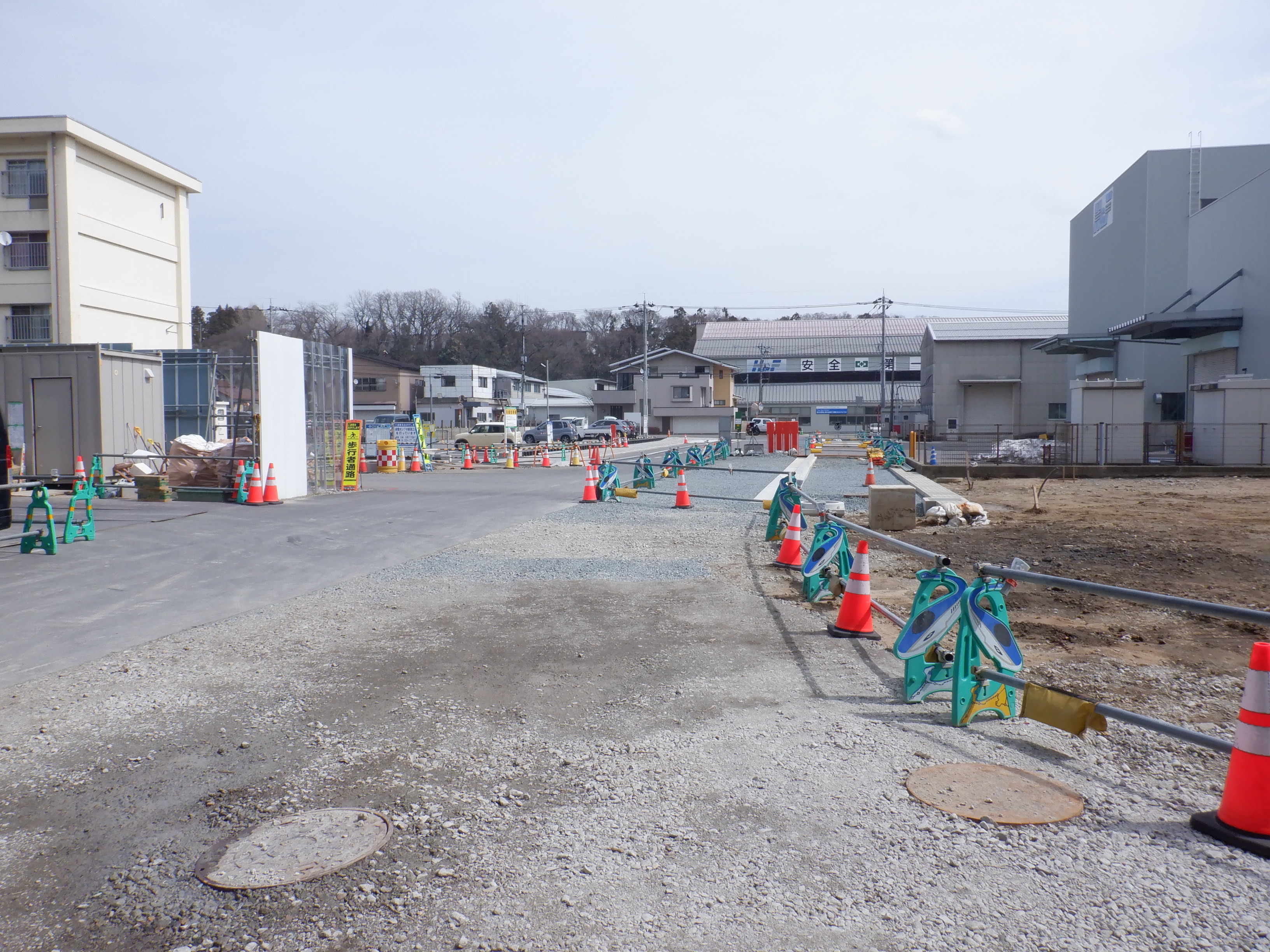 迂回をしてきて西口からの道路延長部分の工事中のところ。