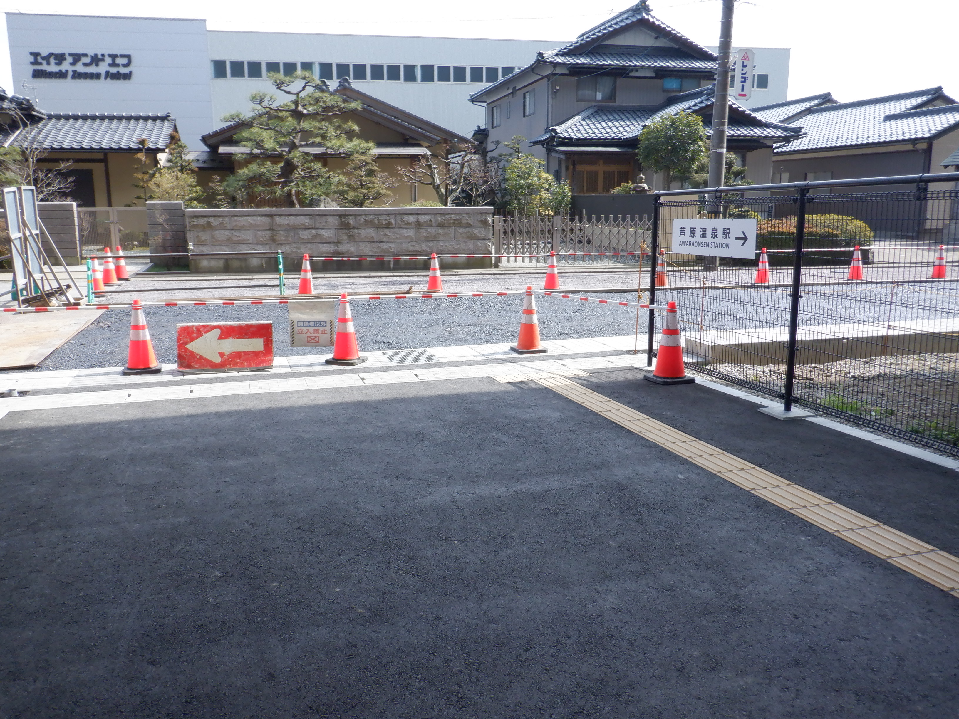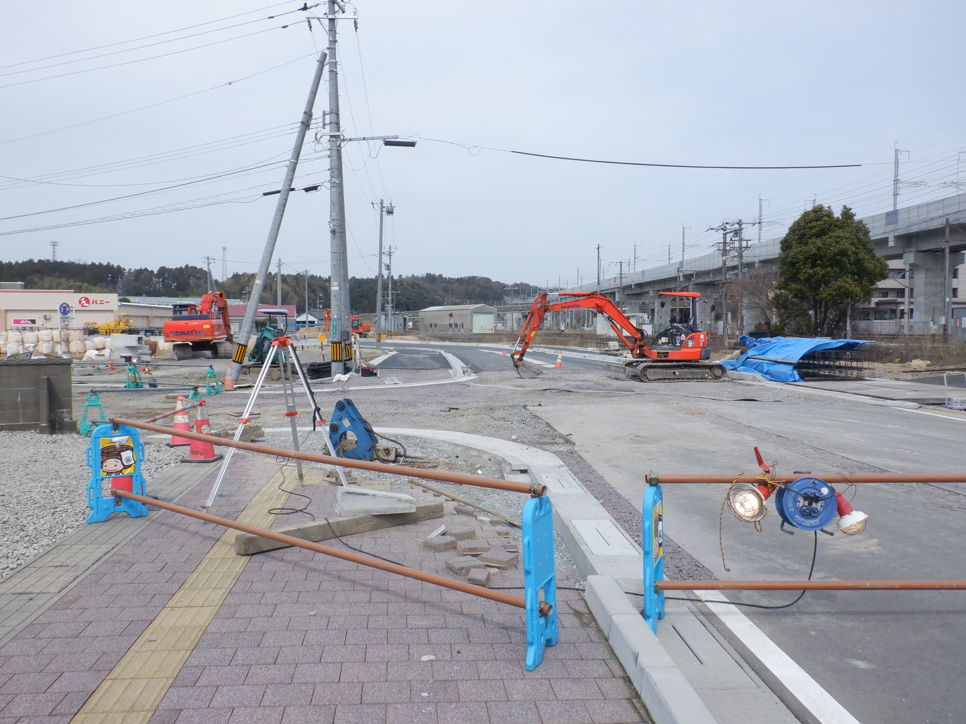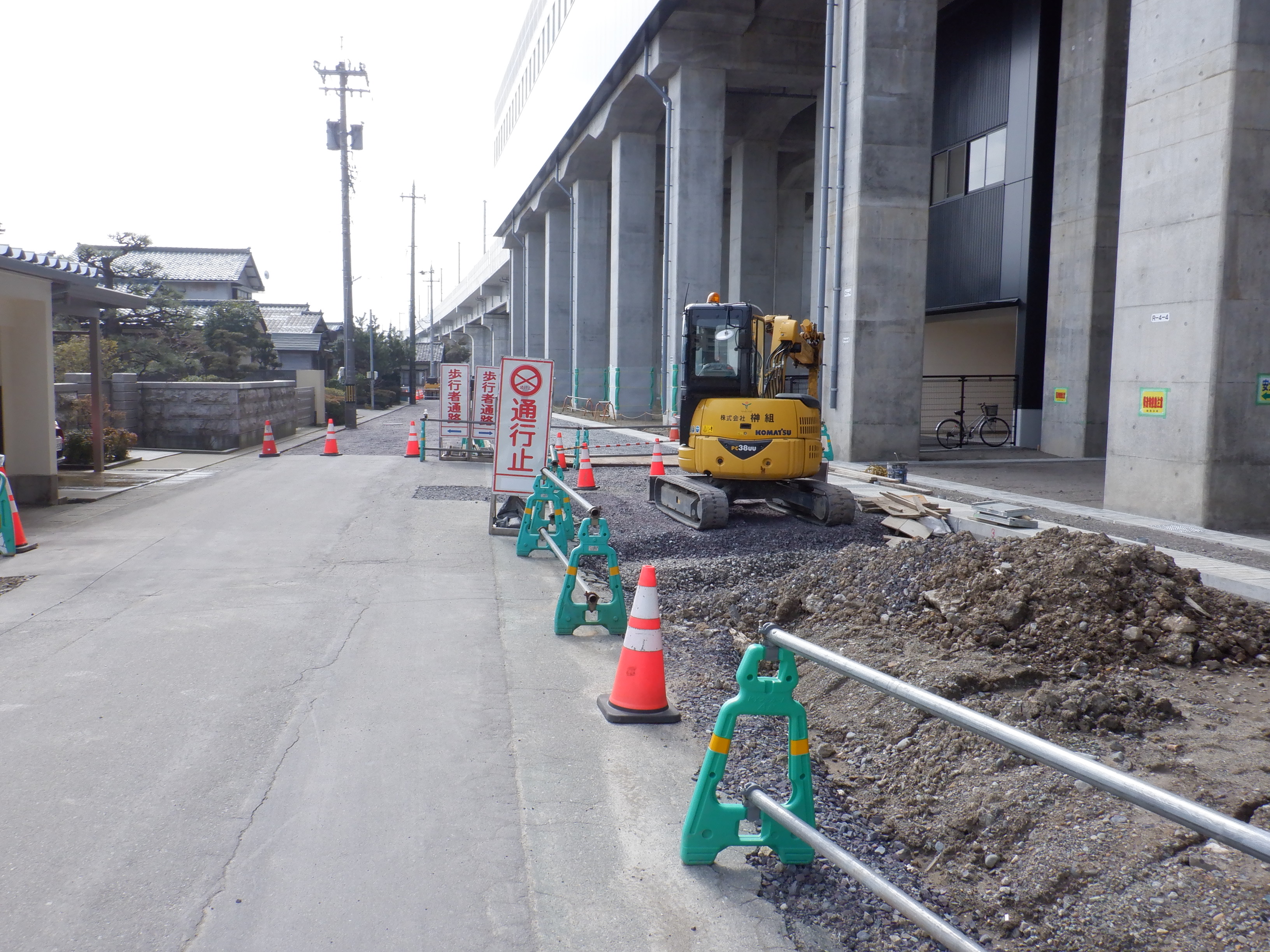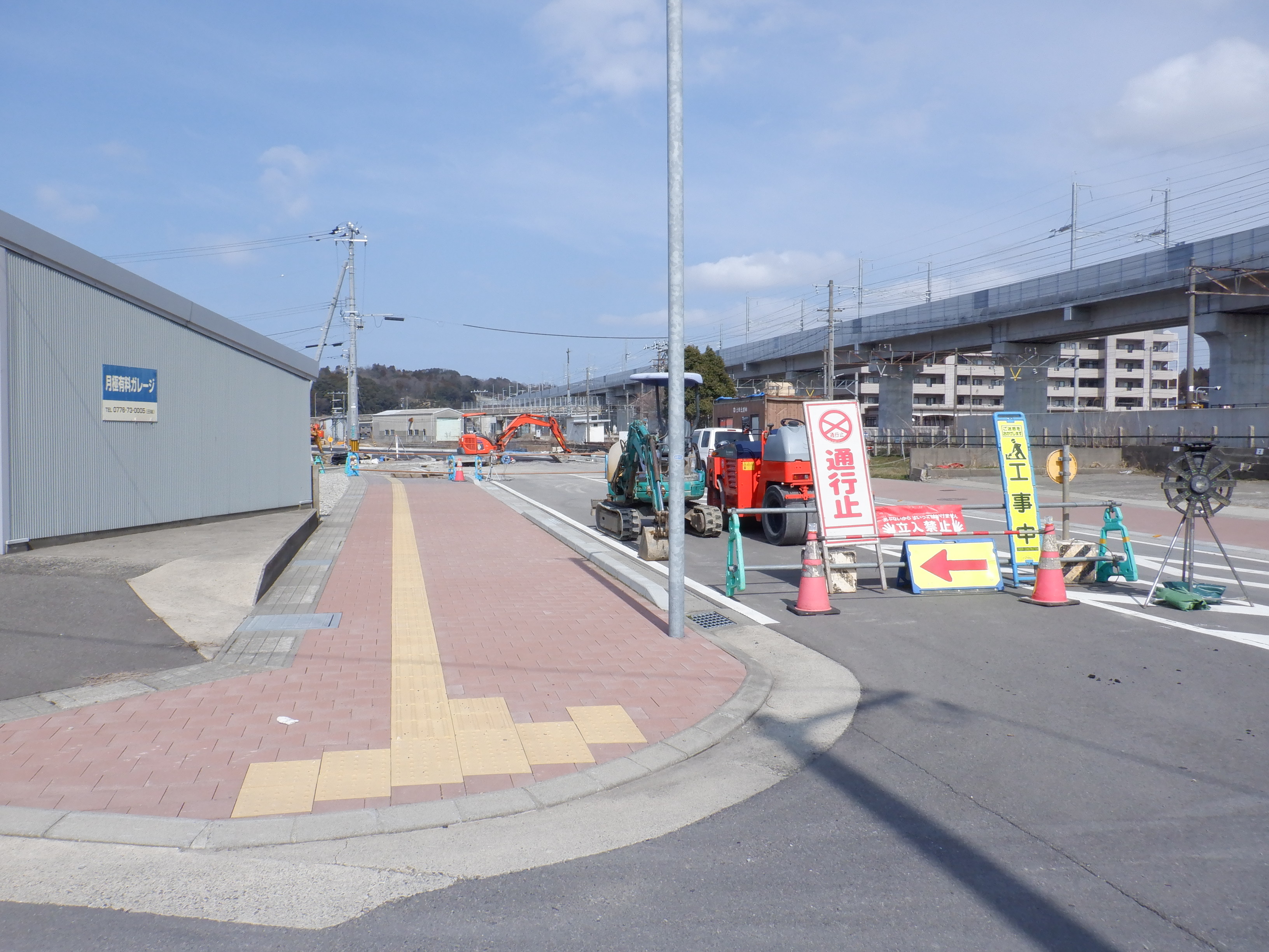 迂回をしてきて西口からの道路延長部分の工事中のところ。