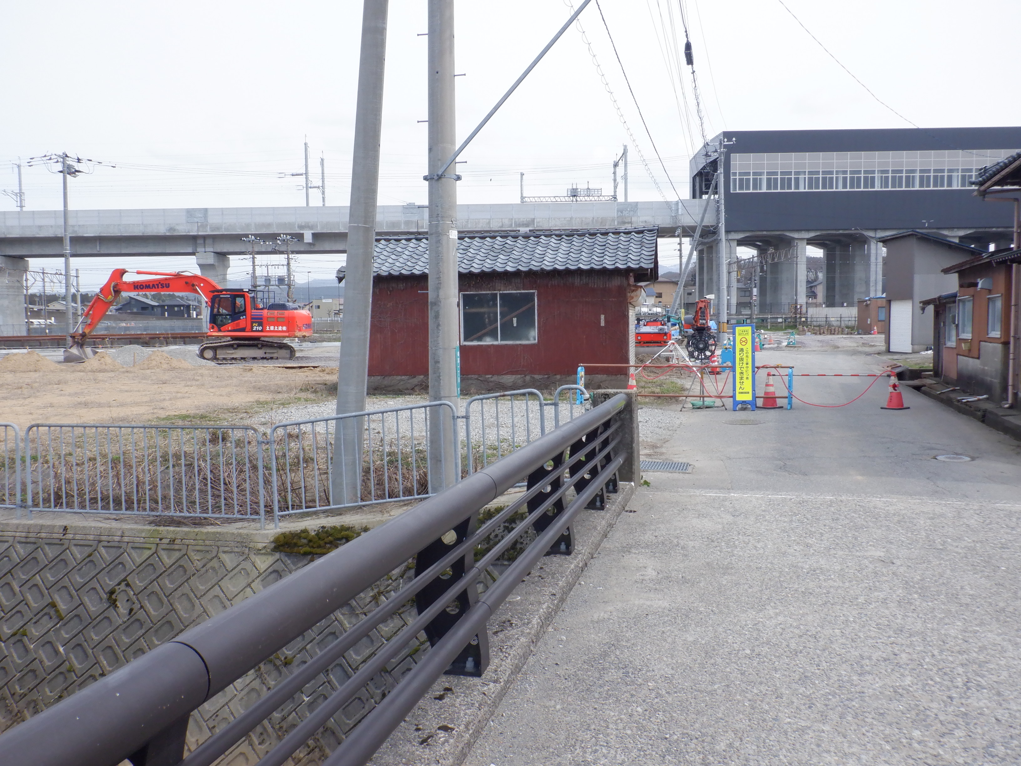 橋を架けているところとその先の通行止めのところ。