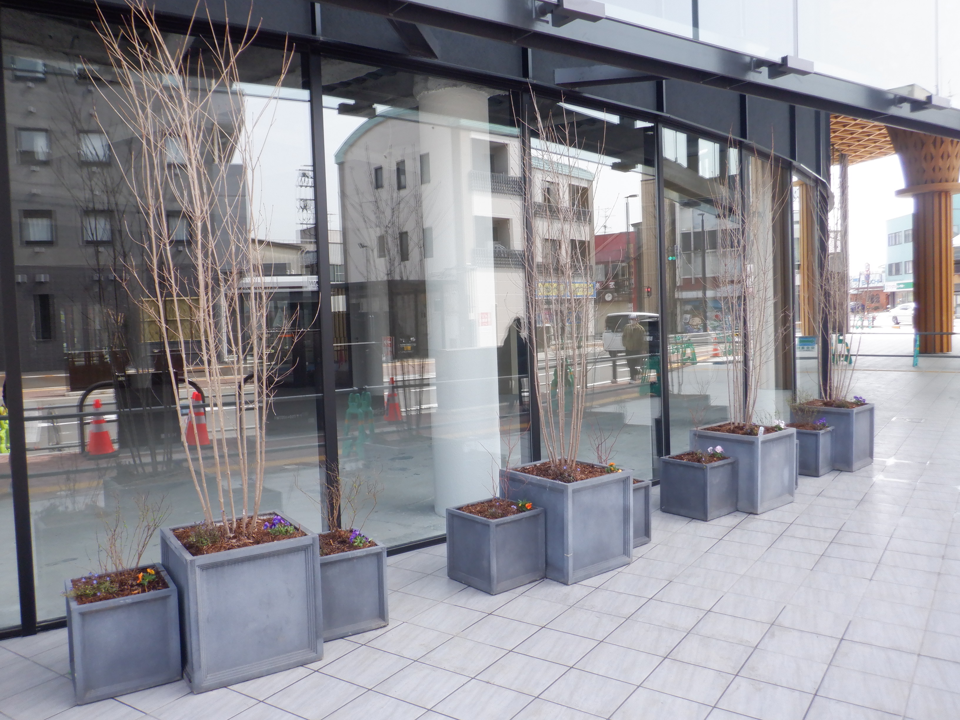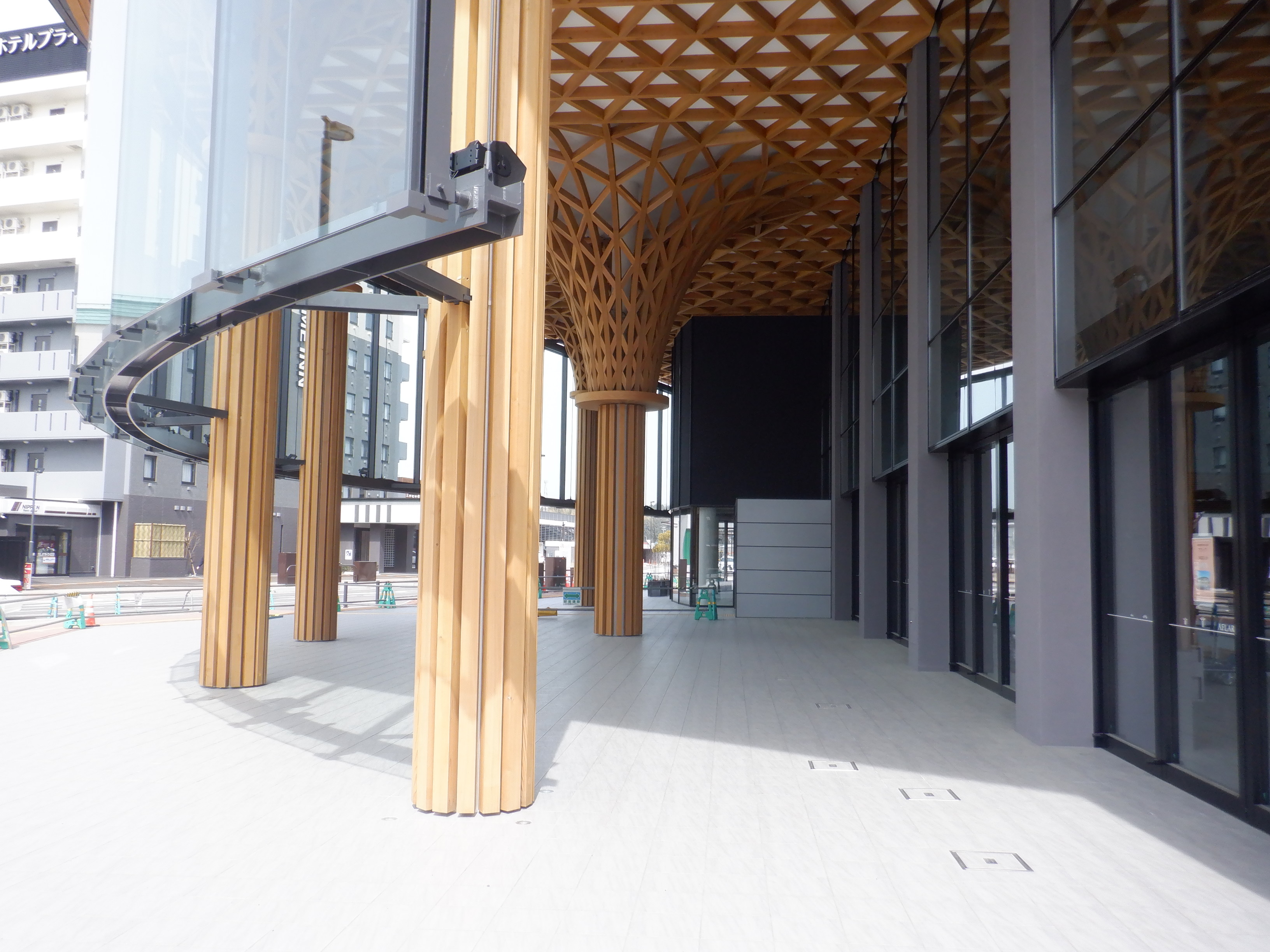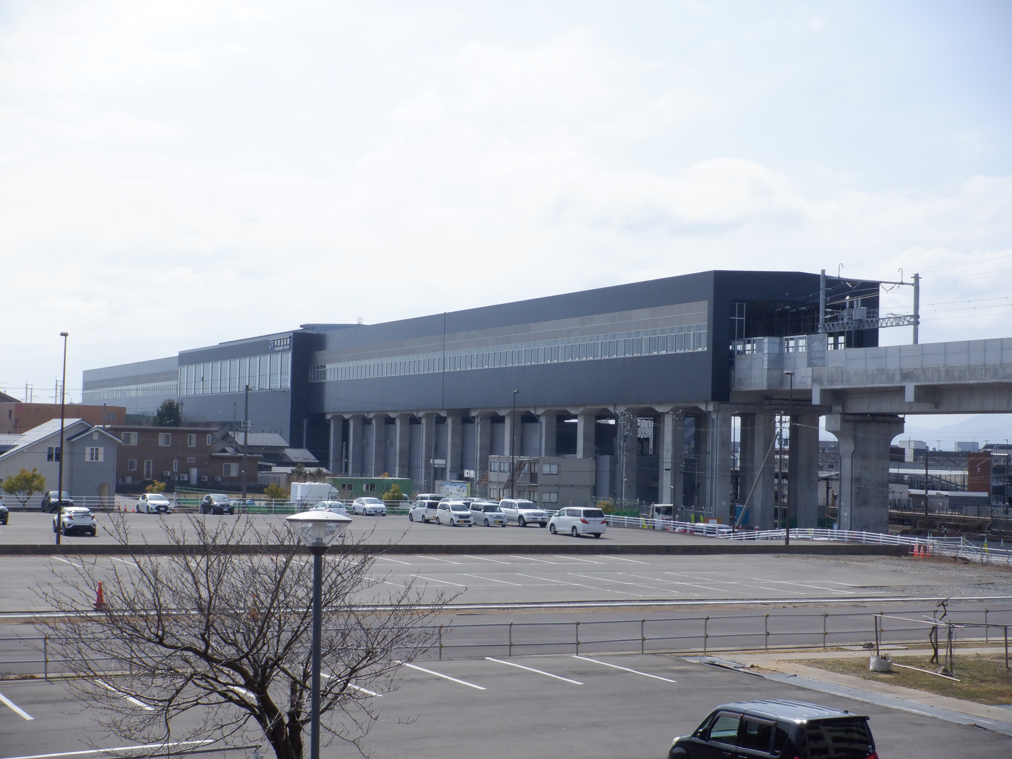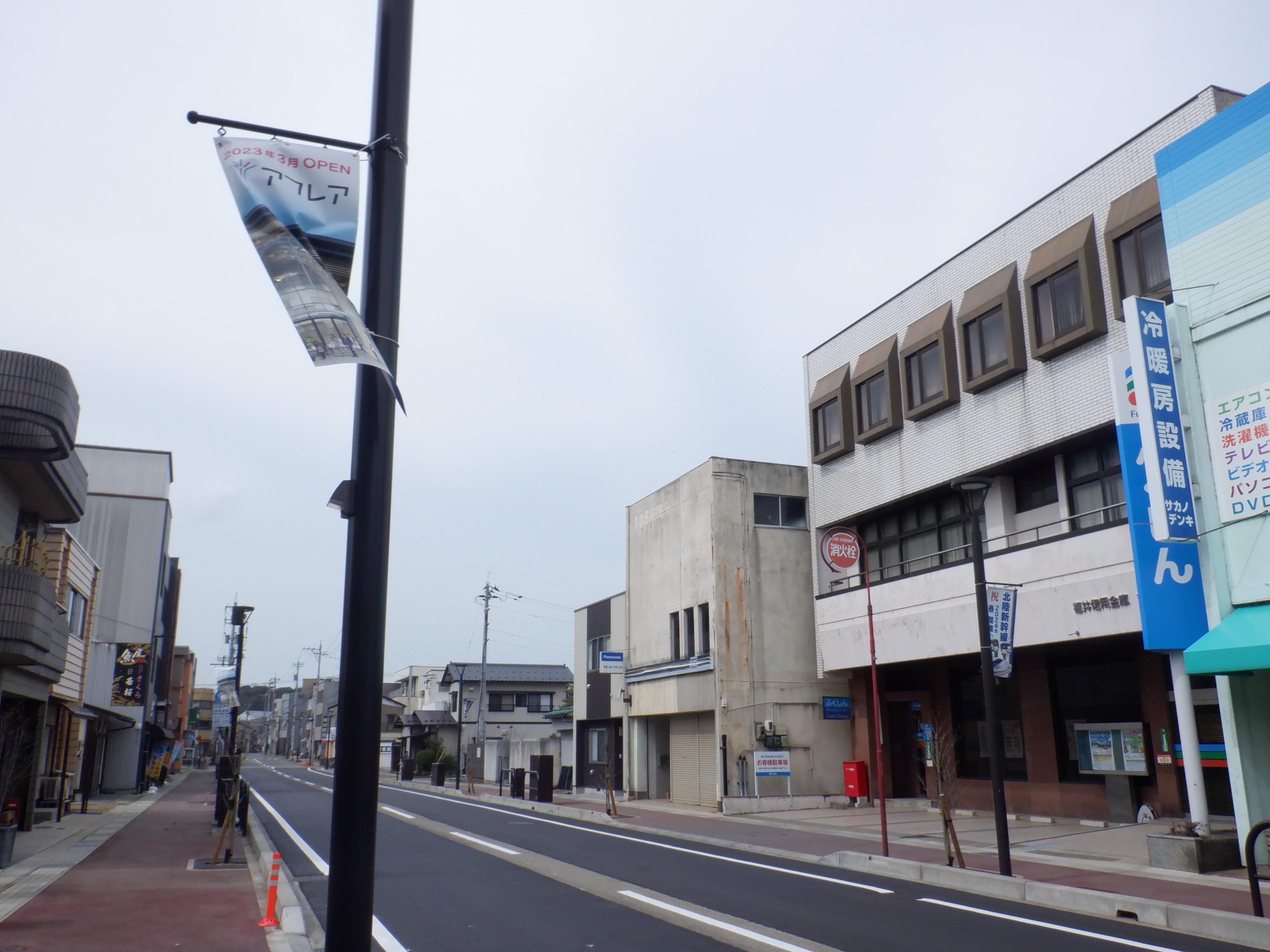 新幹線開業とアフレアオープンに向けた布が取り付けられていました。