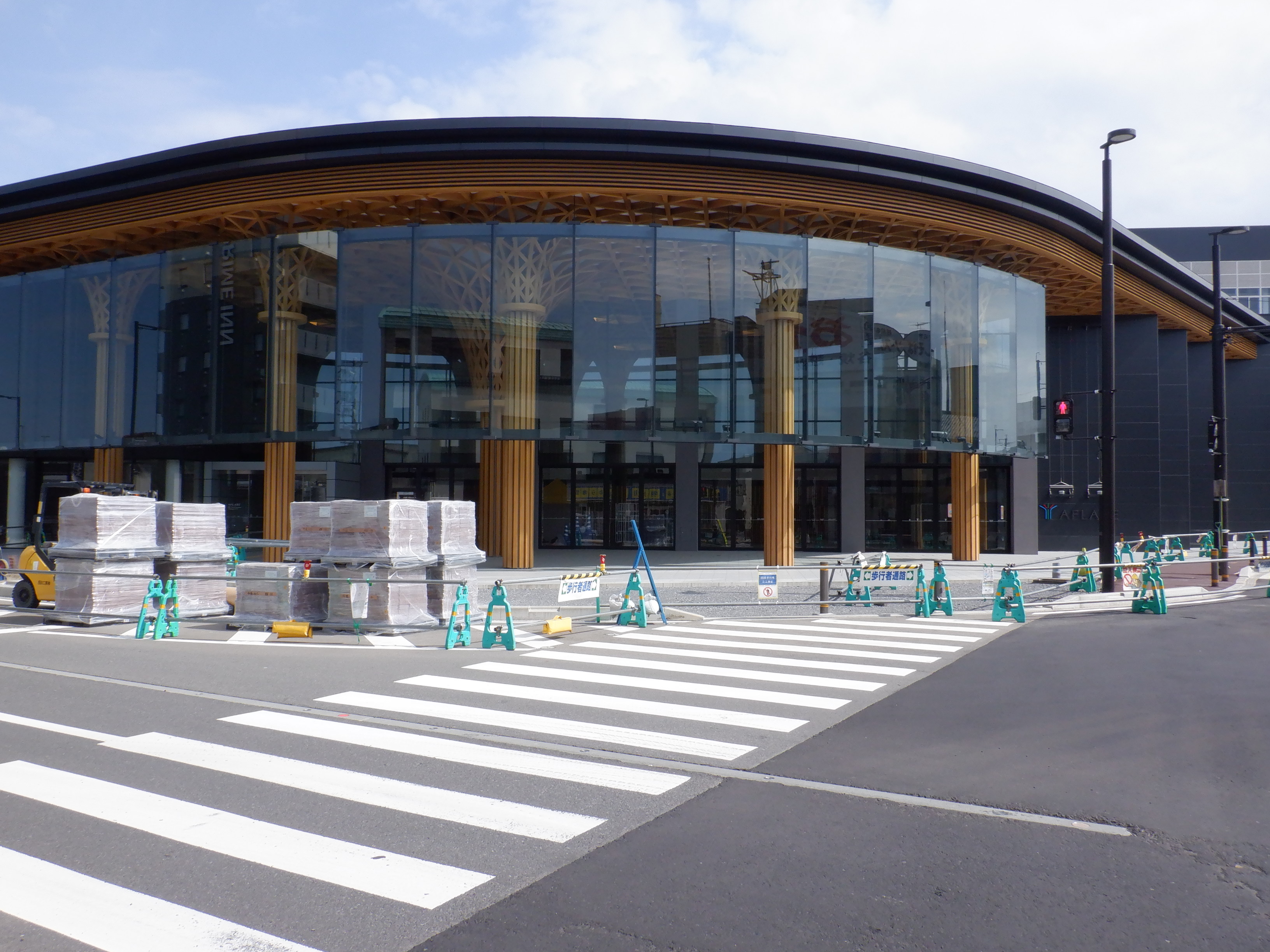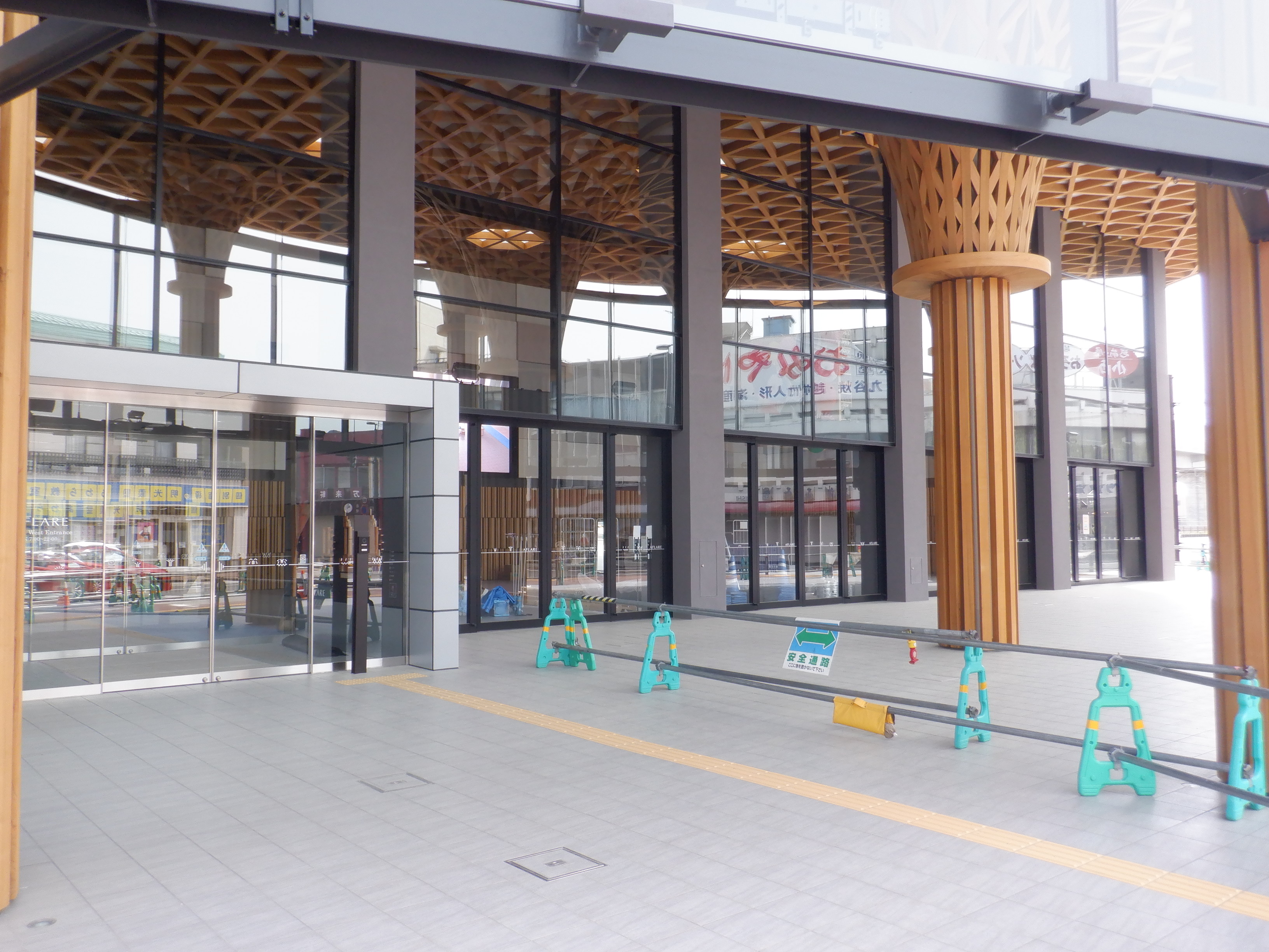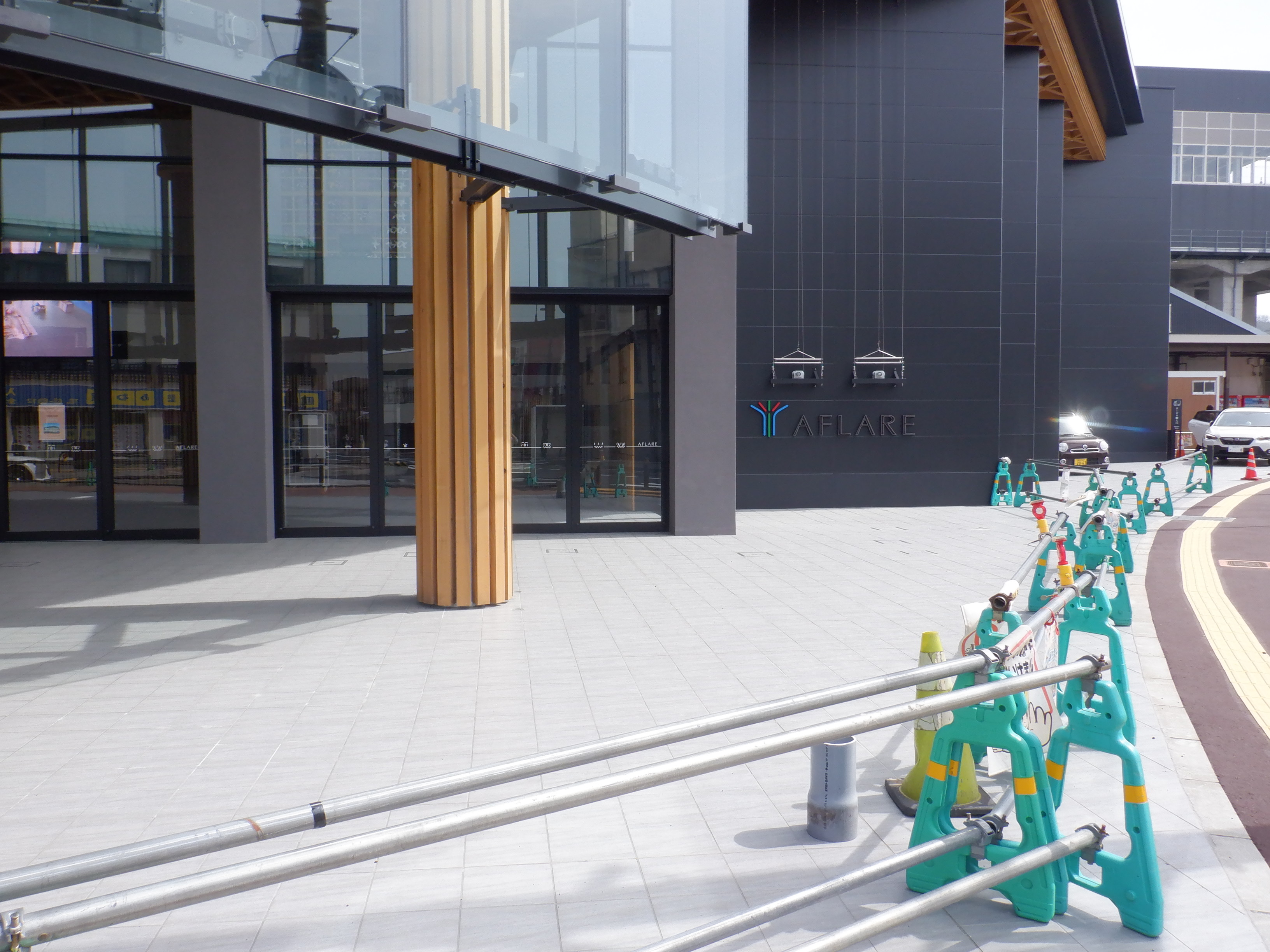 アフレアの開業を約1週間後に控え、ポスター等で雰囲気が盛り上がっているように見えました。また、東口の新幹線駅舎出入口も工事が進んでいるようです。