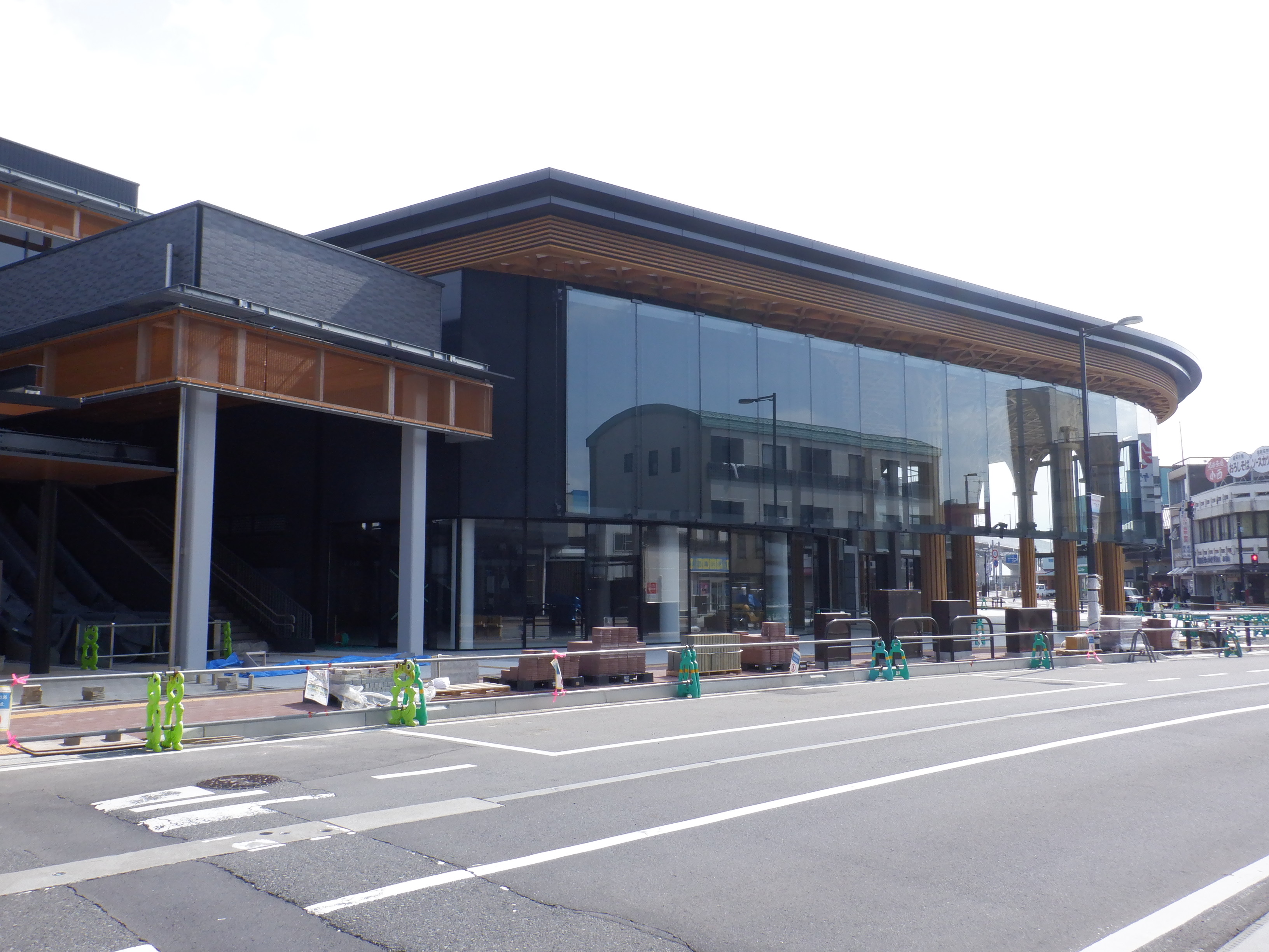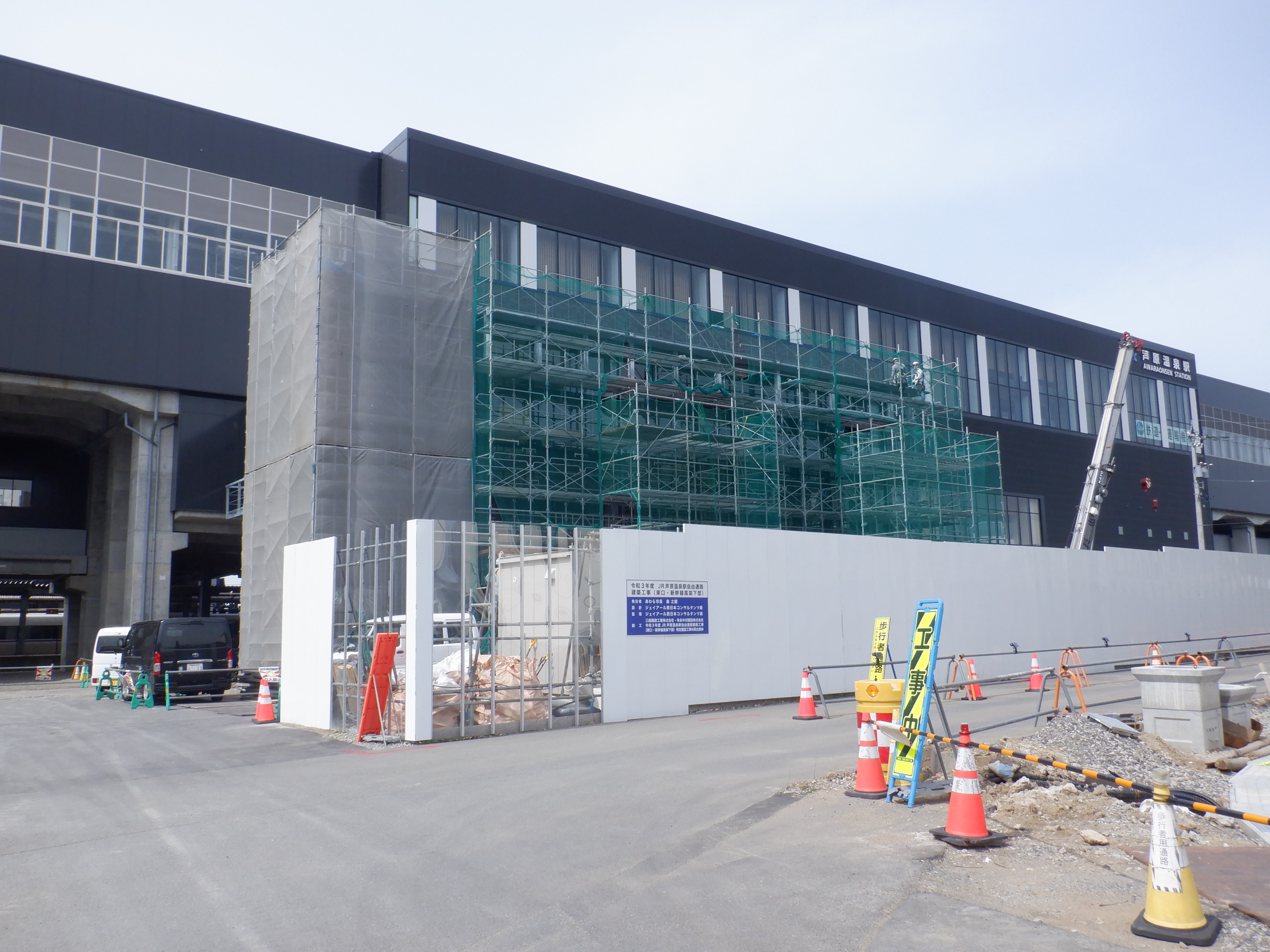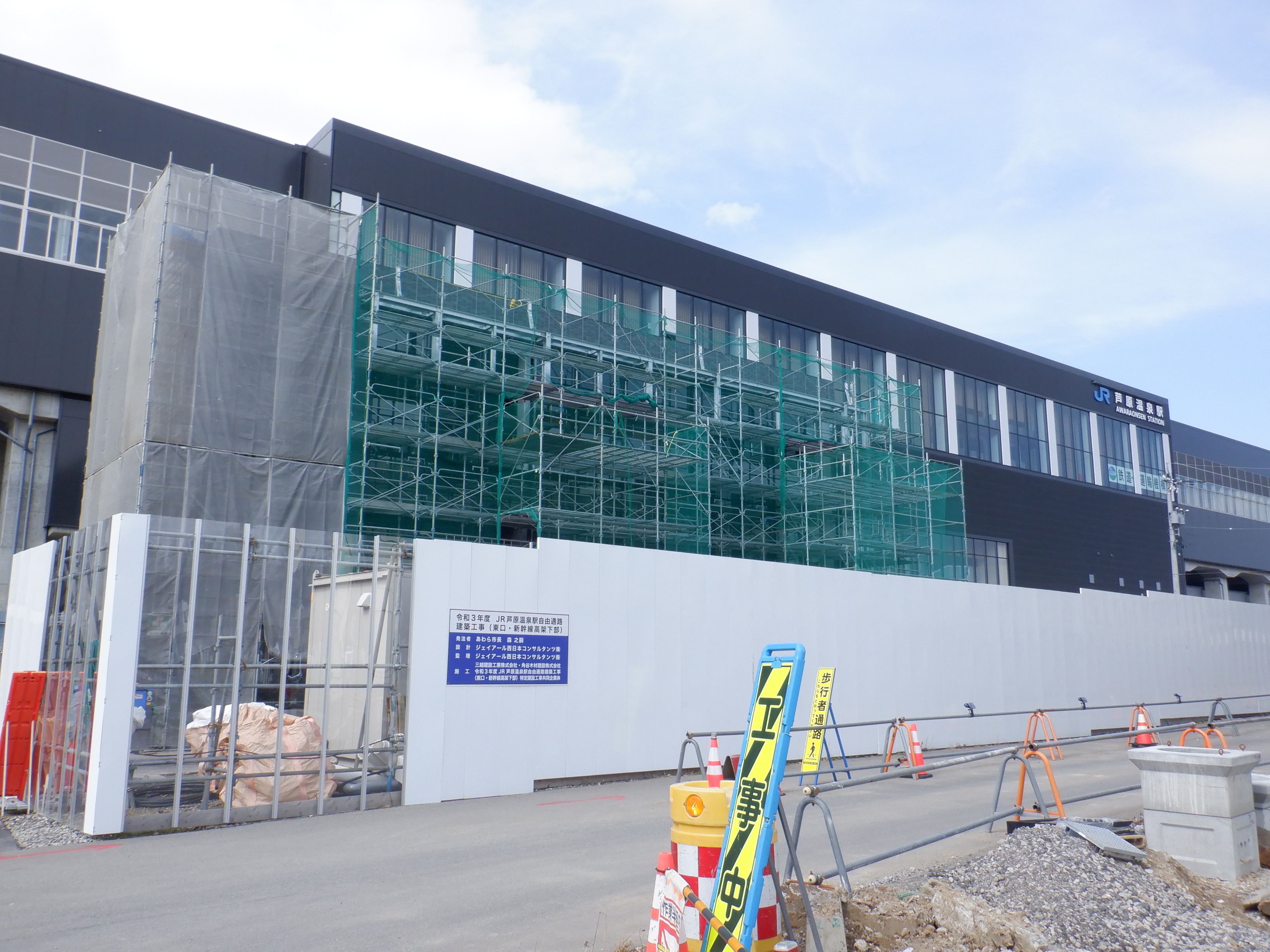 アフレアの開業を約1週間後に控え、ポスター等で雰囲気が盛り上がっているように見えました。また、東口の新幹線駅舎出入口も工事が進んでいるようです。