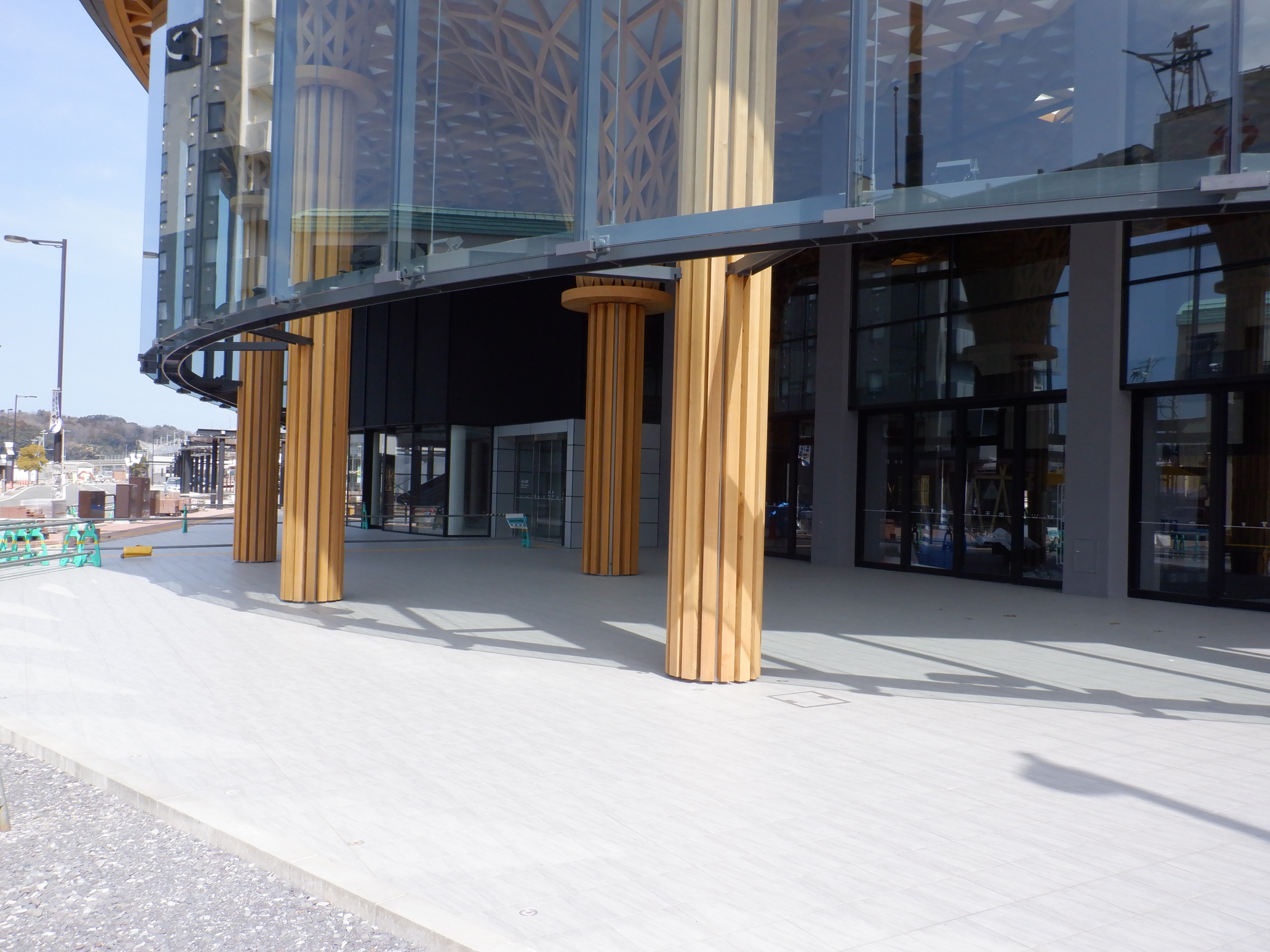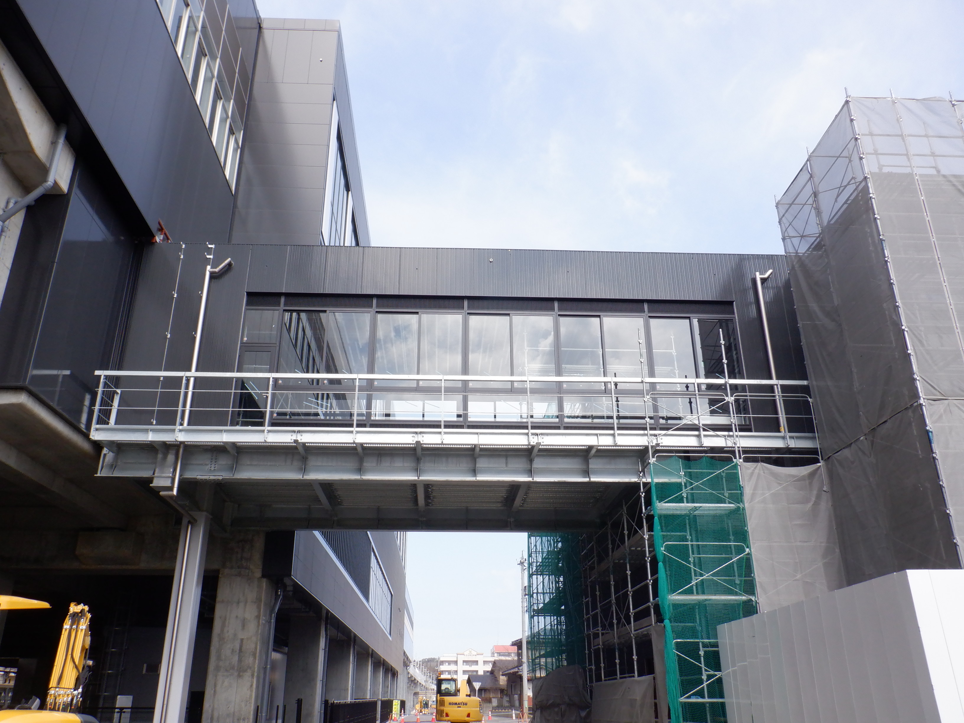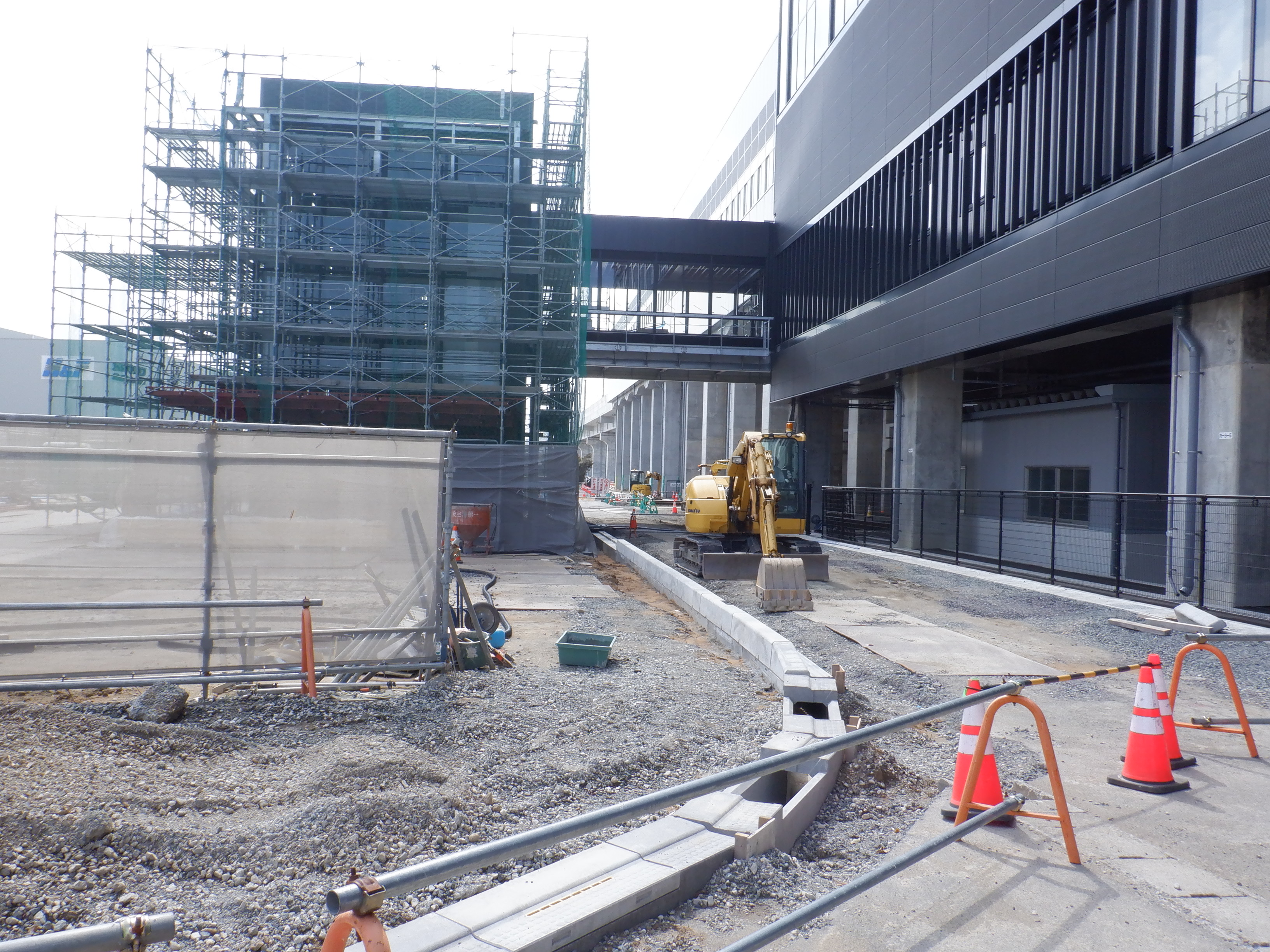 アフレアの開業も近づいてきて、外観はほぼできているように思われます。西口からの道路の工事が進み、従来からある部分と新し部分の間の工事が進んでいました。