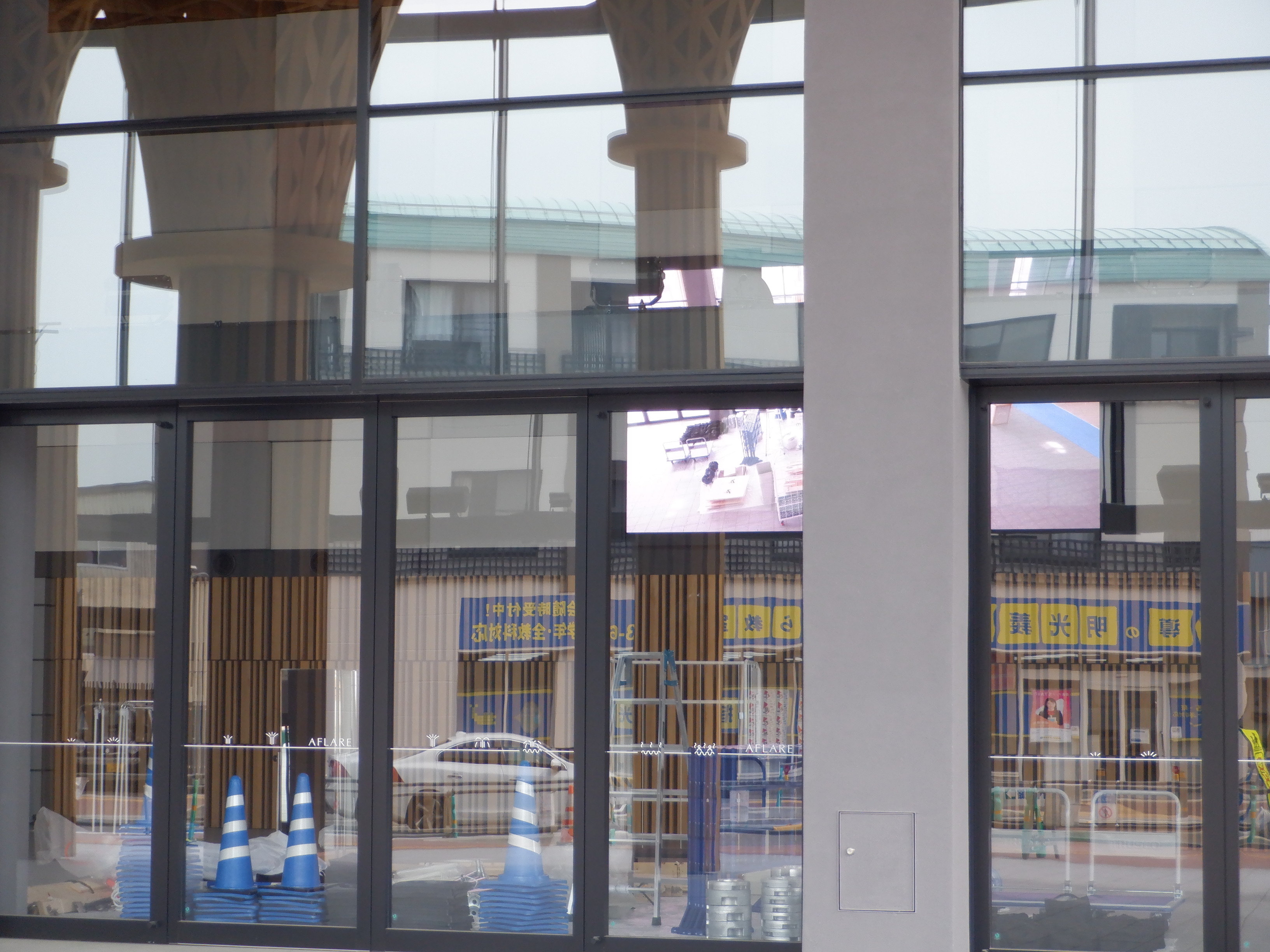 アフレアの開業を1週間後に控え、誕生祭のポスターなどが貼られていました。
