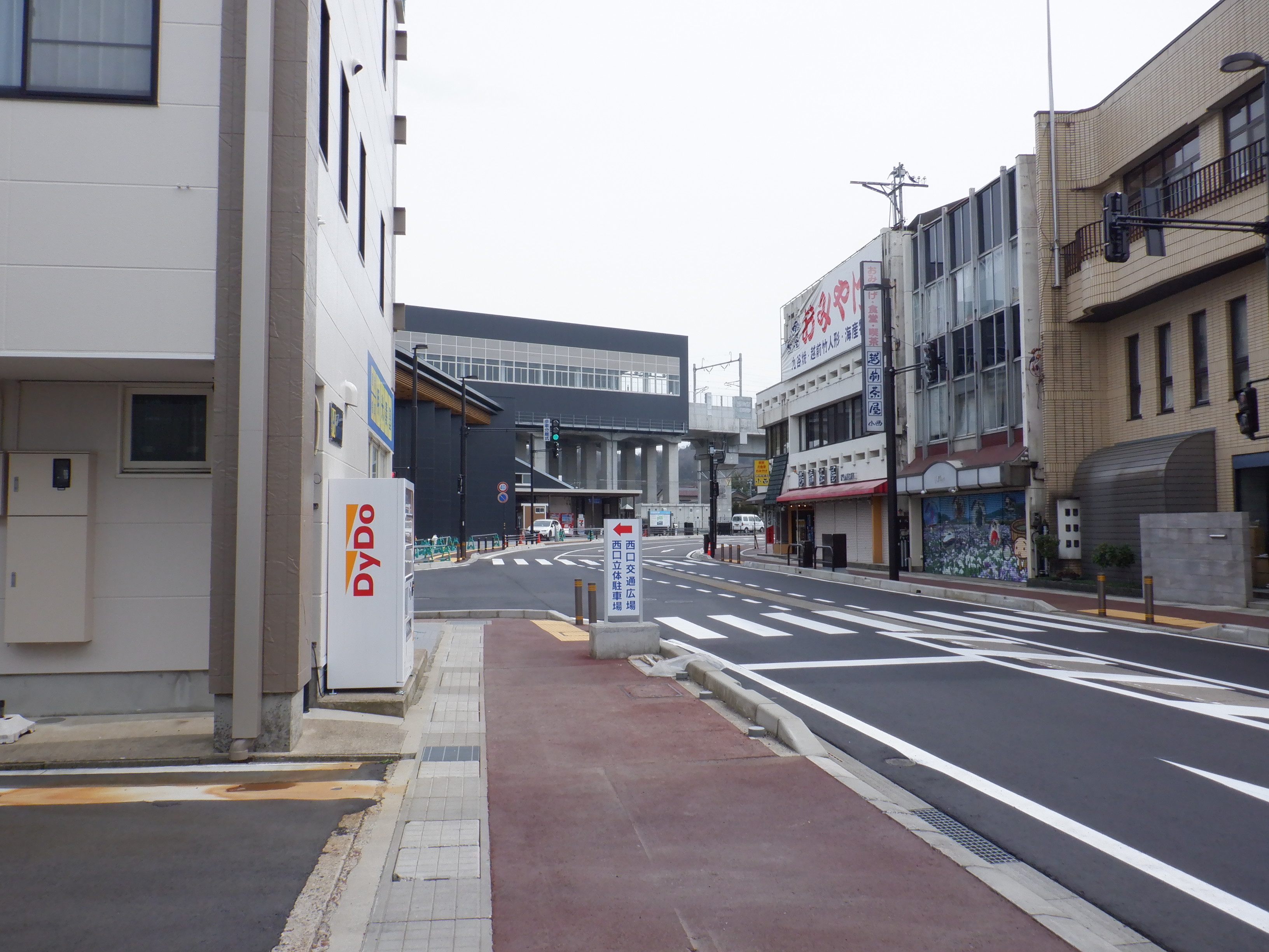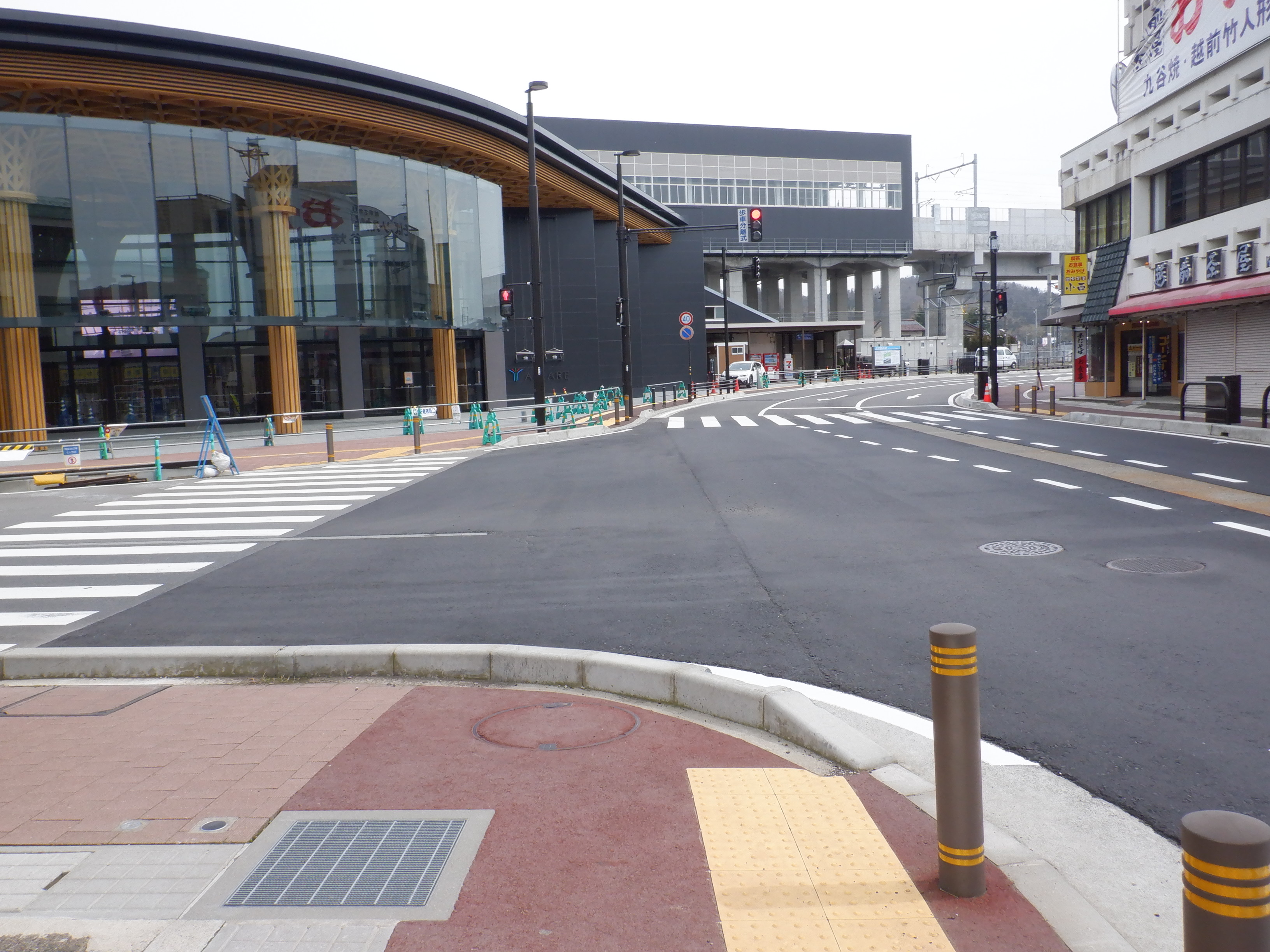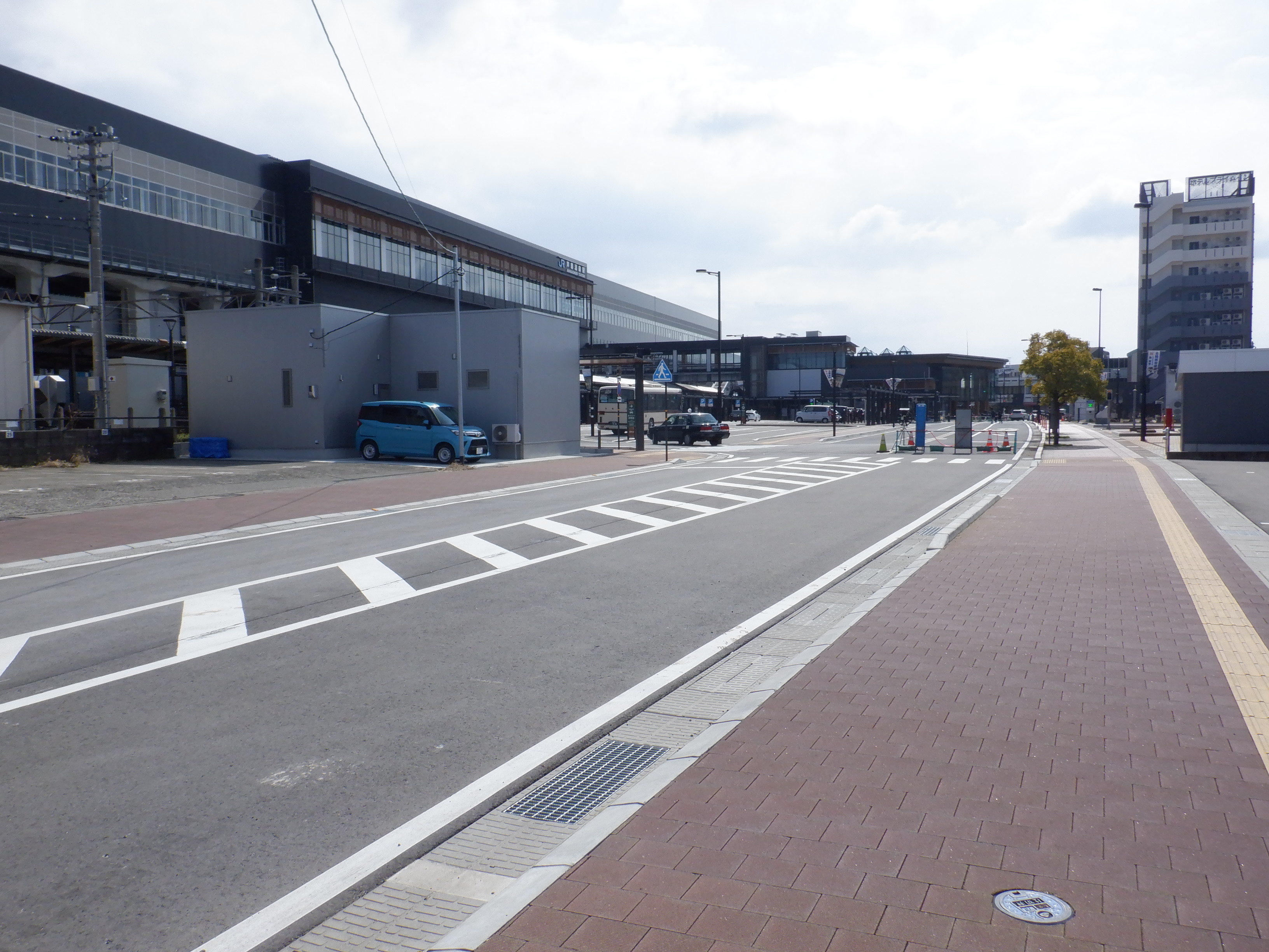 東口に出たところ。先日までの道路の工事が終了していました。