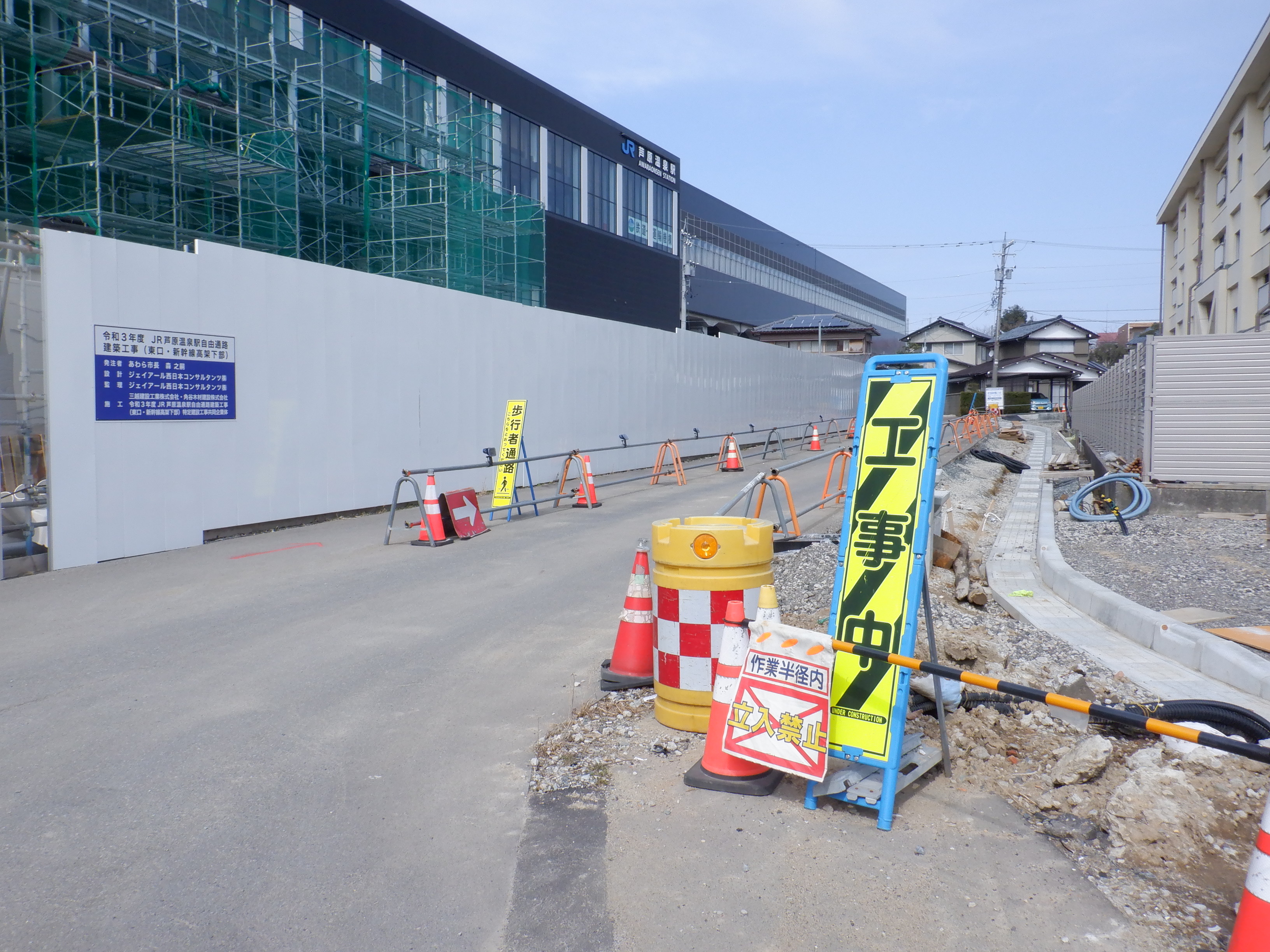 東口の出入口付近から。なおその先は工事が続いています。