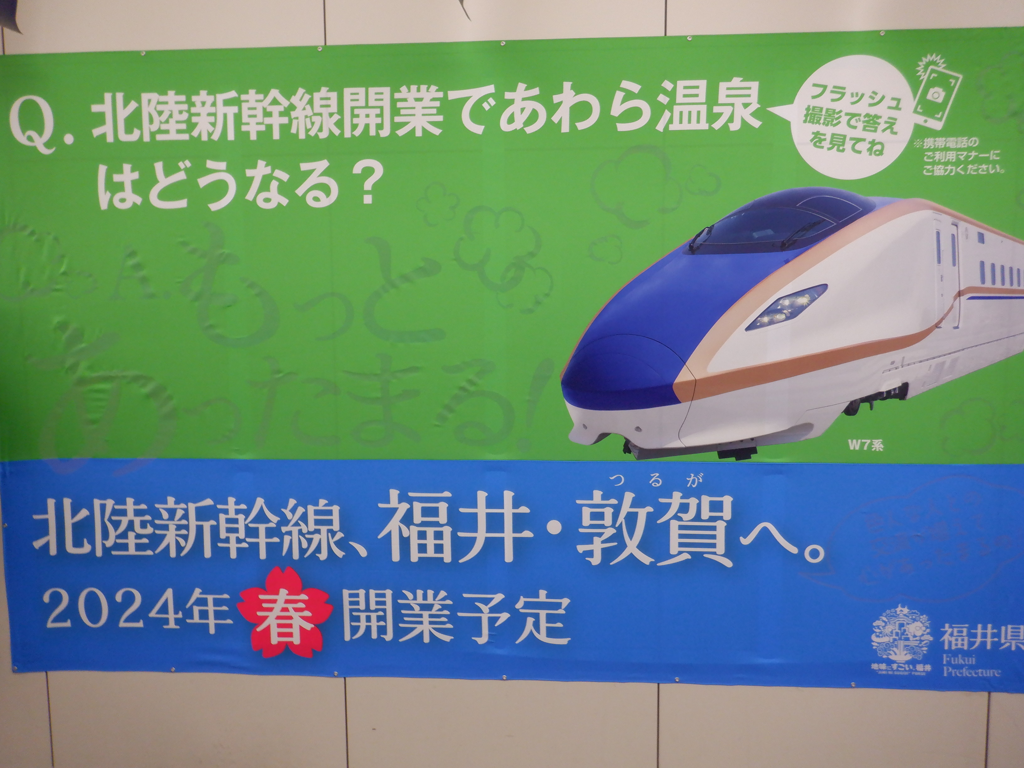 福井県内の新幹線建設中の駅等にせっちされた、フラッシュを焚くことにより文字が浮き出るもの。