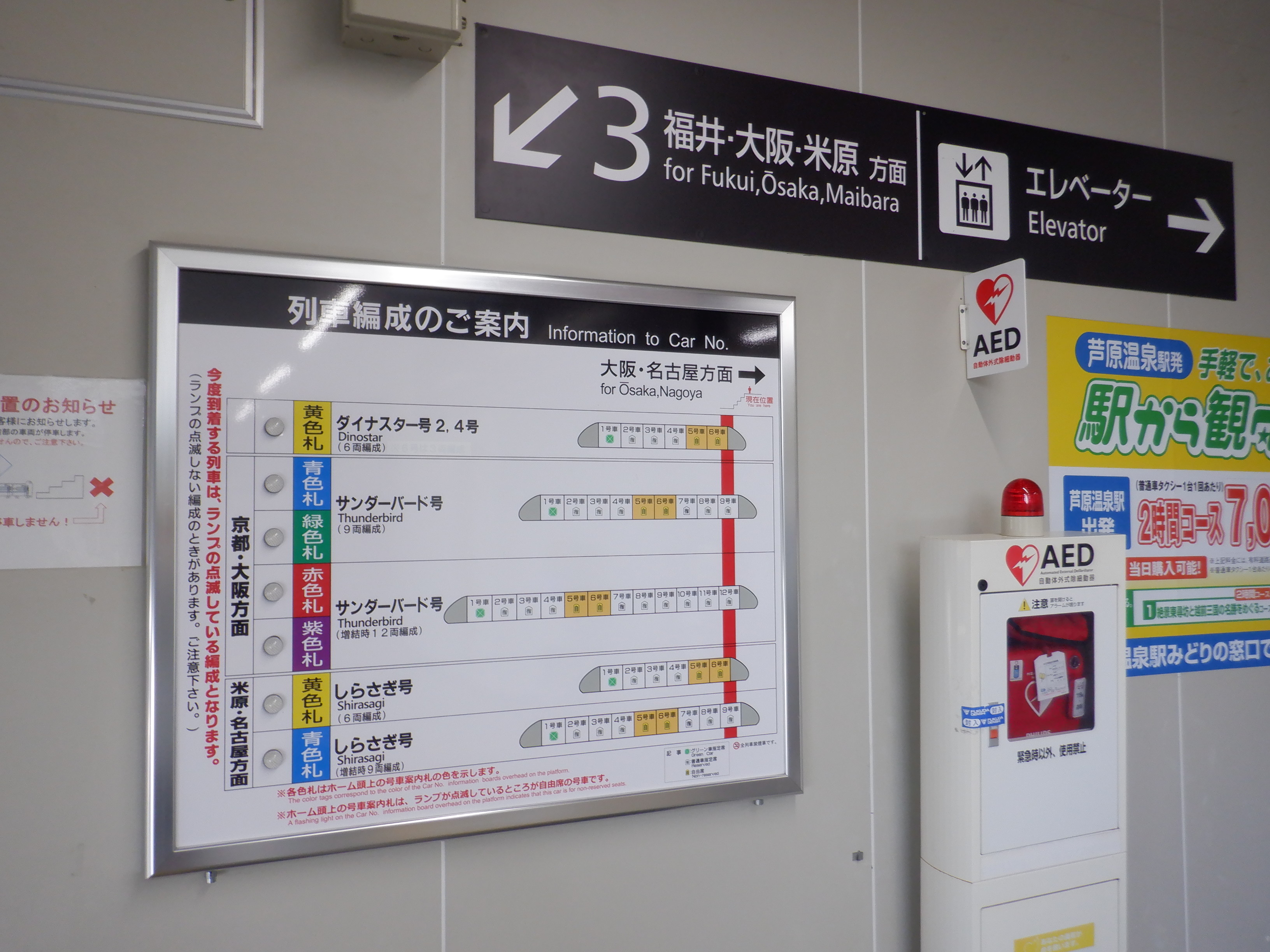 特急列車の乗車位置案内。
