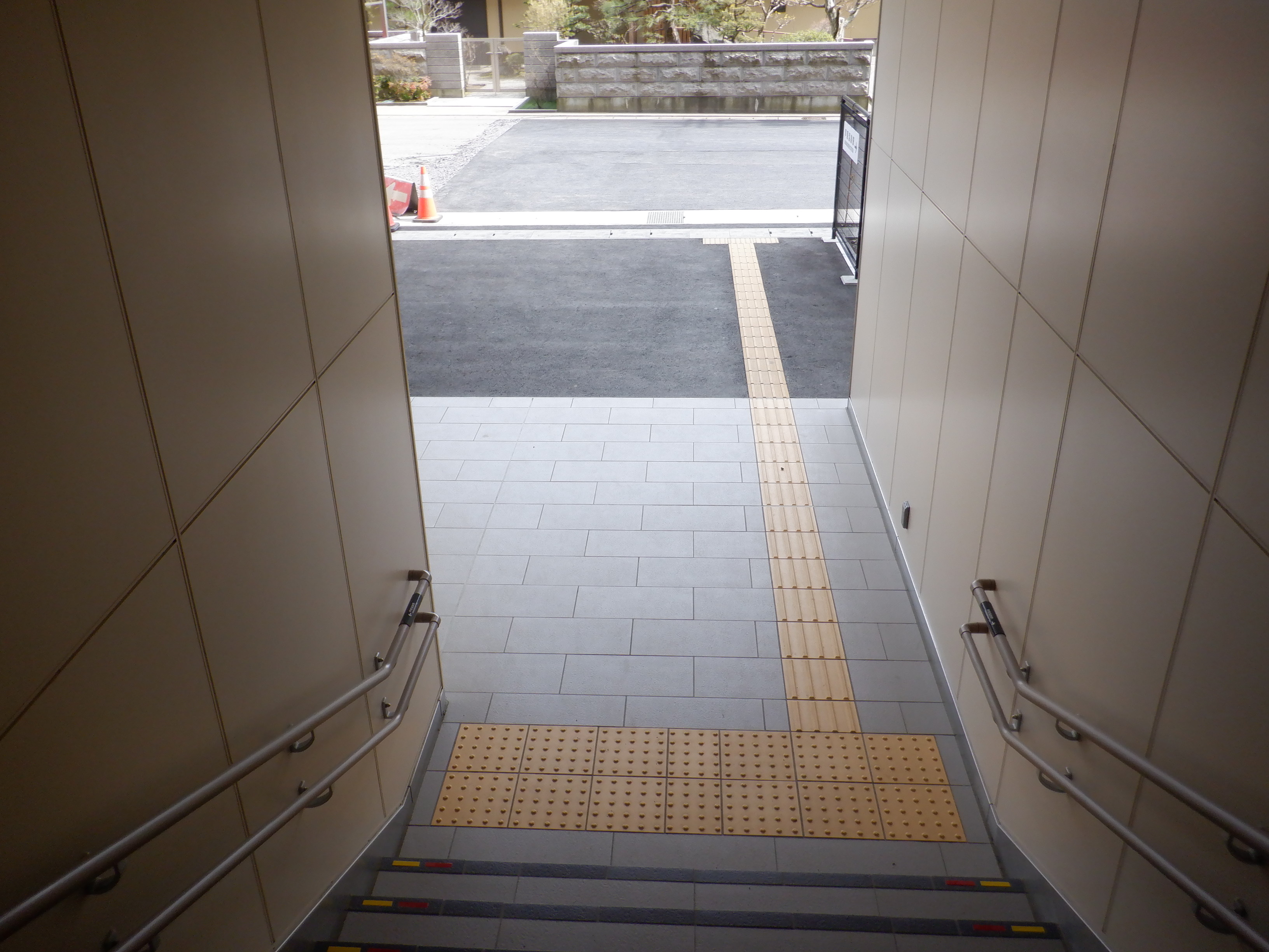 西口からの道路延長部分の出入口付近。