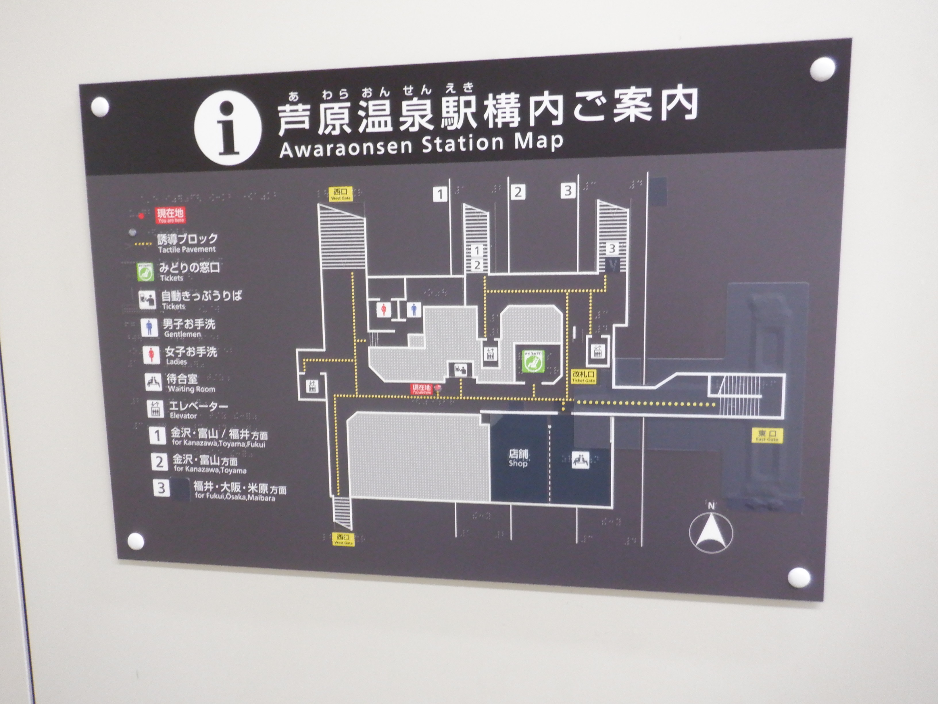 西口へ向かいます、というところですが、この青看板に変化があり、今まで隠されていたものが外され、西口への新たな道路が開通したことが分かります。