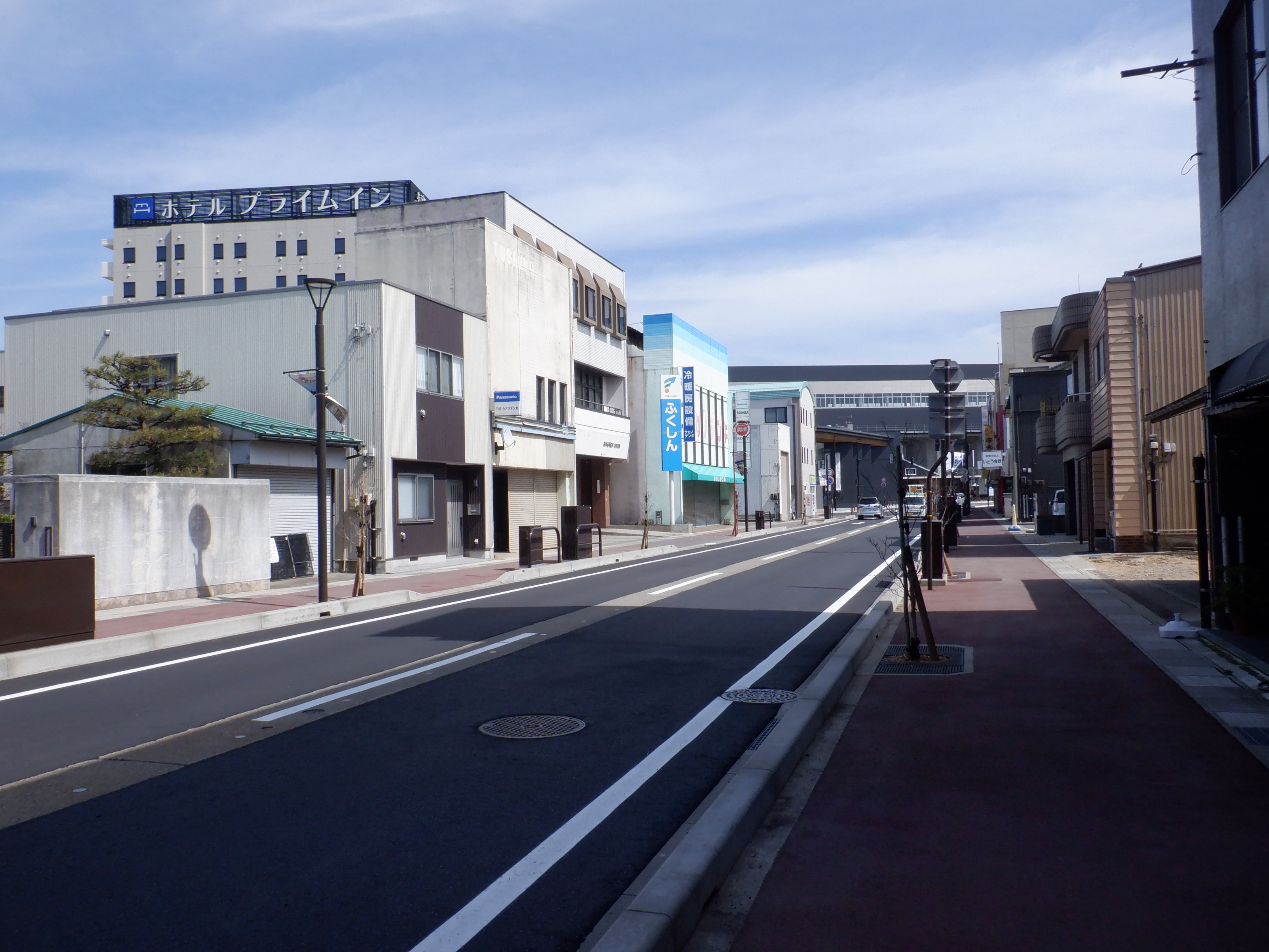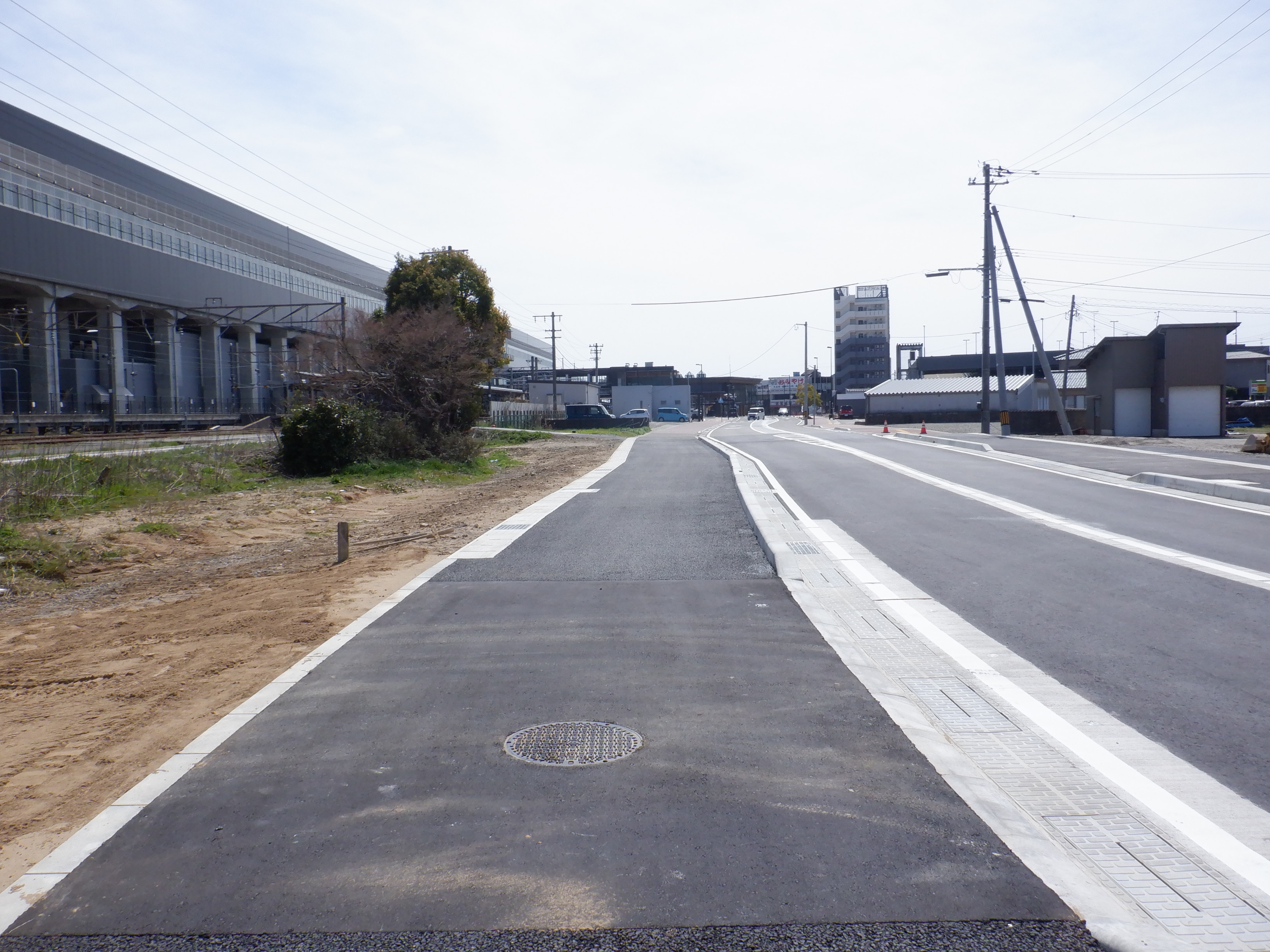 東口の出入口から。道路がきれいになりました。